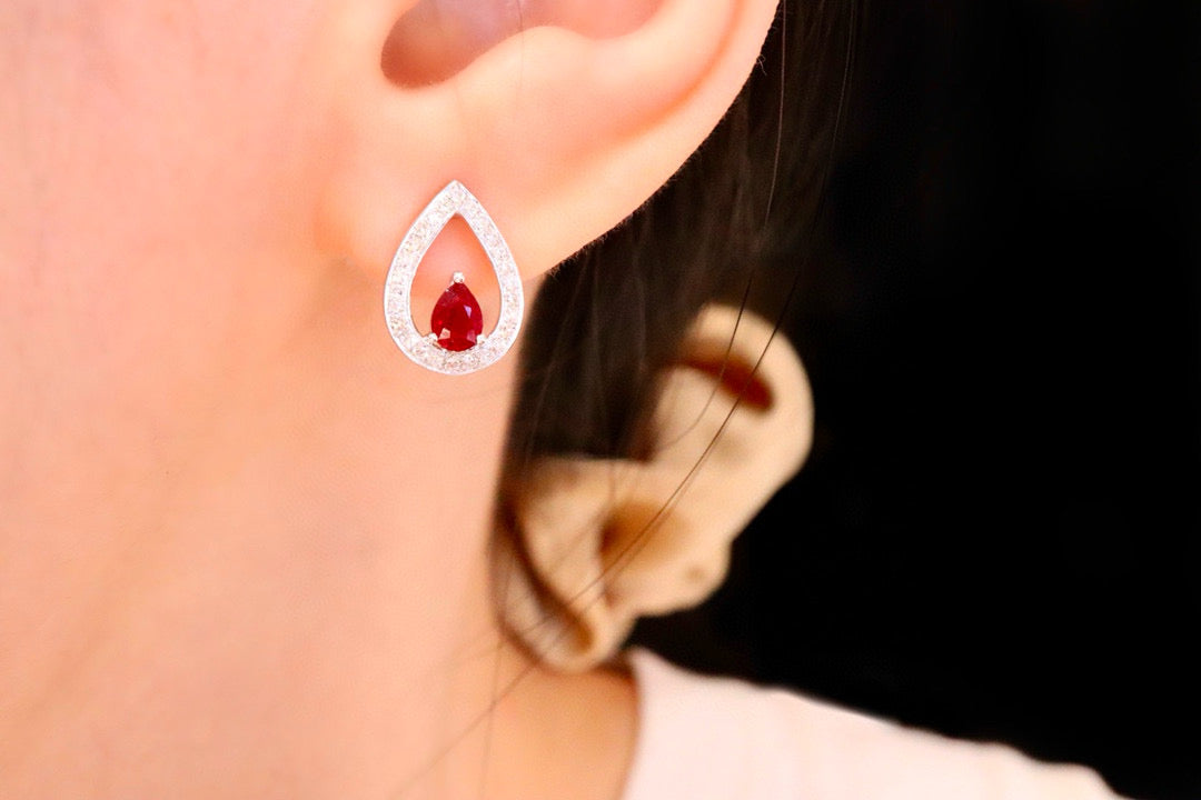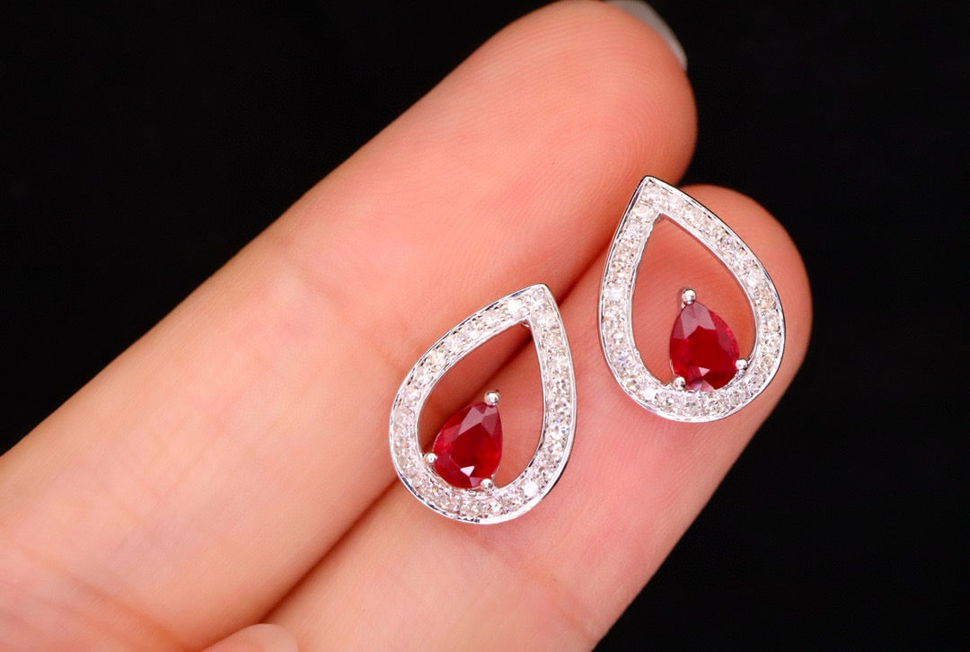 Ref:231019229 // Gold Content:14K Gold // Main Gemstone:Ruby // Shape:Pear // Carat Weight:0.53ct // Color:Red // Treatment:Natural // // Adjacent Gemstone 2 : Diamond // Shape:Round // Carat Weight:0.25ct // Clarity Grade:VS-SI // Color:H // Treatment:Natural // Cut Grade:G //