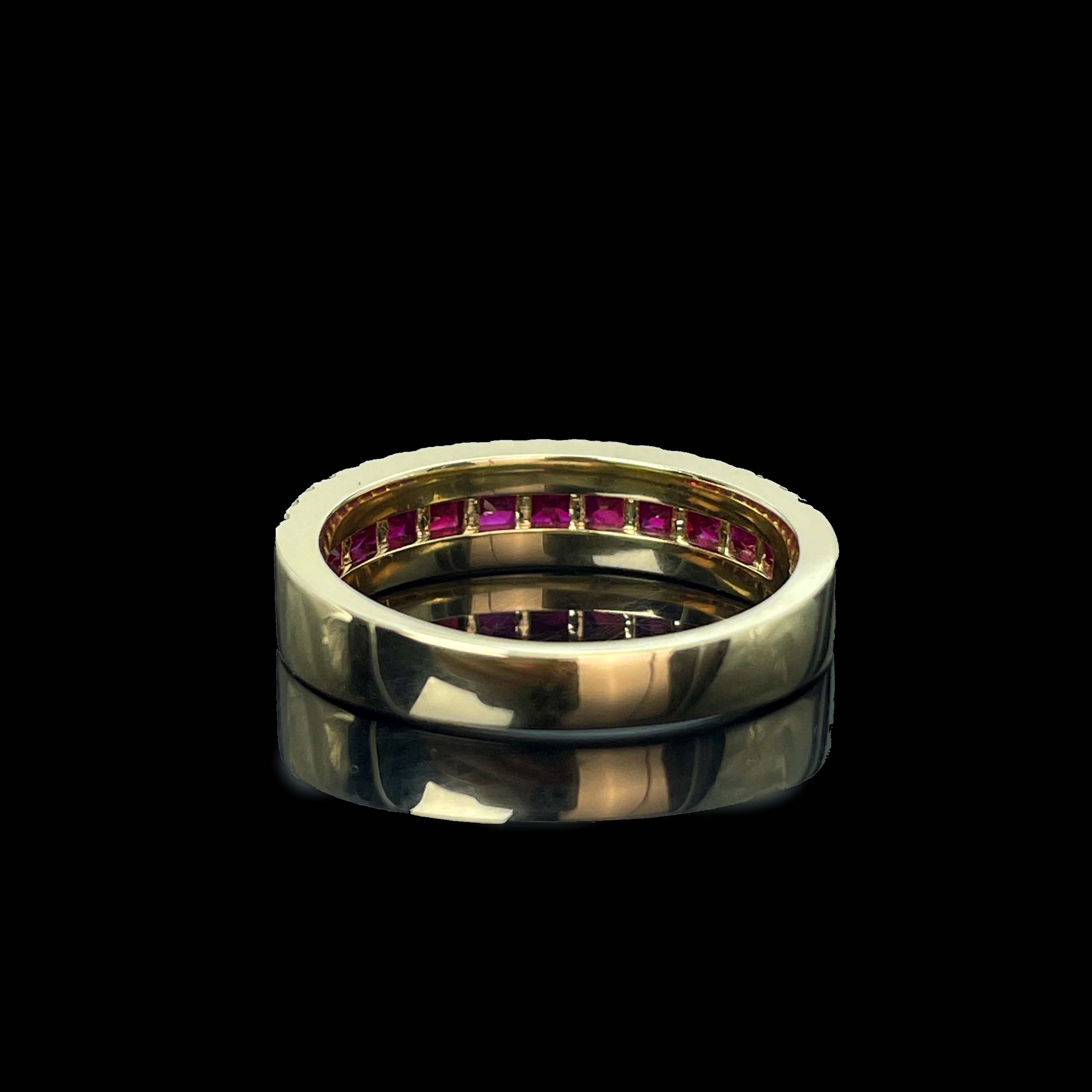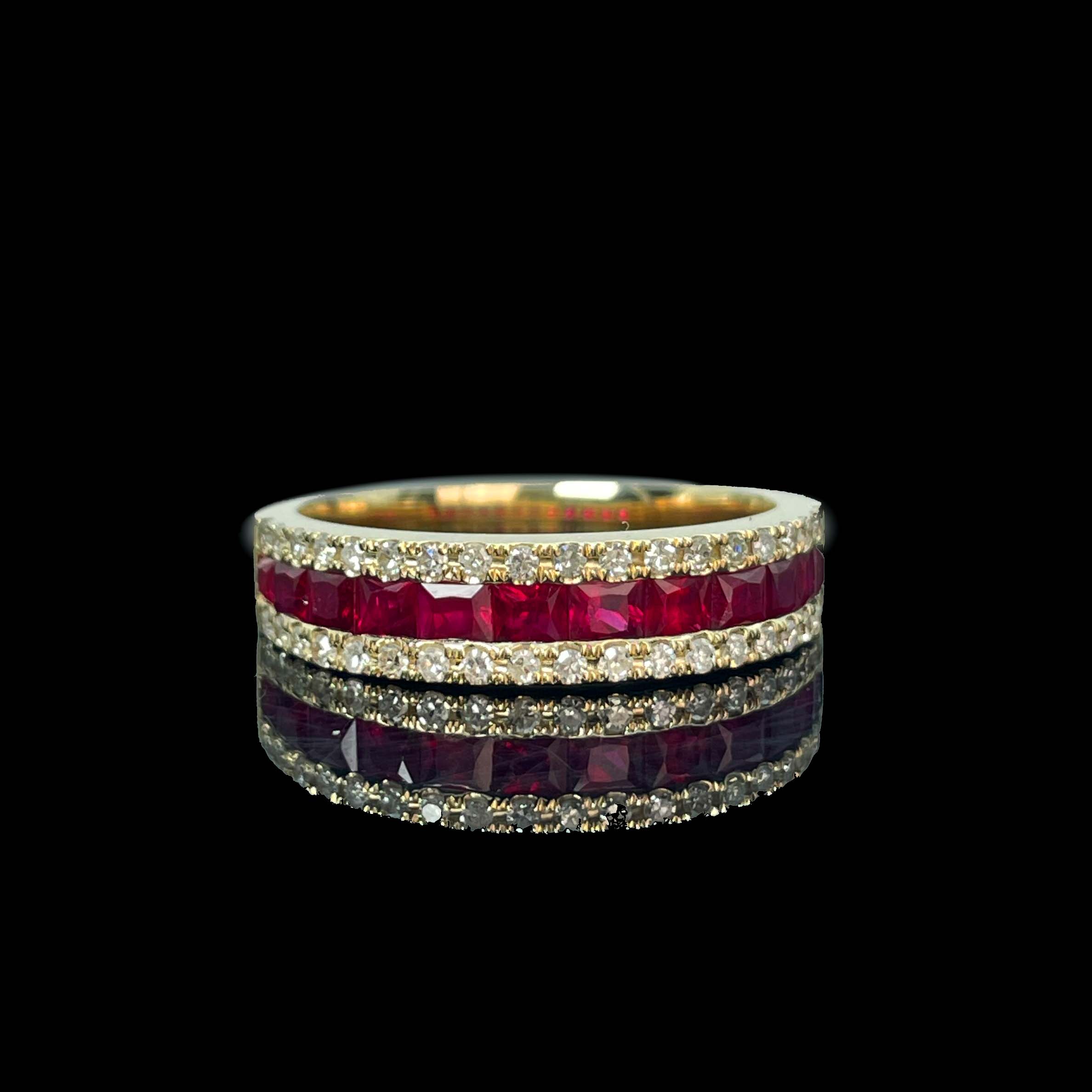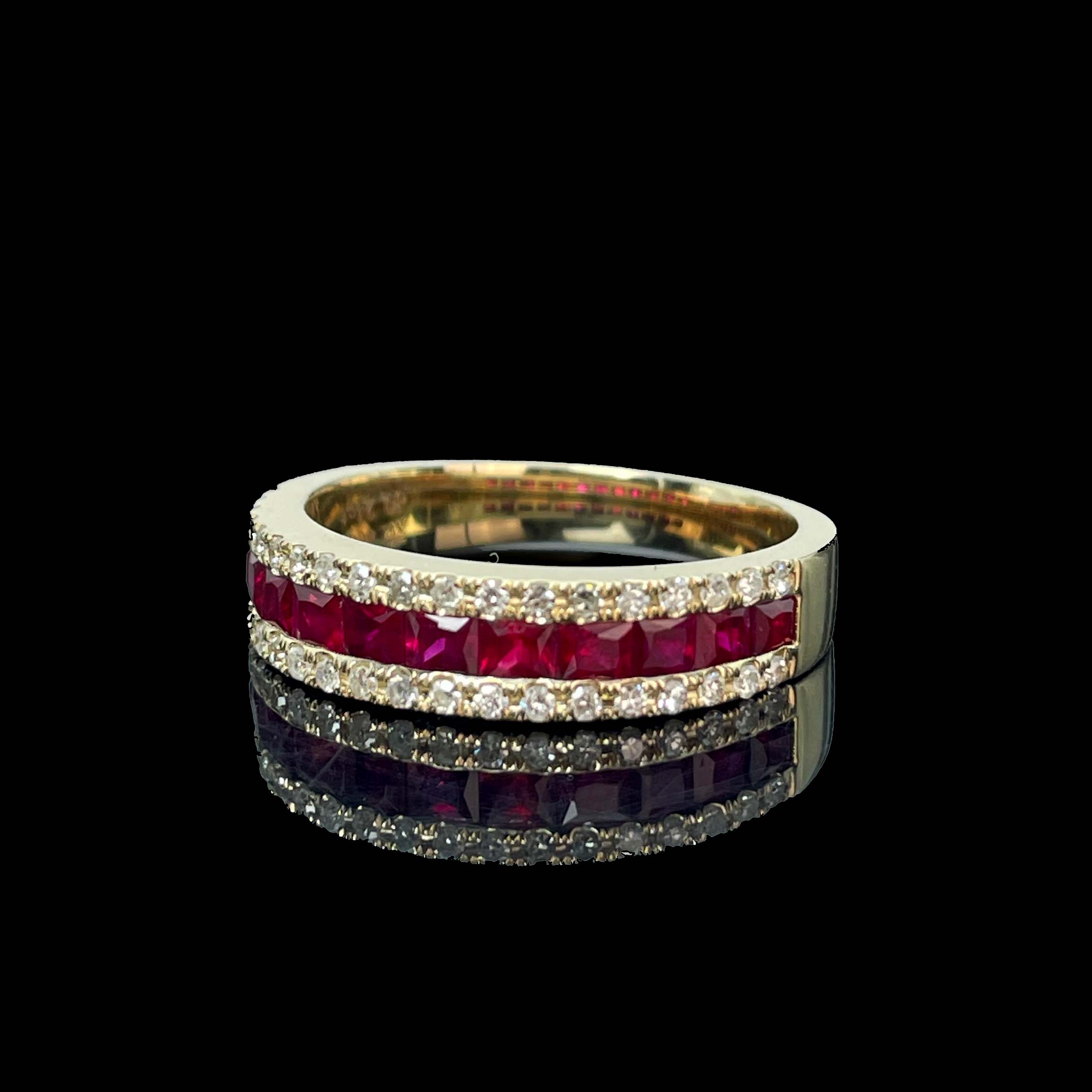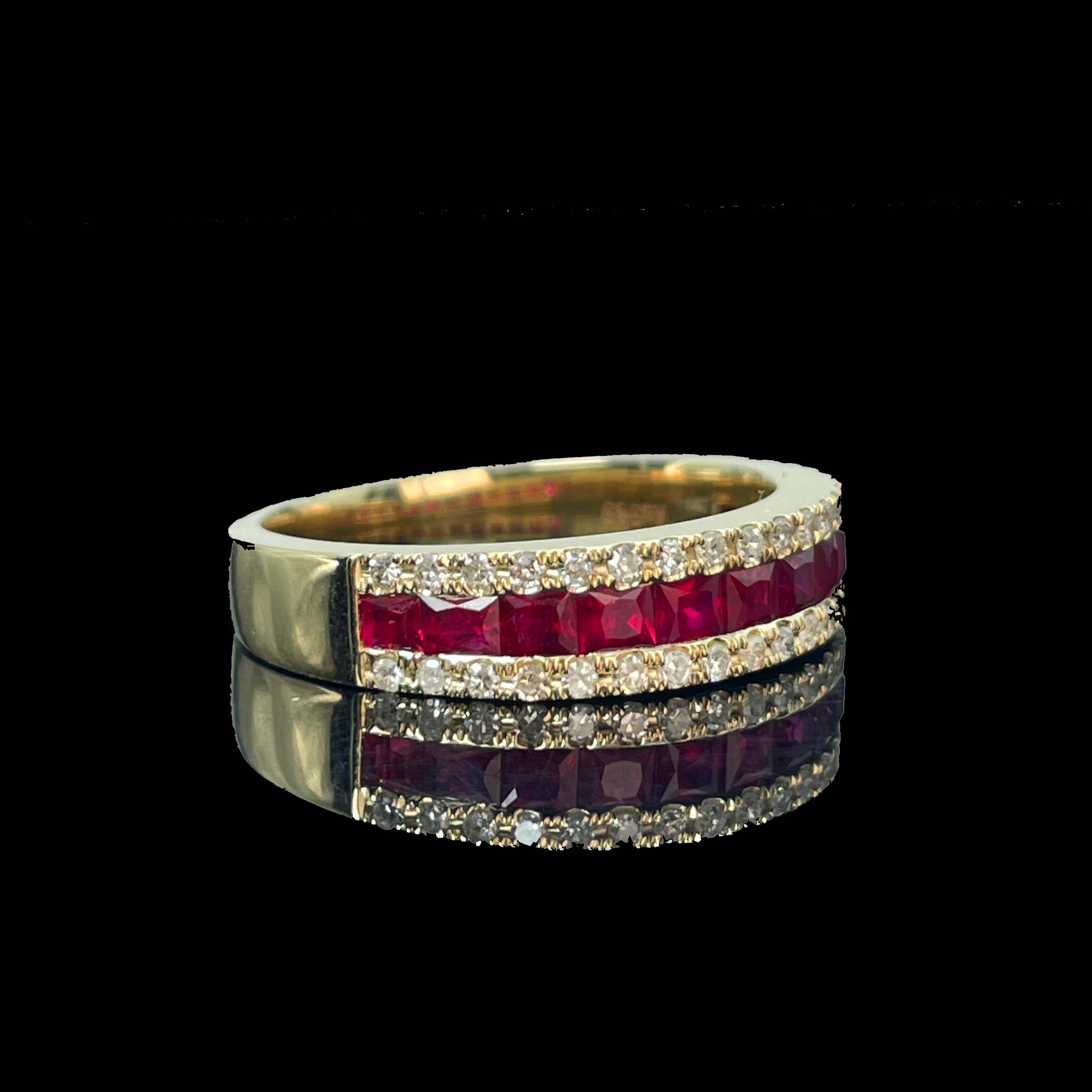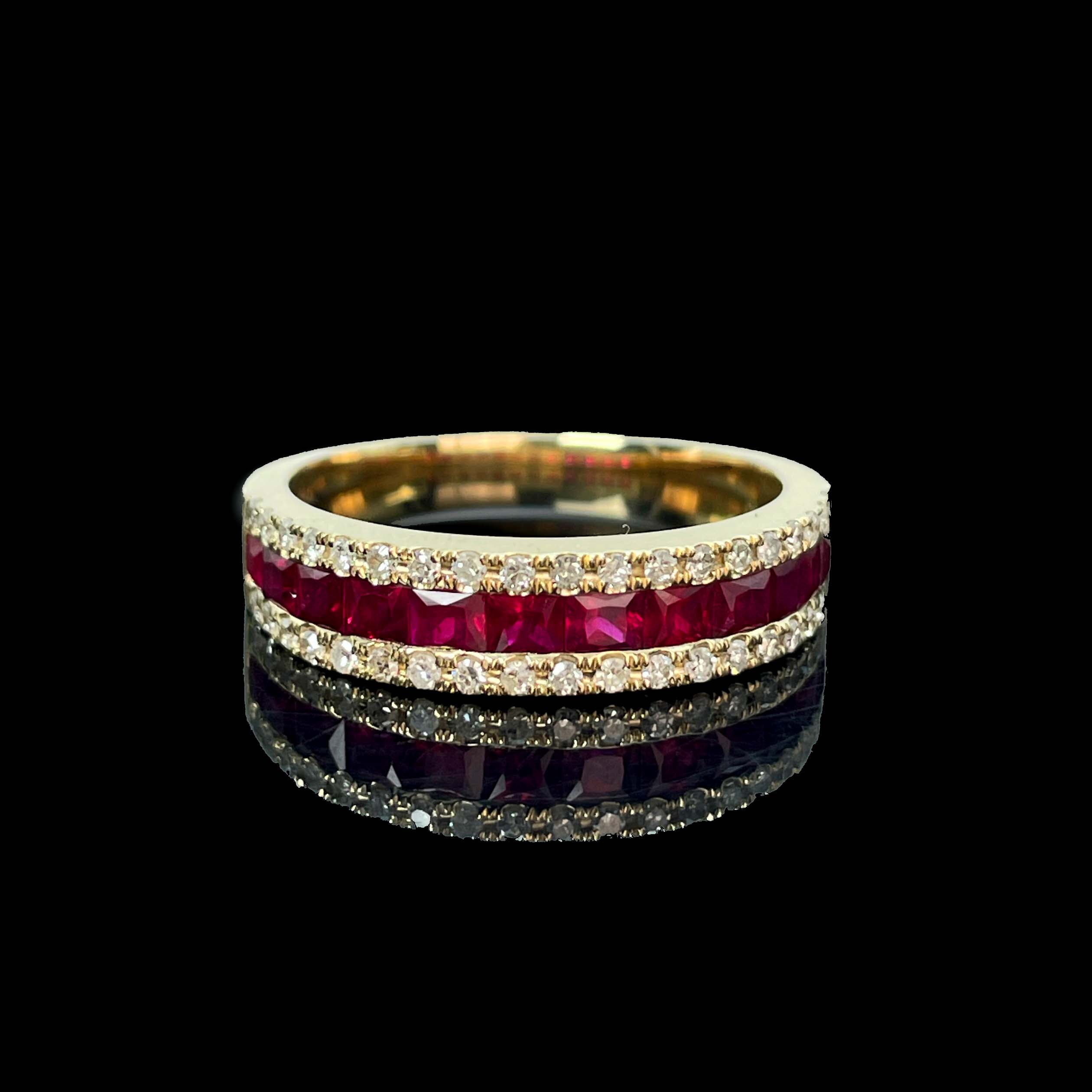 Ref:231019071 // Gold Content:14K Gold // Ring Size:7.25US // // Main Gemstone:Ruby // Shape:Princess // Carat Weight:0.8ct // Color:Red // Treatment:Natural // // Adjacent Gemstone 2 : Diamond // Number of stones:34 // Shape:Round // Clarity Grade:VS-SI // Color:H // Treatment:Natural // Cut Grade:G //