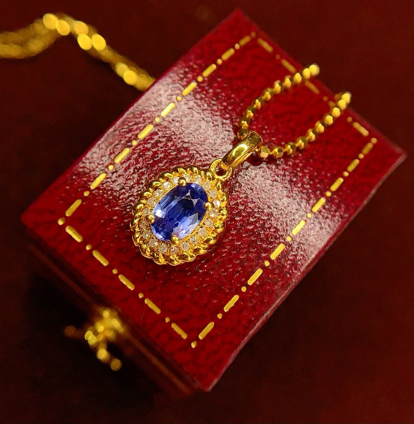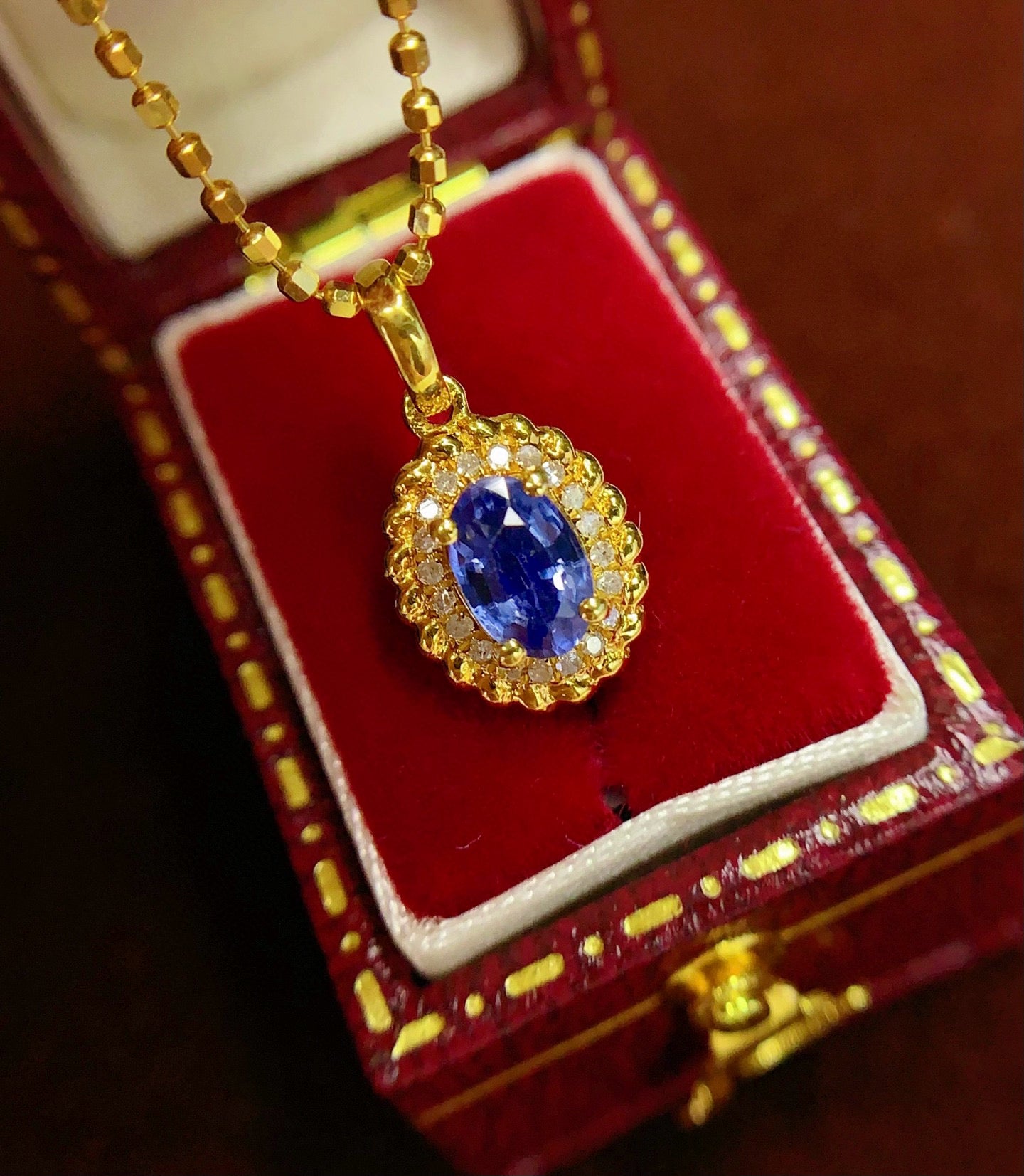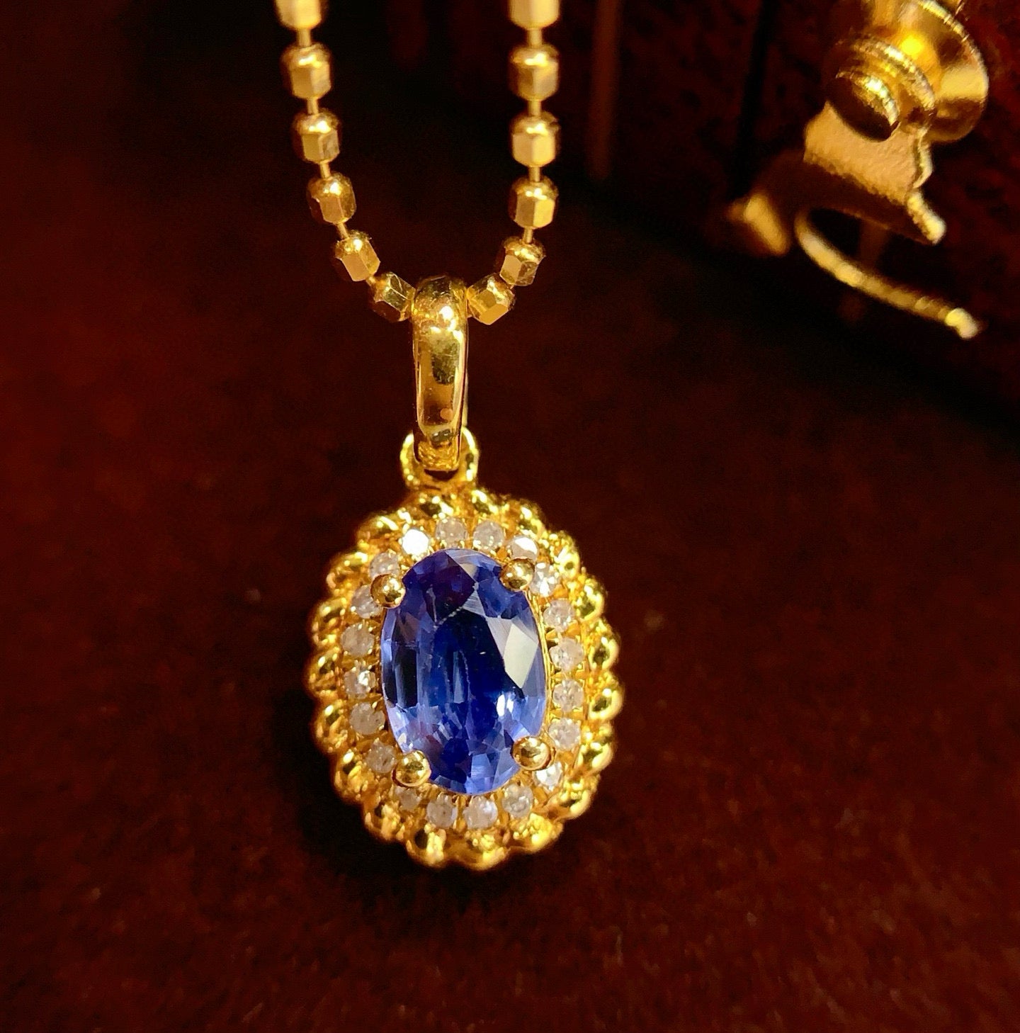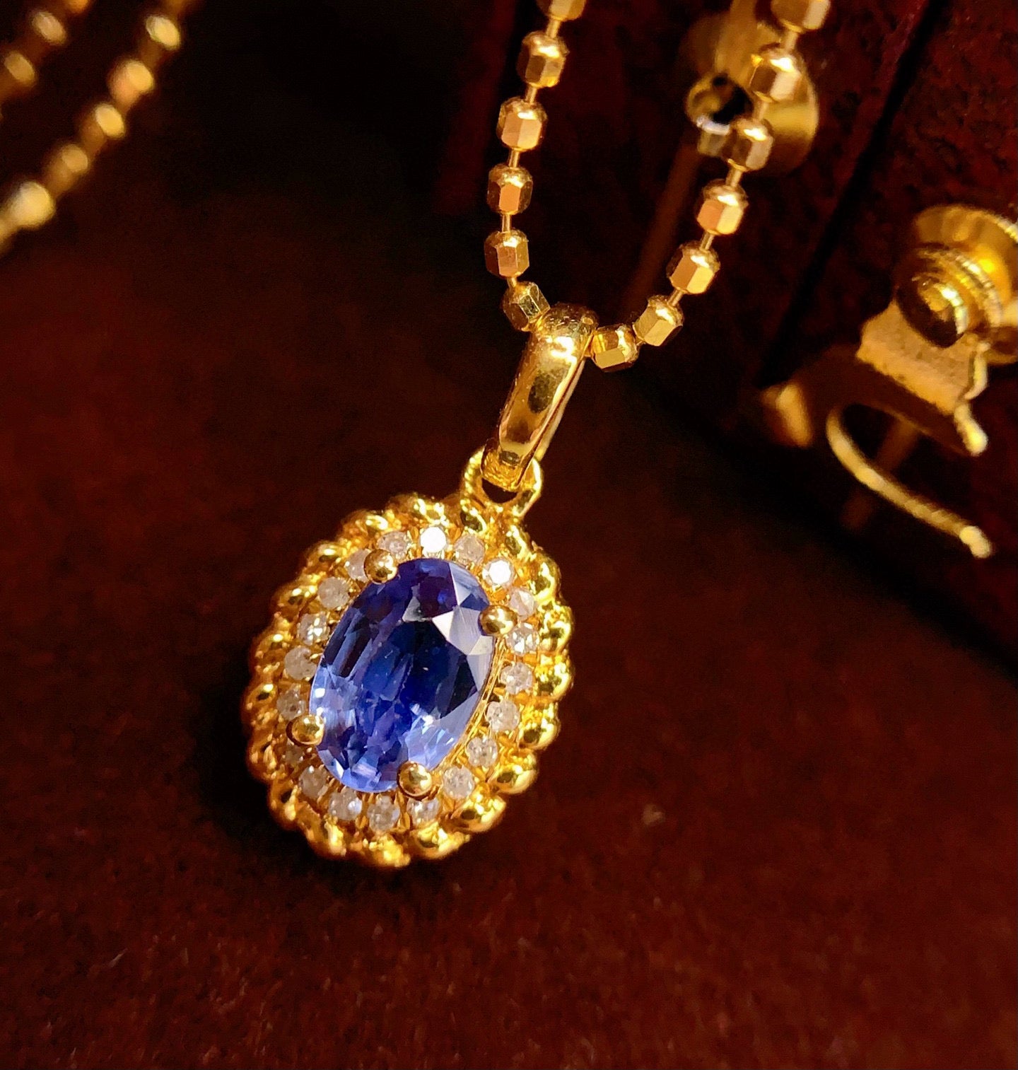 Ref:231025104 // Gold Content:14K Gold // Main Gemstone:Sapphire // Shape:Oval // Carat Weight:0.8ct // Color:Blue // Treatment:Natural // // Adjacent Gemstone 2 : Diamond // Number of stones:20 // Shape:Round // Clarity Grade:VS-SI // Color:H // Treatment:Natural // Cut Grade:G //
