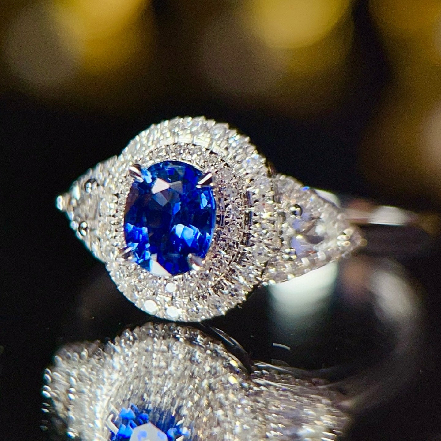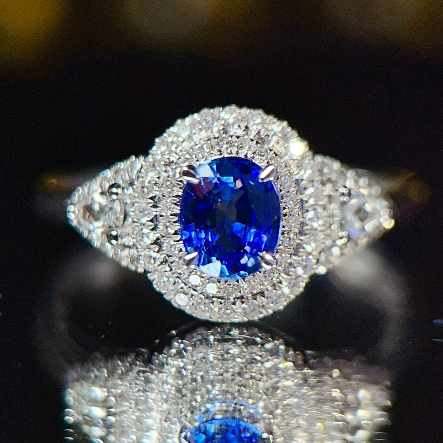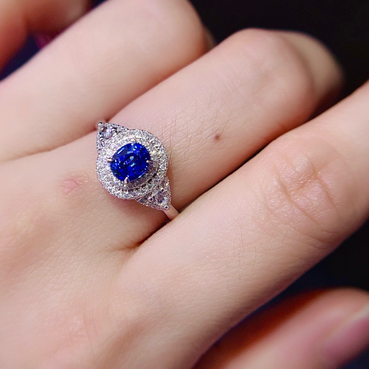 Ref:231021239 // Gold Content:14K Gold // Ring Size:7.25US // // Main Gemstone:Sapphire // Shape:Oval // Carat Weight:0.8ct // Color:Royal blue // Treatment:Natural // // Adjacent Gemstone 2 : Diamond // Number of stones:68 // Shape:Multiply // Clarity Grade:VS-SI // Color:H // Treatment:Natural //