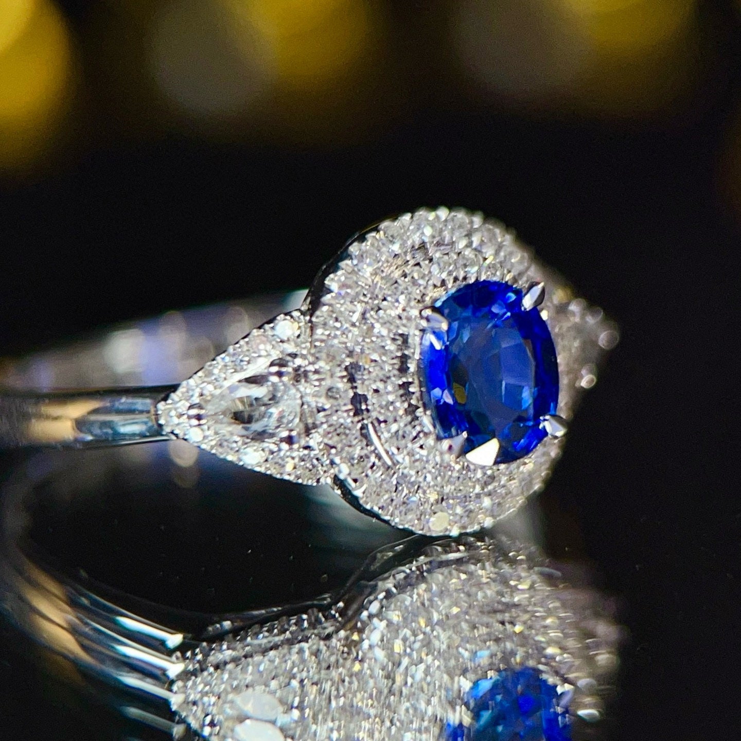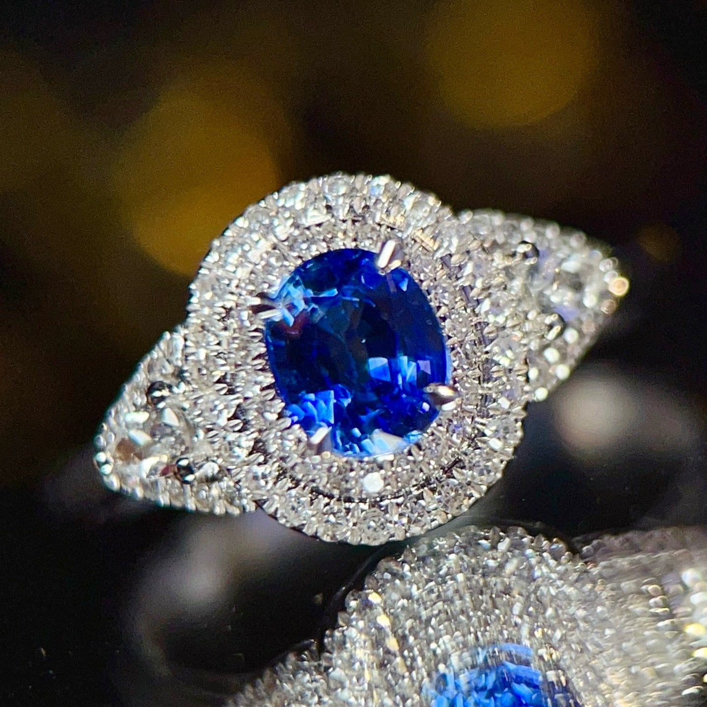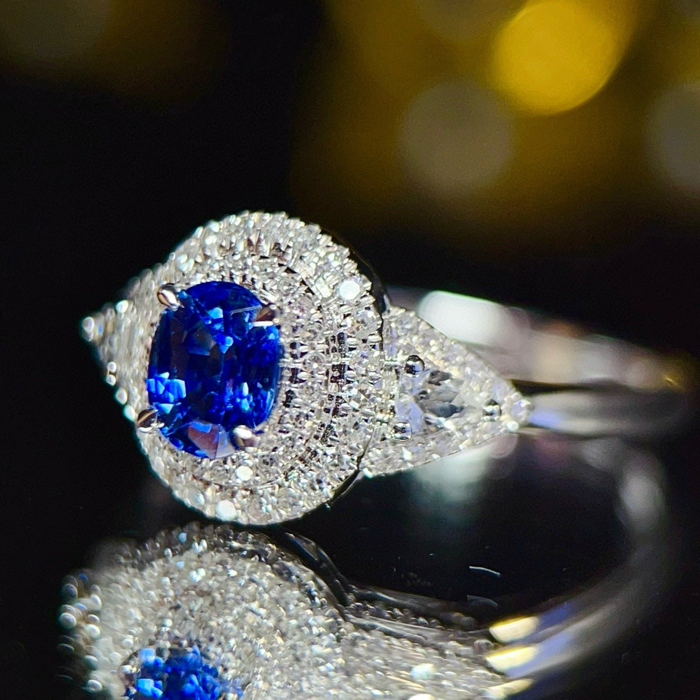 Ref:231021239 // Gold Content:14K Gold // Ring Size:7.25US // // Main Gemstone:Sapphire // Shape:Oval // Carat Weight:0.8ct // Color:Royal blue // Treatment:Natural // // Adjacent Gemstone 2 : Diamond // Number of stones:68 // Shape:Multiply // Clarity Grade:VS-SI // Color:H // Treatment:Natural //