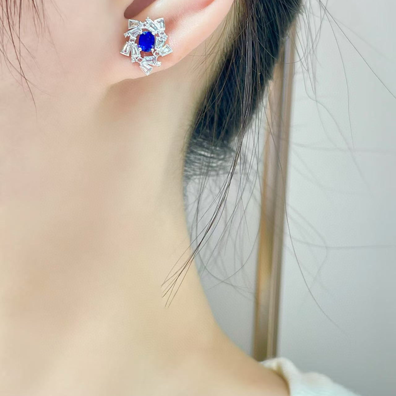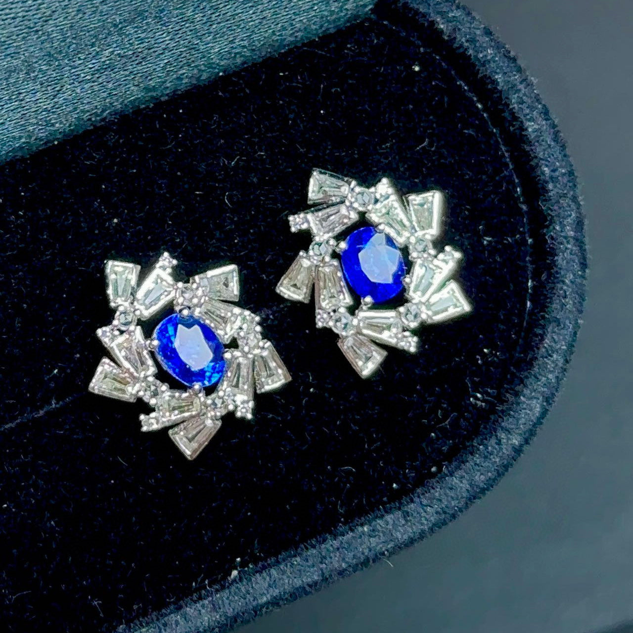 Ref:231023197 // Gold Content:14K Gold // Main Gemstone:Sapphire // Shape:Oval // Carat Weight:0.8ct // Color:Blue // Treatment:Natural // // Adjacent Gemstone 2 : Sapphire // Shape:Multiply // Color:White // Treatment:Natural //