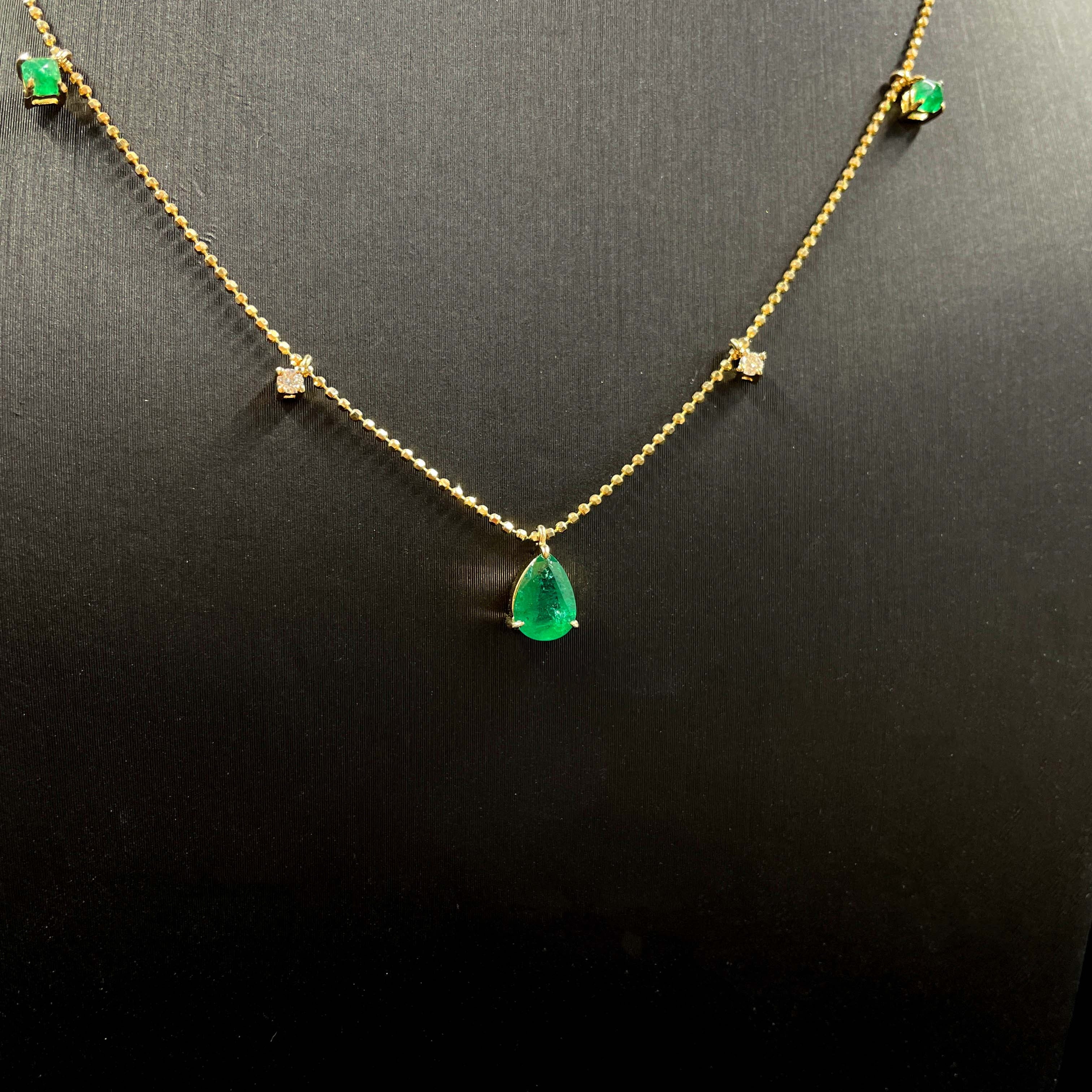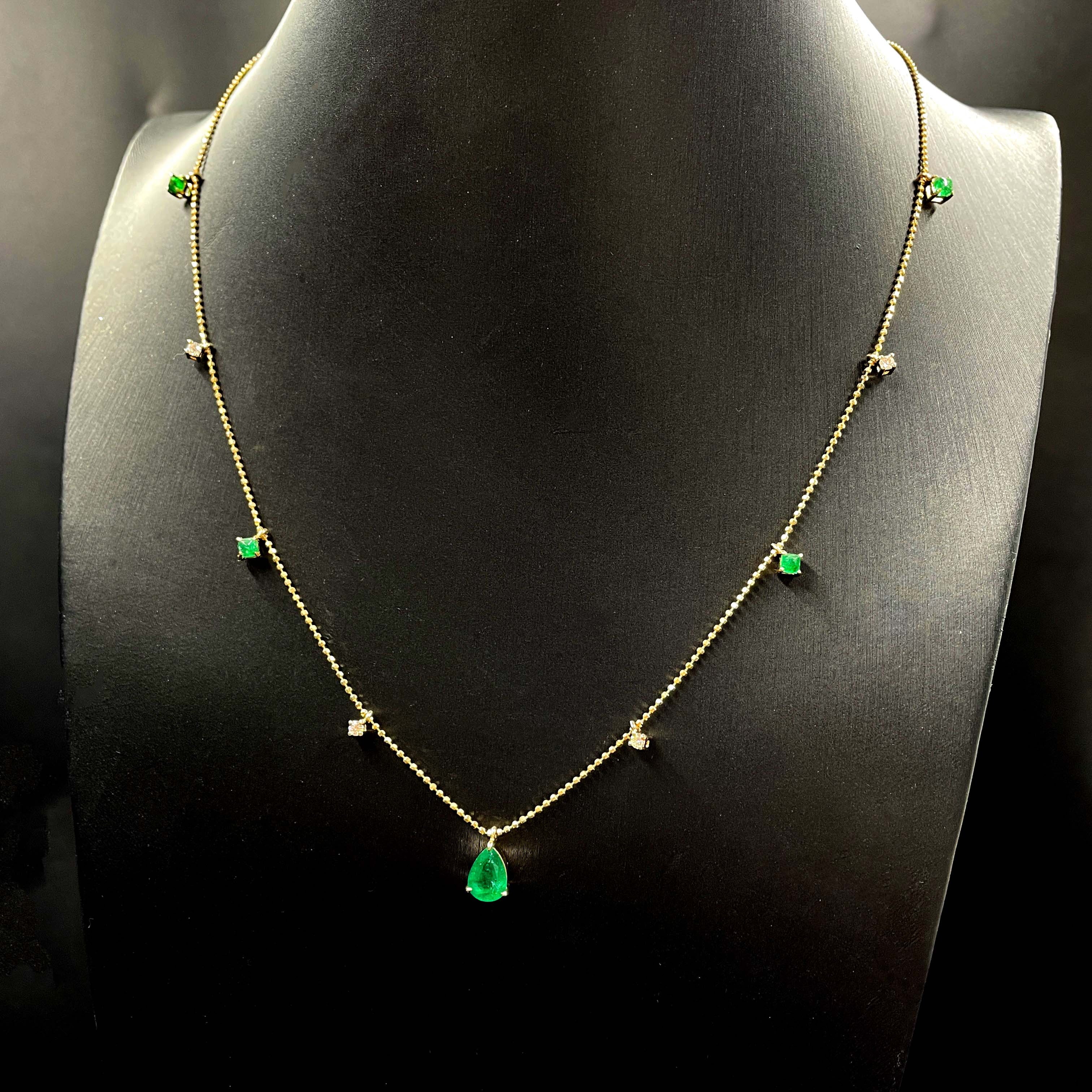 14K GOLD 0.8 CTW VIVID GREEN NATURAL EMERALD & DIAMOND NECKLACE