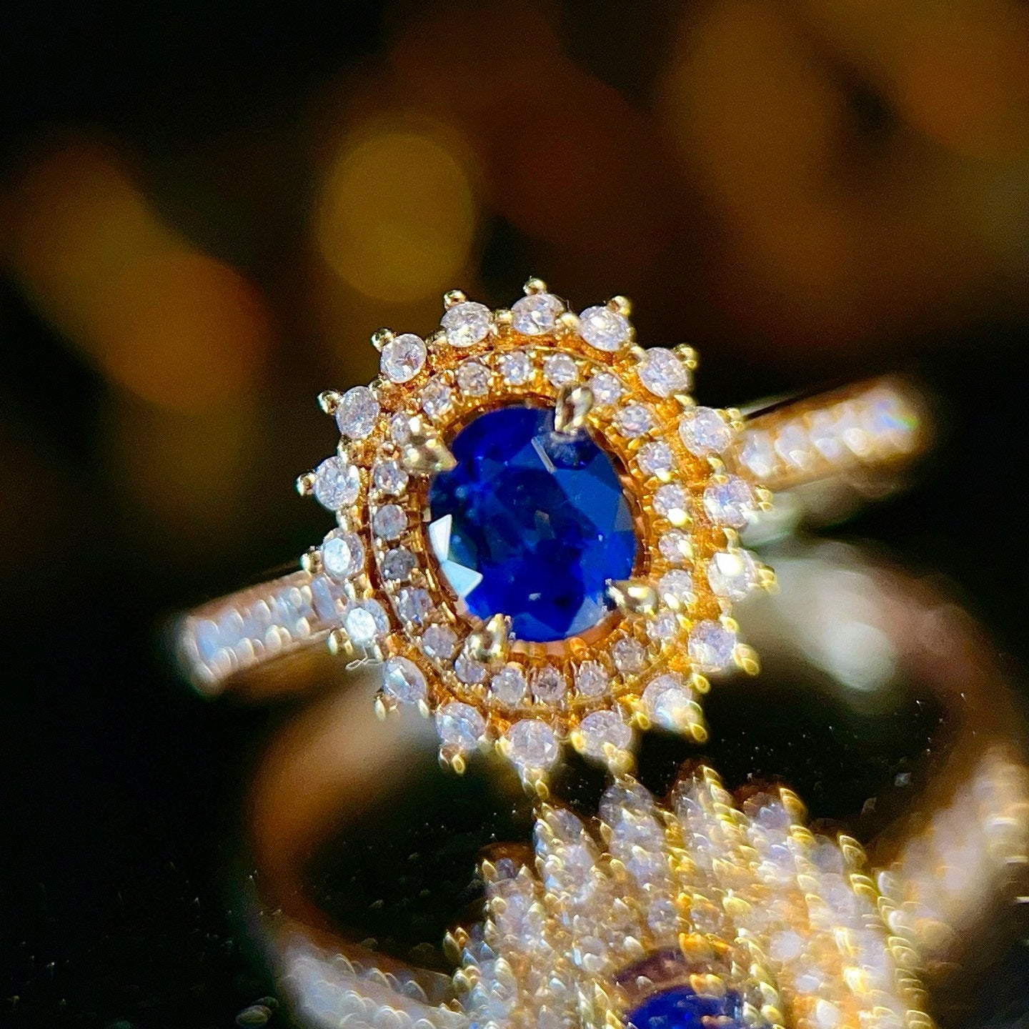 Ref:231021154 // Gold Content:14K Gold // Ring Size:7.25US // // Main Gemstone:Sapphire // Shape:Oval // Carat Weight:0.55ct // Color:Blue // Treatment:Natural // // Adjacent Gemstone 2 : Diamond // Number of stones:48 // Shape:Round // Carat Weight:0.25ct // Clarity Grade:VS-SI // Color:H // Treatment:Natural // Cut Grade:G //