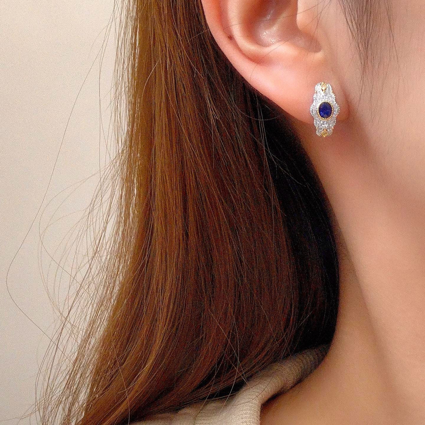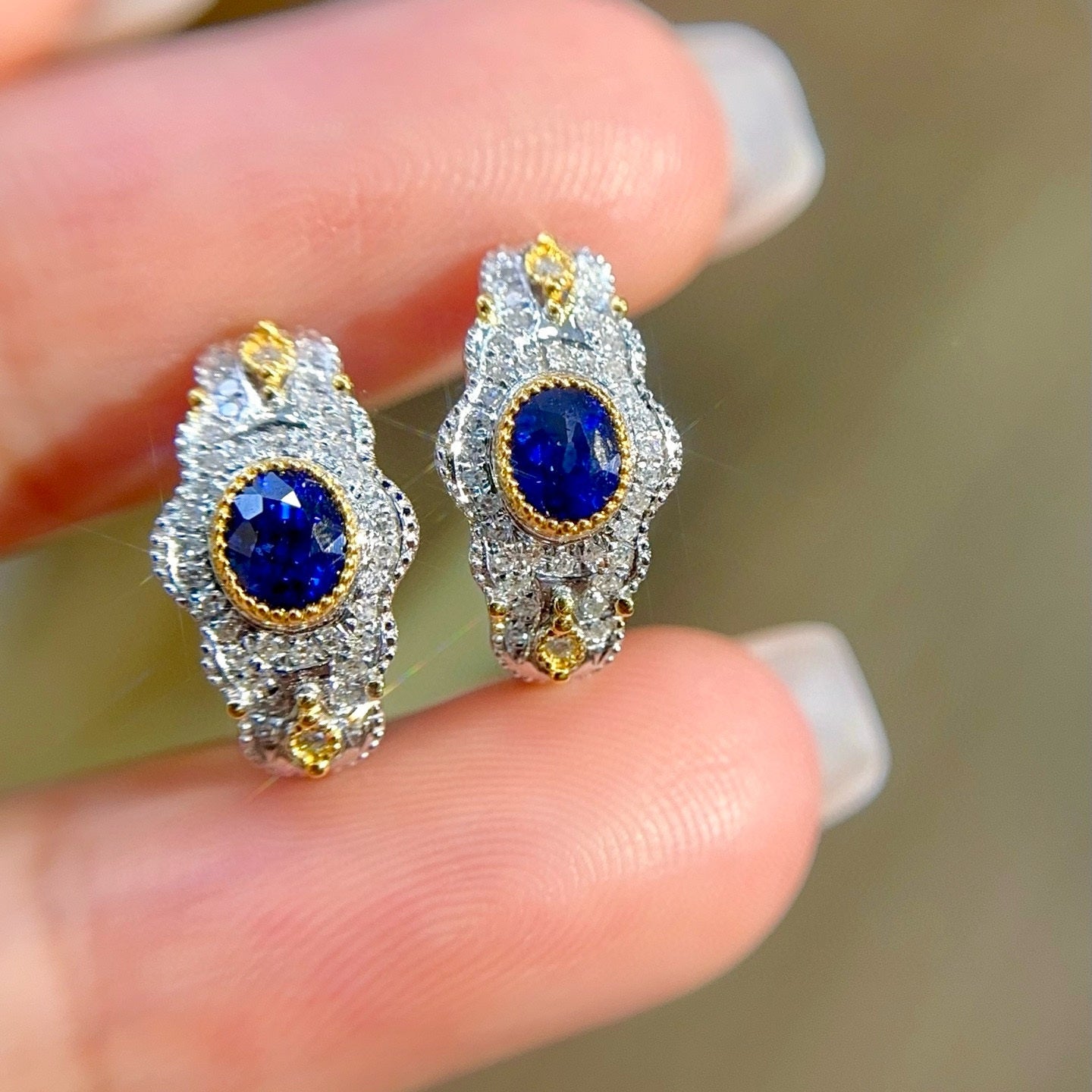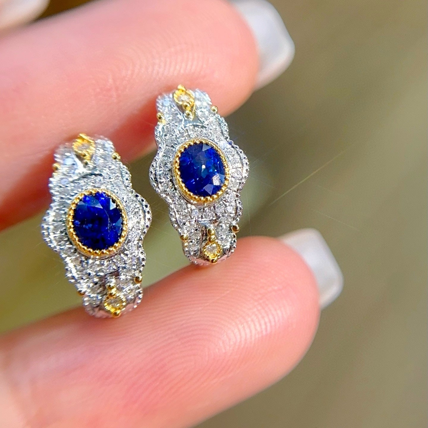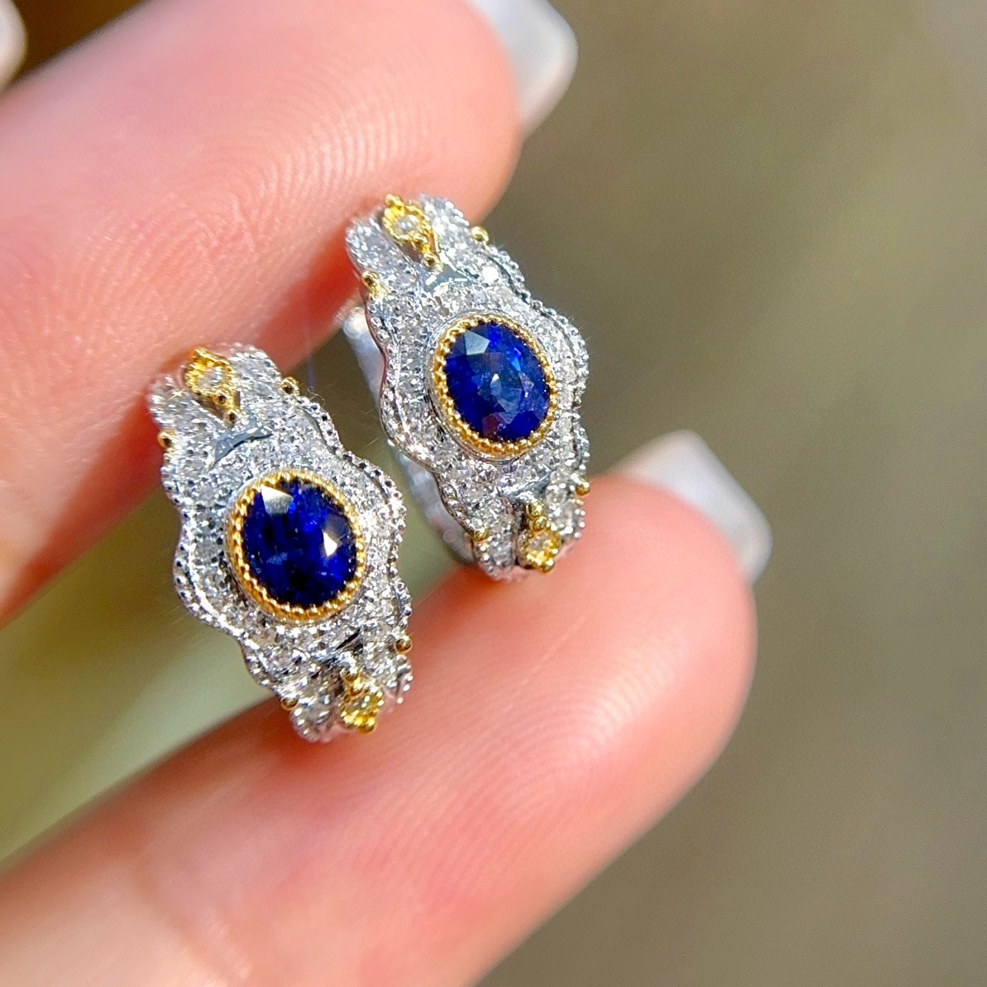 14K GOLD 0.85 CT NATURAL SAPPHIRE & DIAMOND EARRINGS