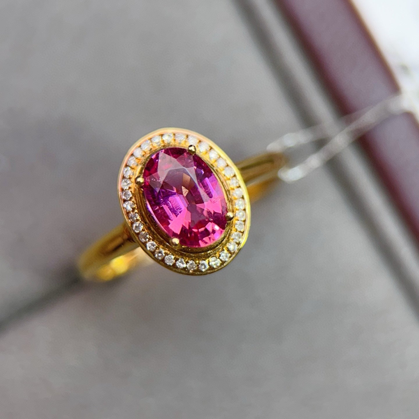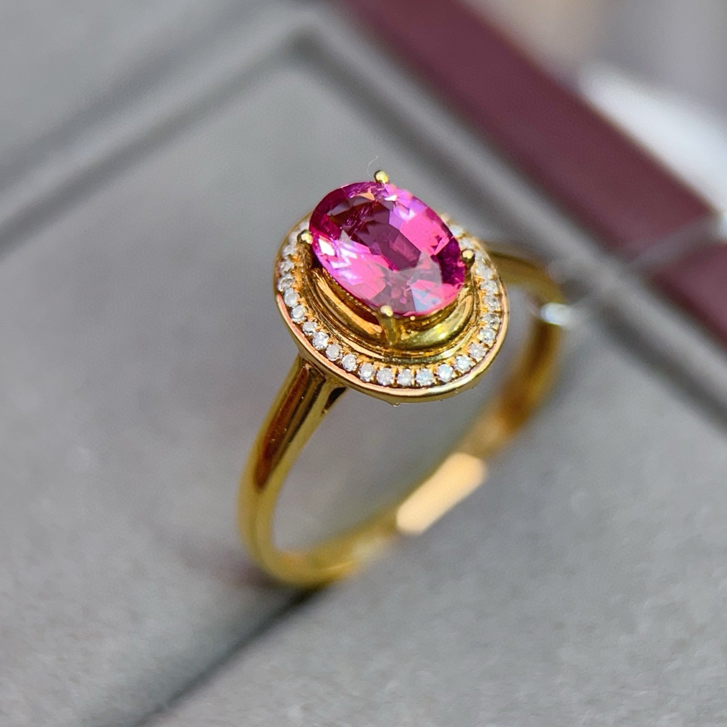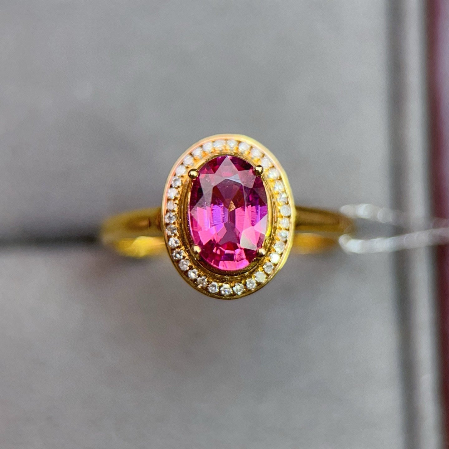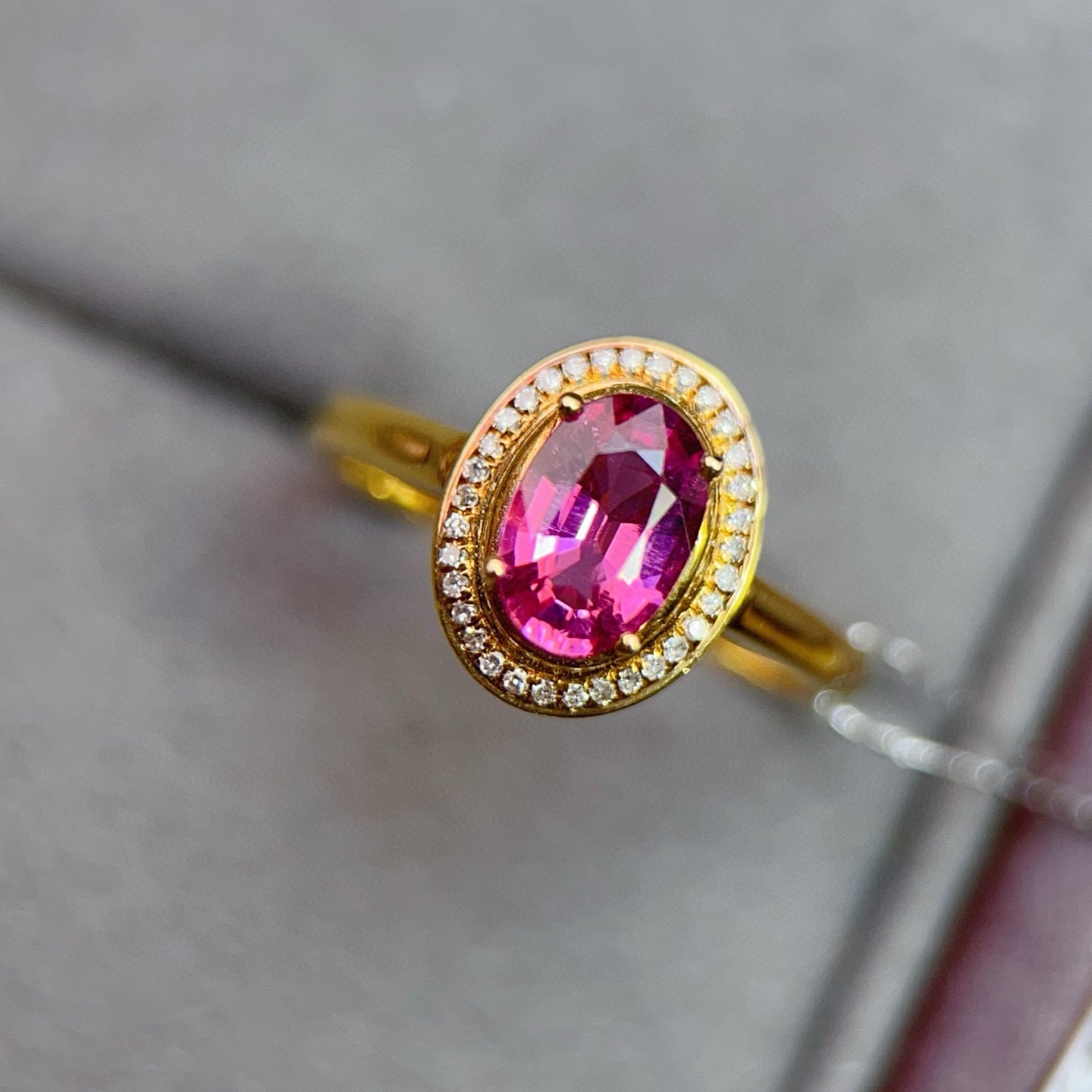 Ref:231021155 // Gold Content:14K Gold // Ring Size:7.25US // // Main Gemstone:Tourmaline // Shape:Oval // Carat Weight:0.85ct // Color:Red // Treatment:Natural // // Adjacent Gemstone 2 : Diamond // Number of stones:33 // Shape:Round // Clarity Grade:VS-SI // Color:H // Treatment:Natural // Cut Grade:G //