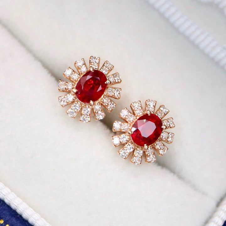 14K GOLD 0.85 CTW NATURAL RUBY & DIAMOND EARRINGS