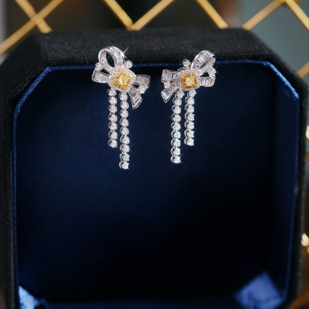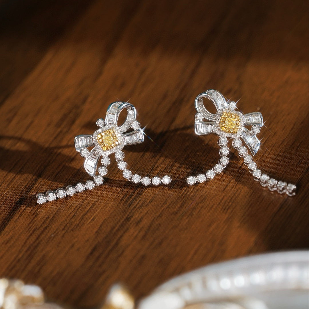14K GOLD 0.86 CTW NATURAL YELLOW DIAMOND & DIAMOND EARRINGS