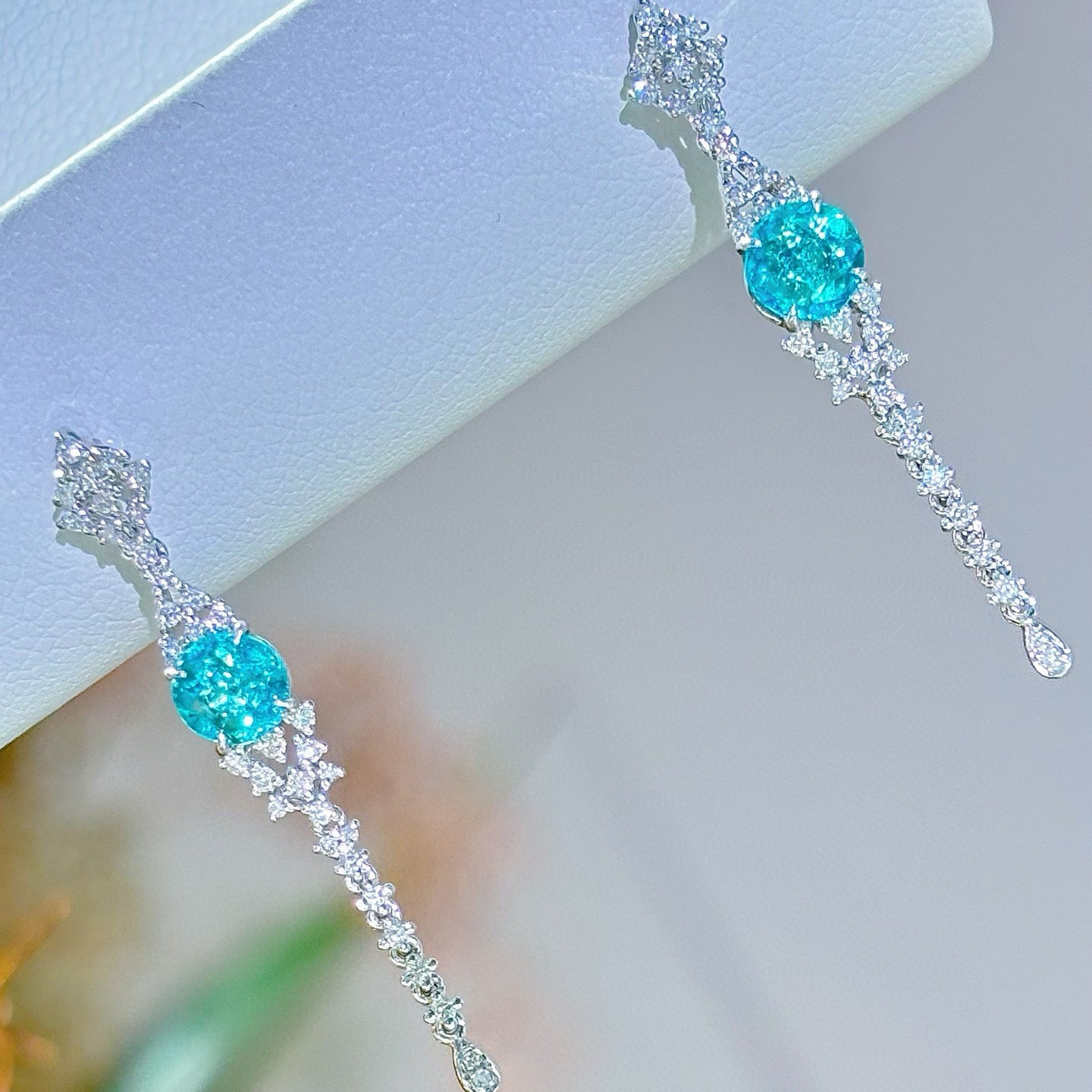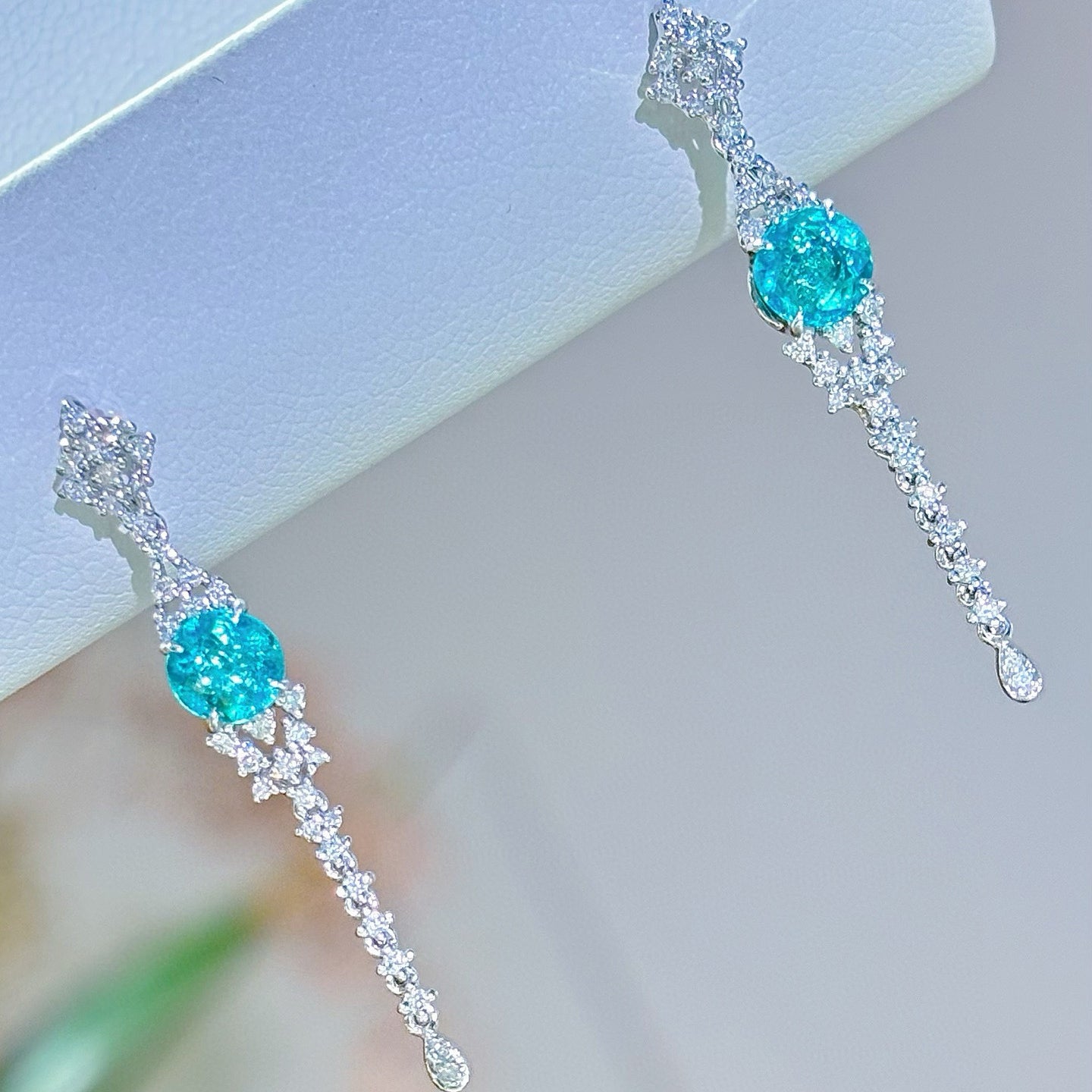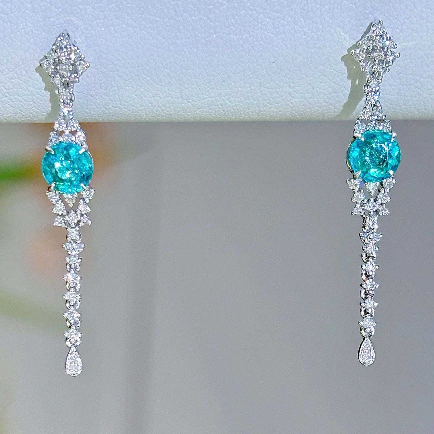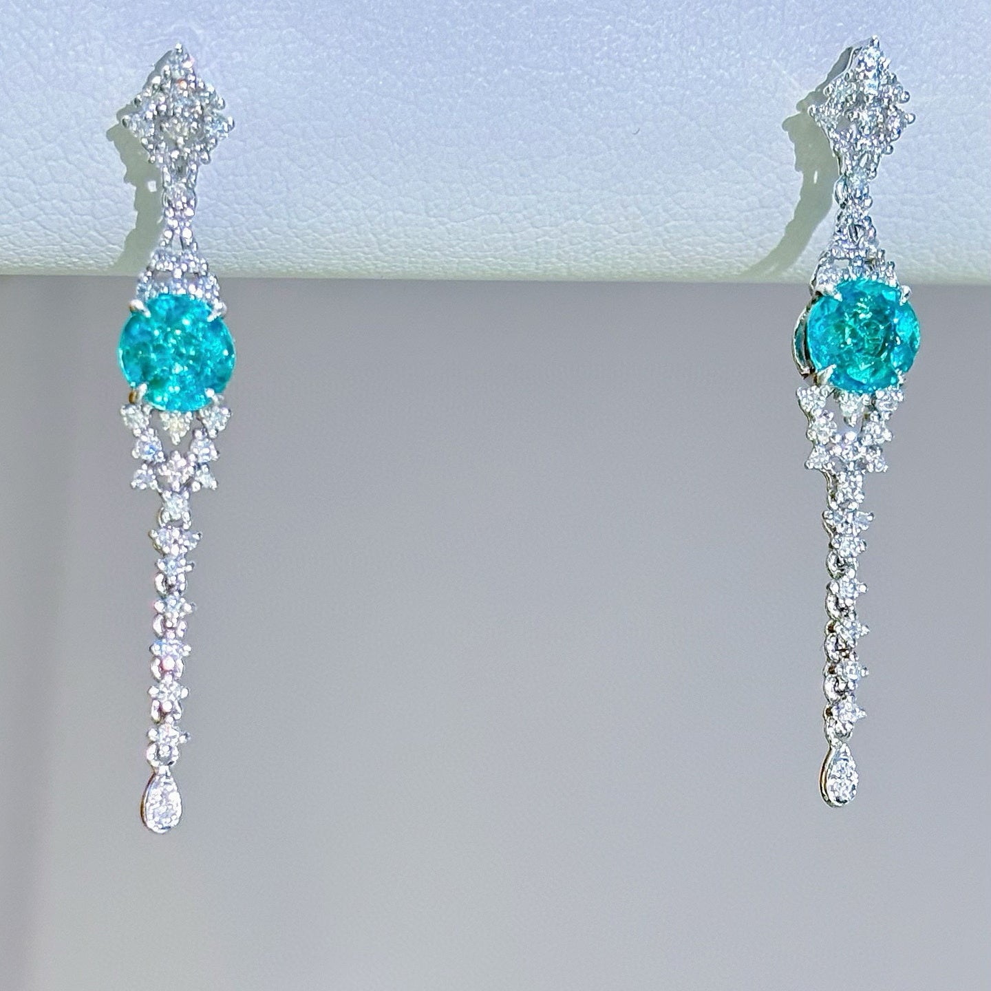 14K GOLD 0.88 CT NATURAL PARAIBA TOURMALINE & DIAMOND EARRINGS