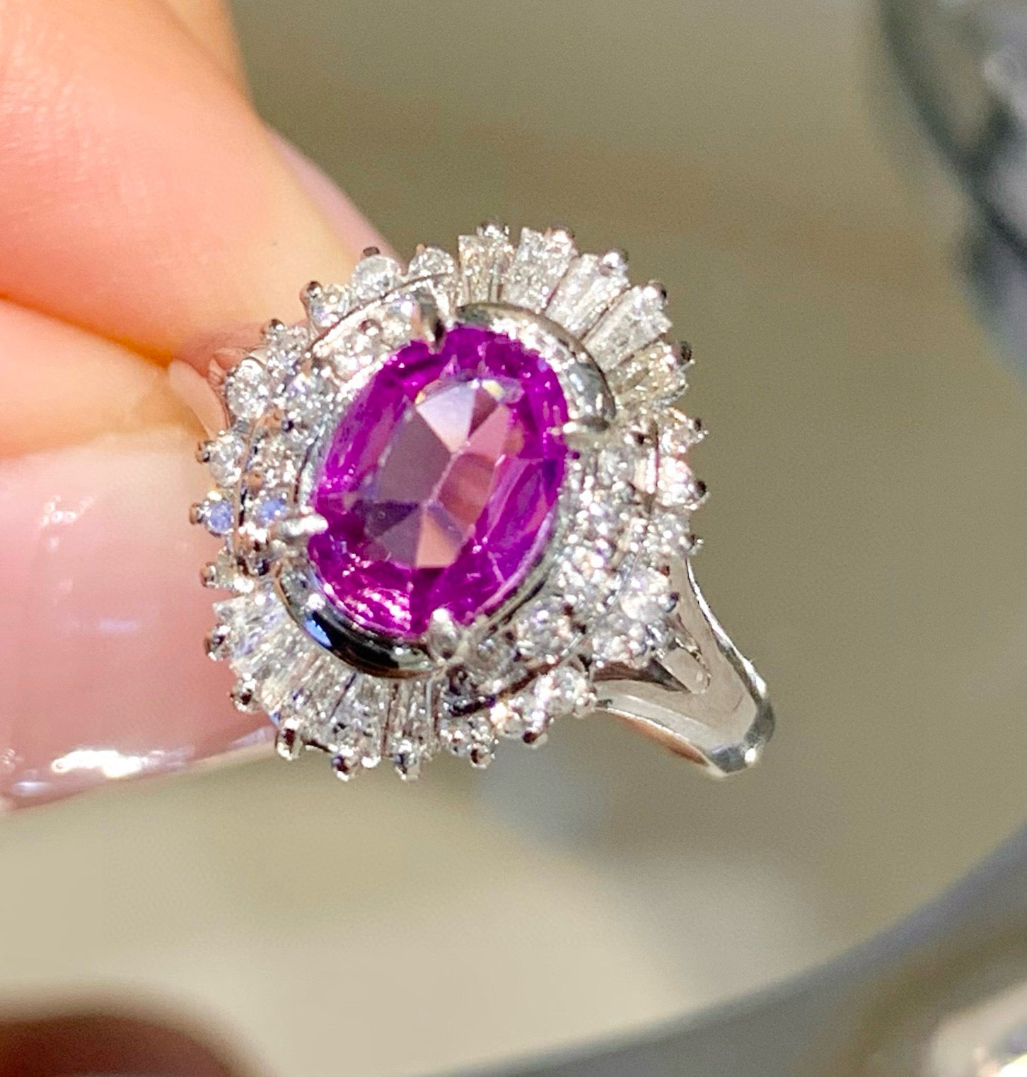 Ref:231027249 // Gold Content:14K Gold // Ring Size:7.25US // // Main Gemstone:Sapphire // Shape:Oval // Carat Weight:0.9ct // Color:Purple // Treatment:Natural // // Adjacent Gemstone 2 : Diamond // Shape:Multiply // Clarity Grade:VS-SI // Color:H // Treatment:Natural //