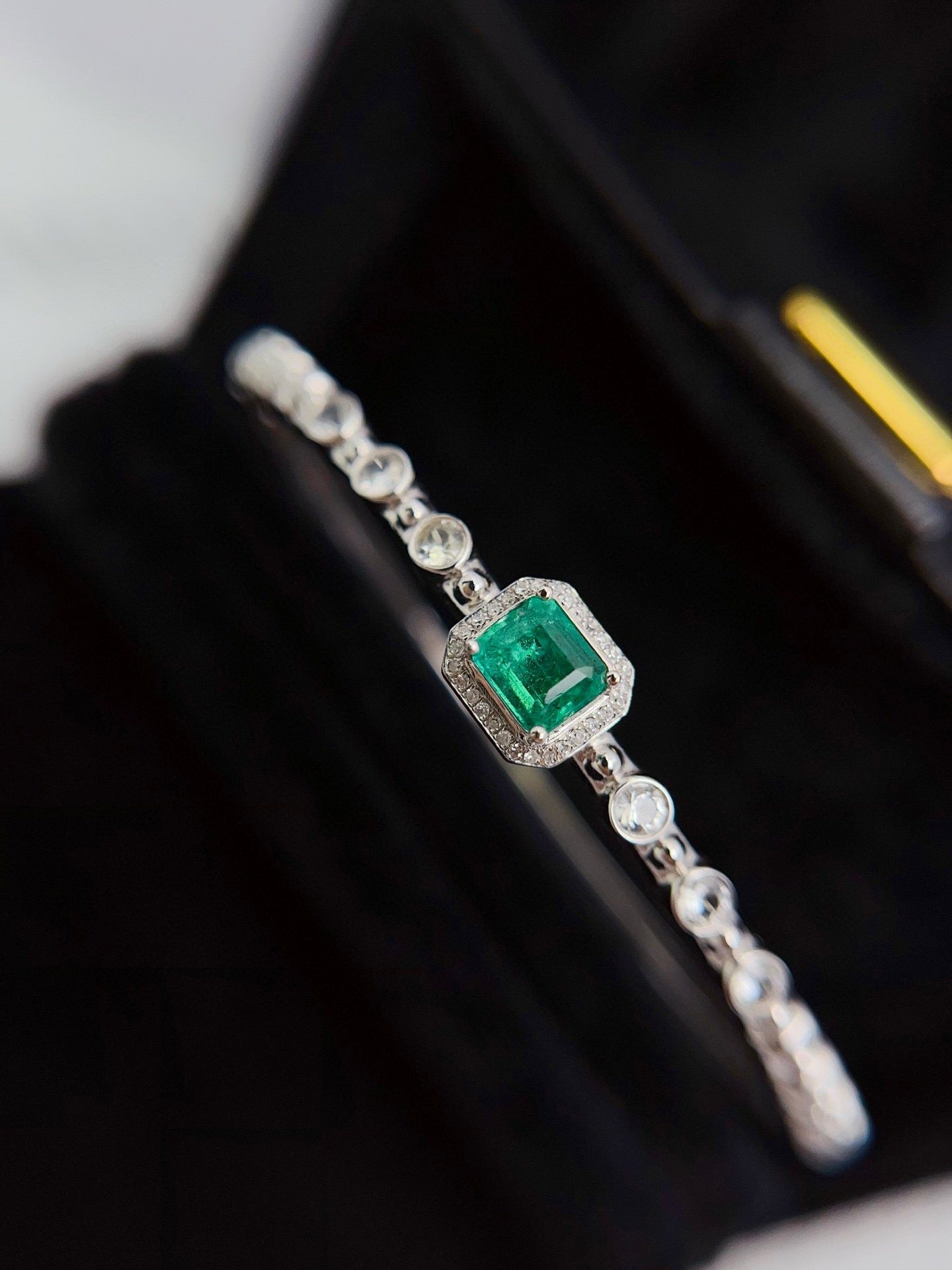Ref:231027111 // Gold Content:14K Gold // Main Gemstone:Emerald // Shape:Octagonal // Carat Weight:0.90ct // Color:Vivid Green // Treatment:Natural // // Adjacent Gemstone 2 : Diamond // Number of stones:29 // Shape:Round // Clarity Grade:VS-SI // Color:H // Treatment:Natural // Cut Grade:G // // Adjacent Gemstone 3 : Sapphire // Number of stones:6 // Shape:Round // Color:White // Treatment:Natural // Cut Grade:G //