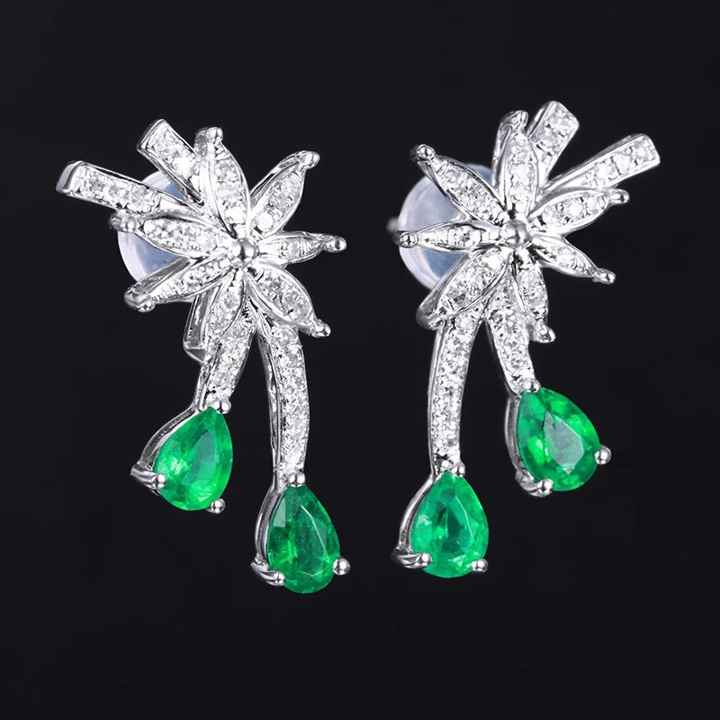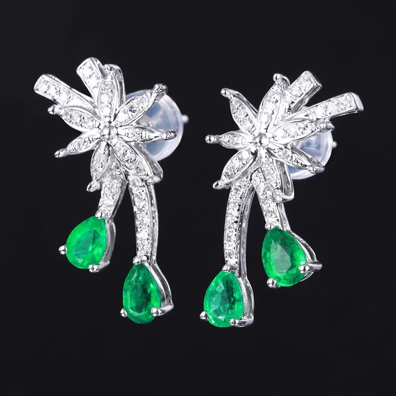 Ref:231025030 // Gold Content:14K Gold // Main Gemstone:Emerald // Shape:Pear // Carat Weight:0.76ct // Color:Vivid Green // Treatment:Natural // // Adjacent Gemstone 2 : Diamond // Number of stones:60 // Shape:Round // Carat Weight:0.18ct // Clarity Grade:VS-SI // Color:H // Treatment:Natural // Cut Grade:G //
