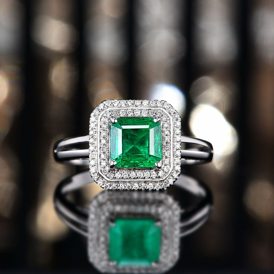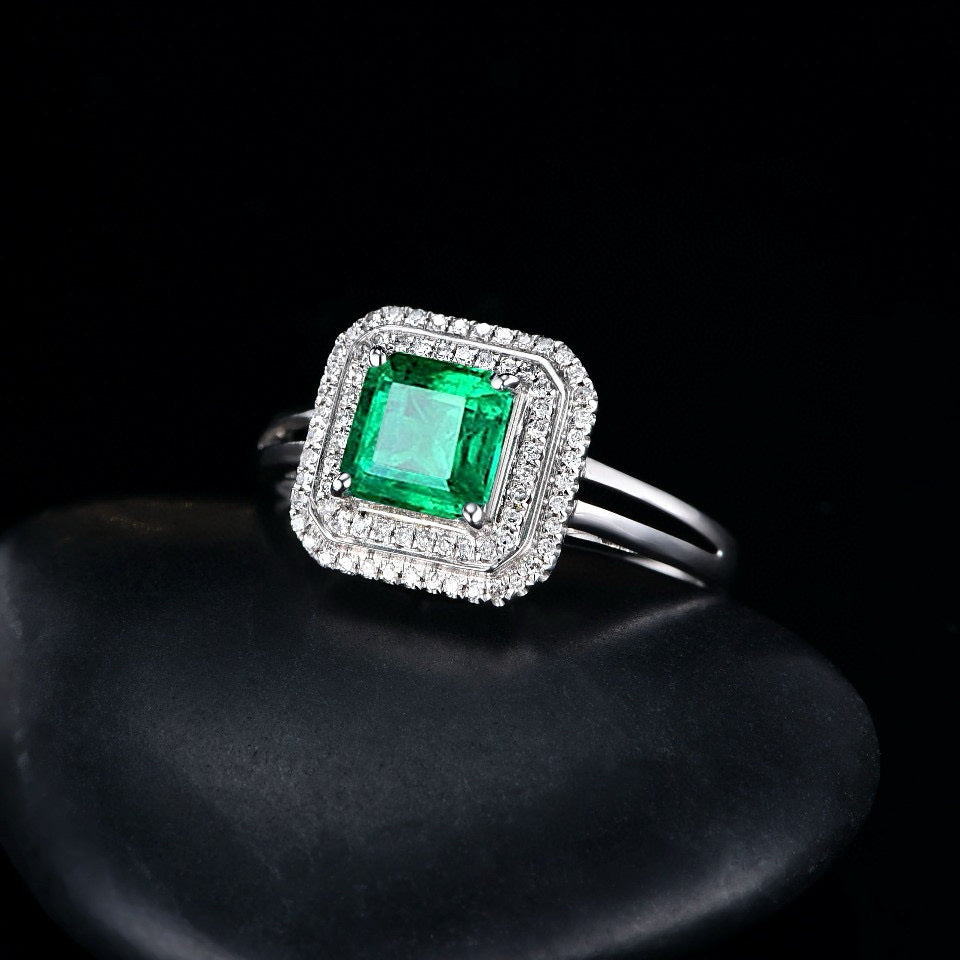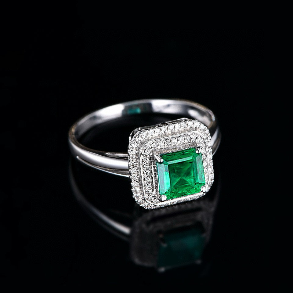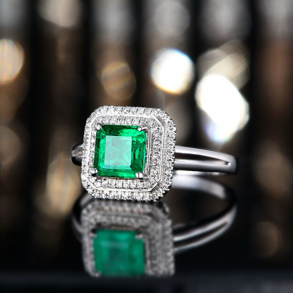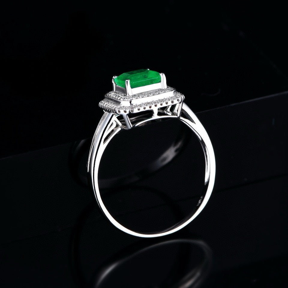 Ref:231021096 // Gold Content:14K Gold // Ring Size:7.25US // // Main Gemstone:Emerald // Shape:Octagonal // Carat Weight:0.95ct // Color:Vivid Green // Treatment:Natural // // Adjacent Gemstone 2 : Diamond // Shape:Round // Clarity Grade:VS-SI // Color:H // Treatment:Natural // Cut Grade:G //