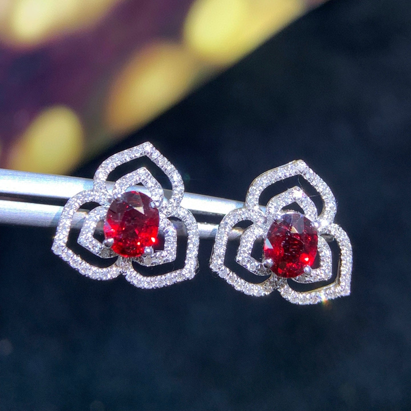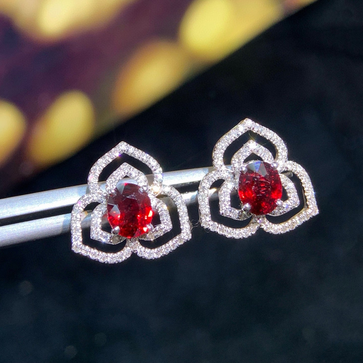 14K GOLD 0.96 CT NATURAL RUBY & DIAMOND EARRINGS