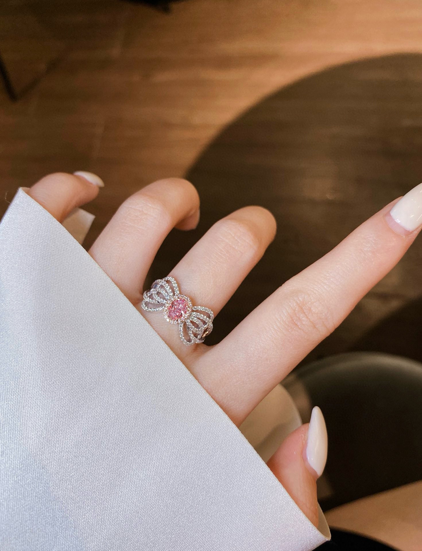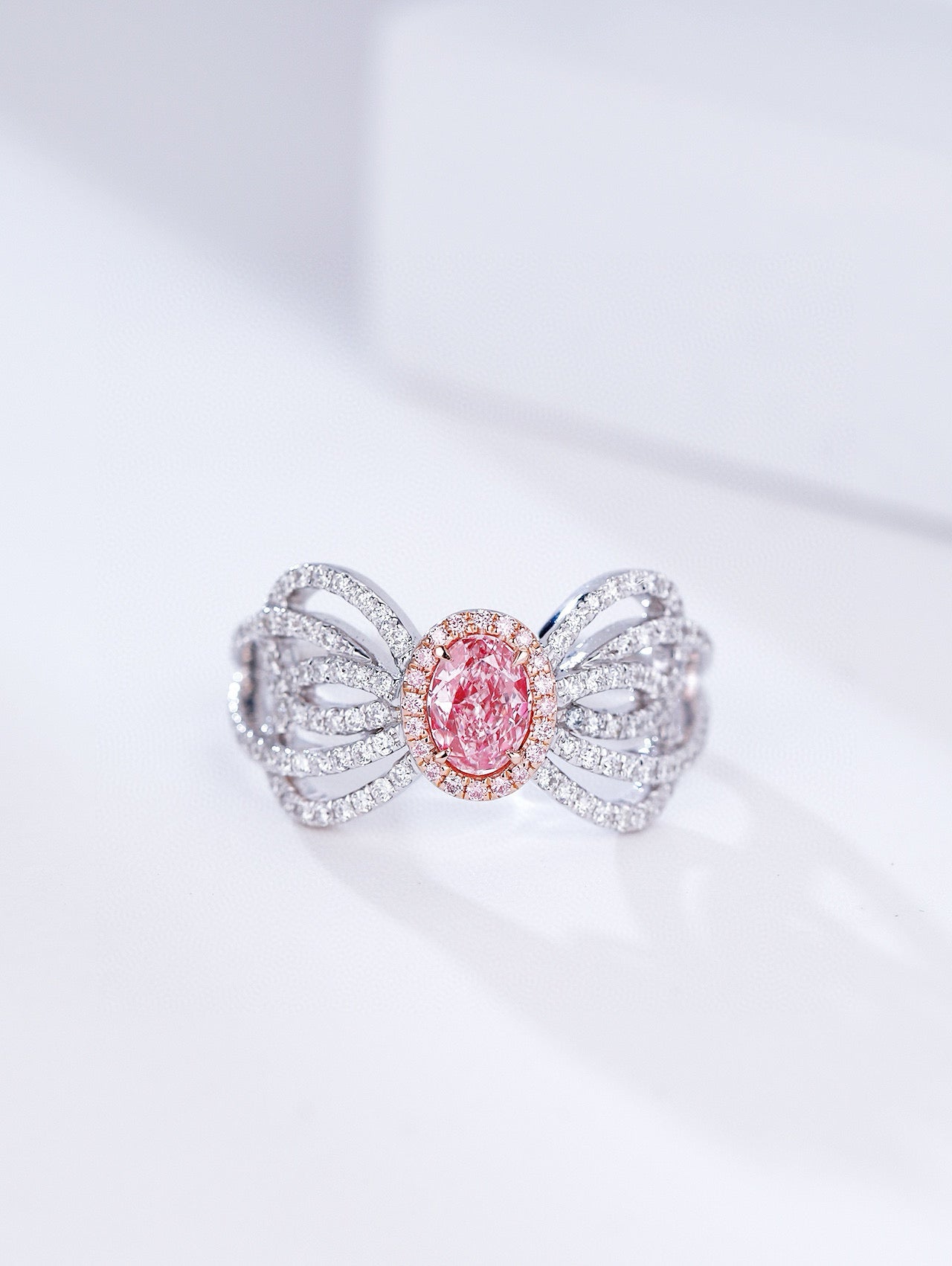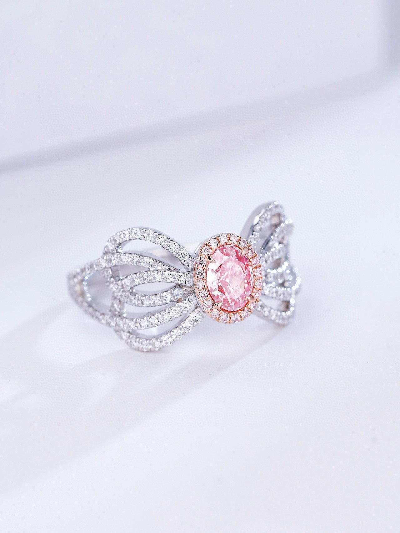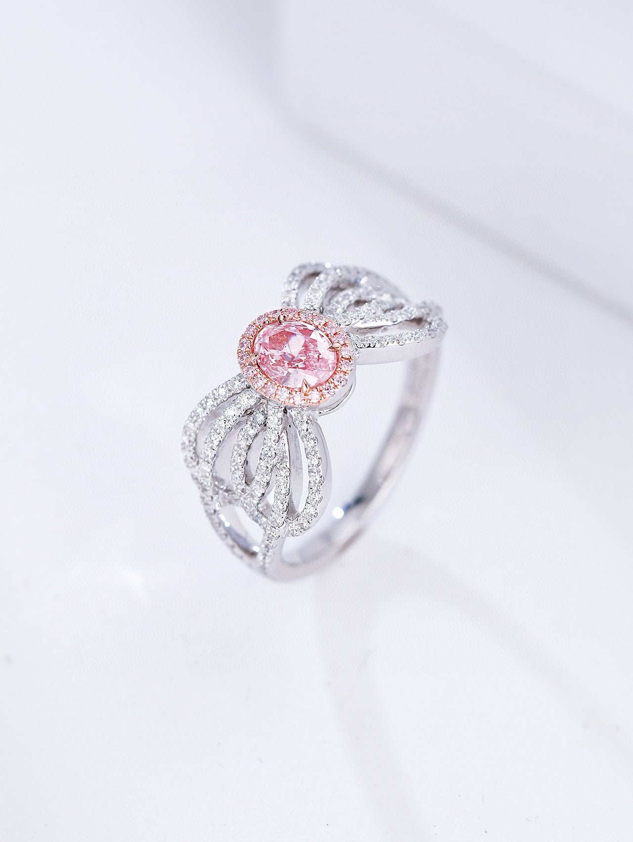 Ref:231025065 // Gold Content:14K Gold // Ring Size:7.25US // // Main Gemstone:Pink Diamond // Shape:Oval // Carat Weight:0.44ct // Color:Pink // Treatment:Natural // // Adjacent Gemstone 2 : Diamond // Shape:Round // Carat Weight:0.54ct // Clarity Grade:VS-SI // Color:H // Treatment:Natural // Cut Grade:G //
