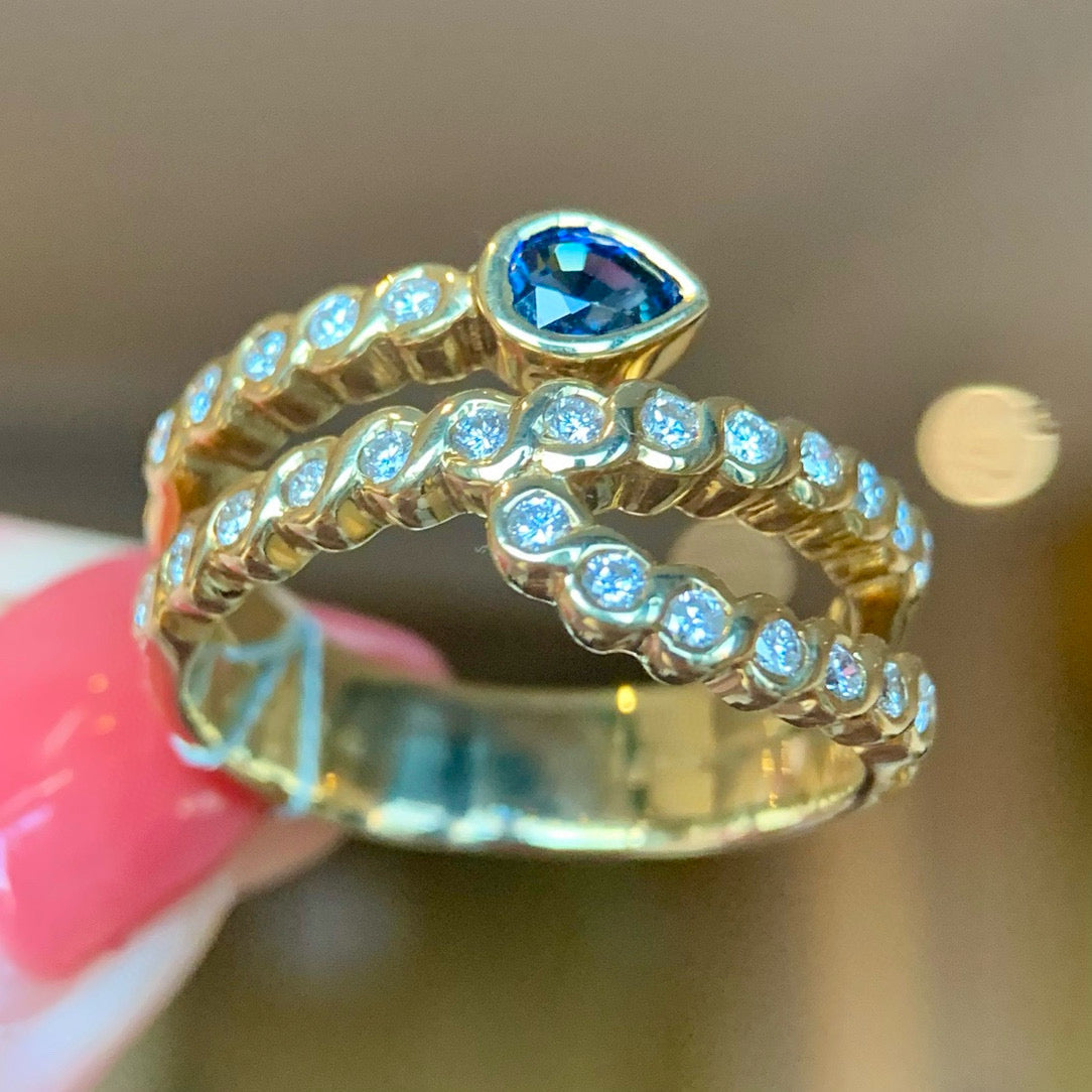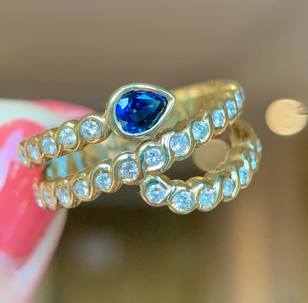 Ref:231025154 // Gold Content:14K Gold // Ring Size:7.25US // // Main Gemstone:Sapphire // Shape:Pear // Carat Weight:0.47ct // Color:Blue // Treatment:Natural // // Adjacent Gemstone 2 : Diamond // Shape:Round // Carat Weight:0.51ct // Clarity Grade:VS-SI // Color:H // Treatment:Natural // Cut Grade:G //