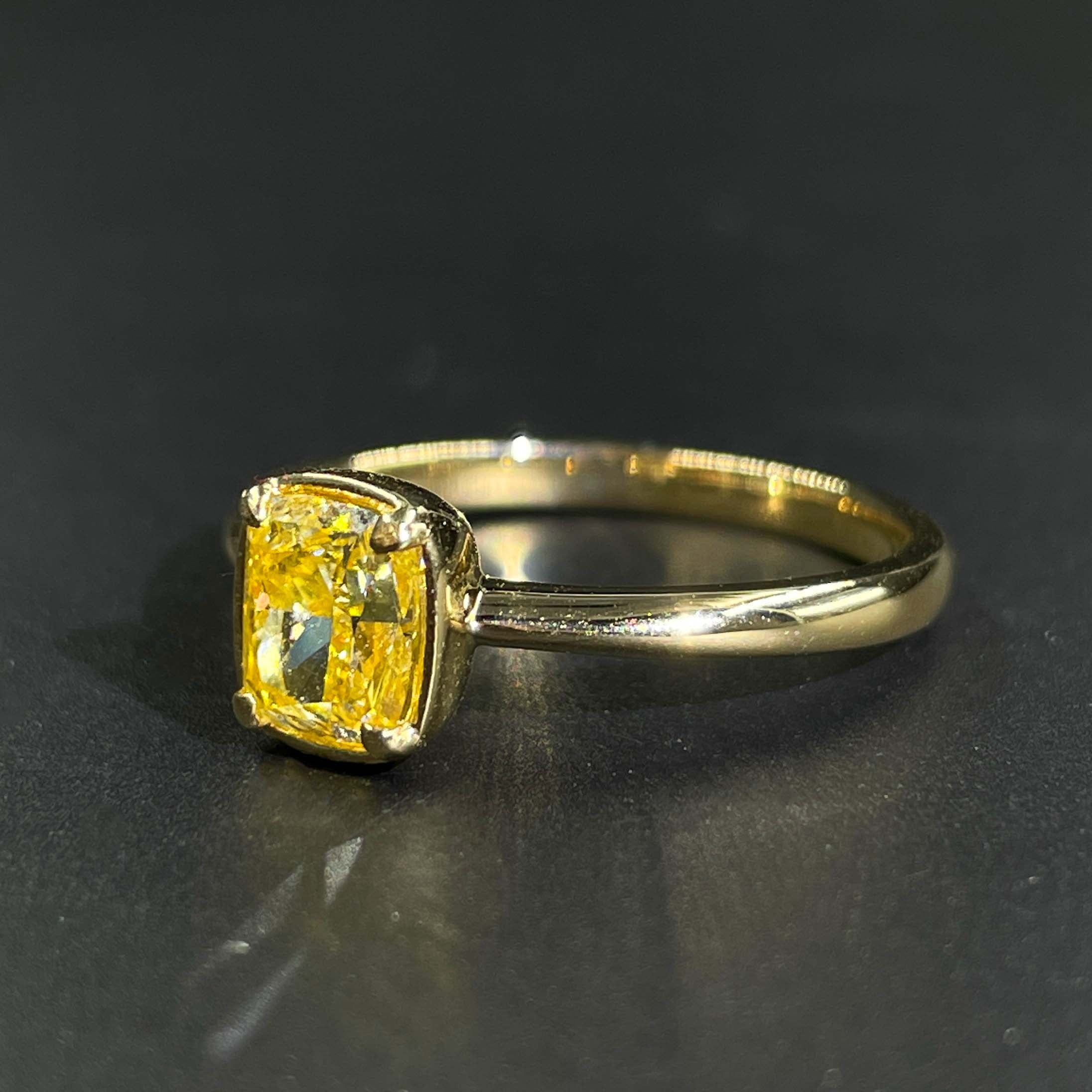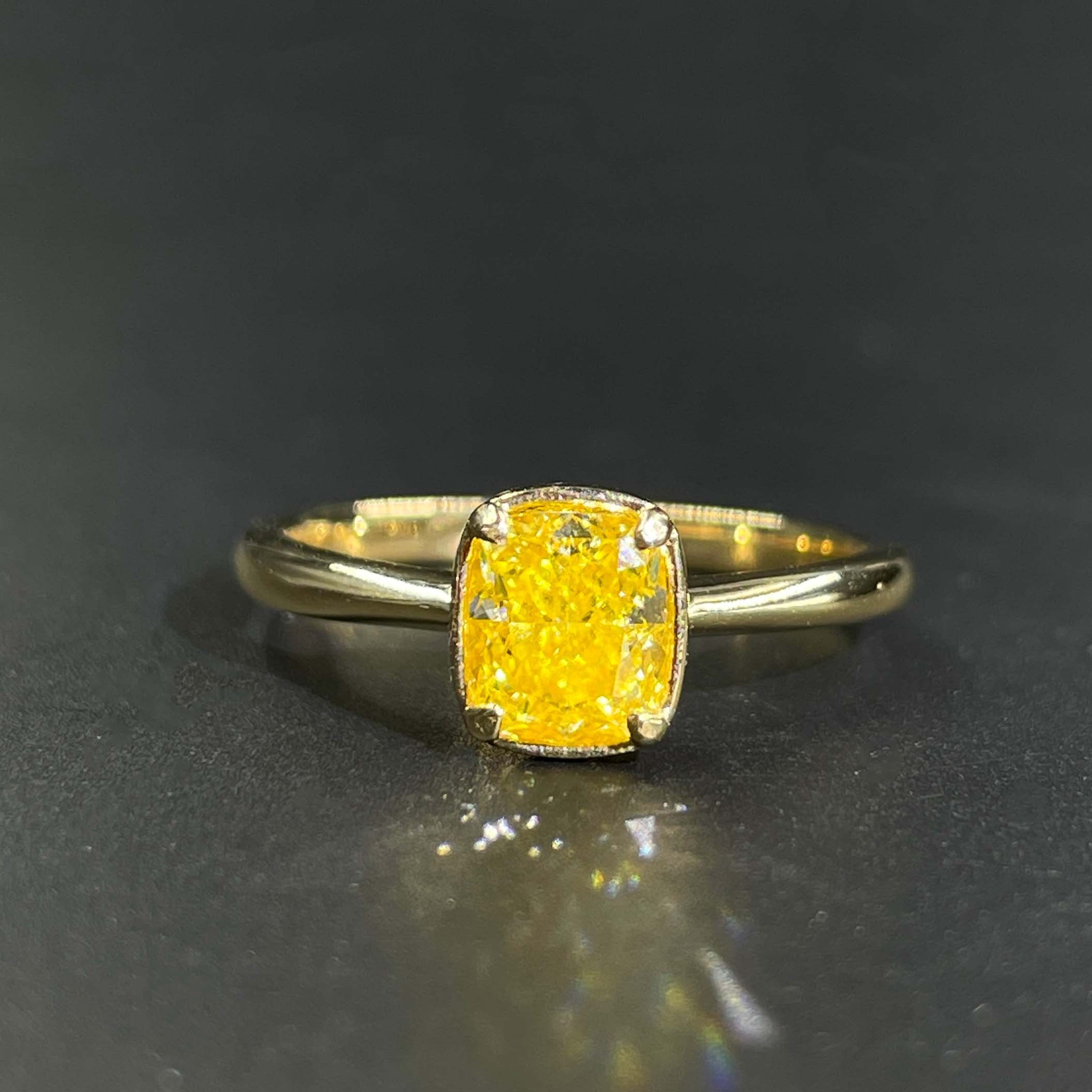 Ref:231027018 // Gold Content:14K Gold // Ring Size:7.25US // // Main Gemstone:Yellow Diamond // Shape:Cushion // Carat Weight:1.00ct // Color:Yellow // Treatment:Natural //
