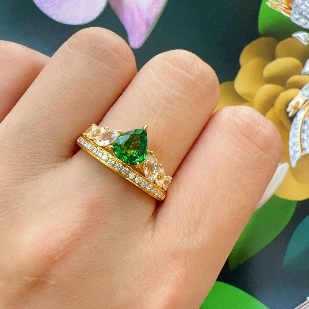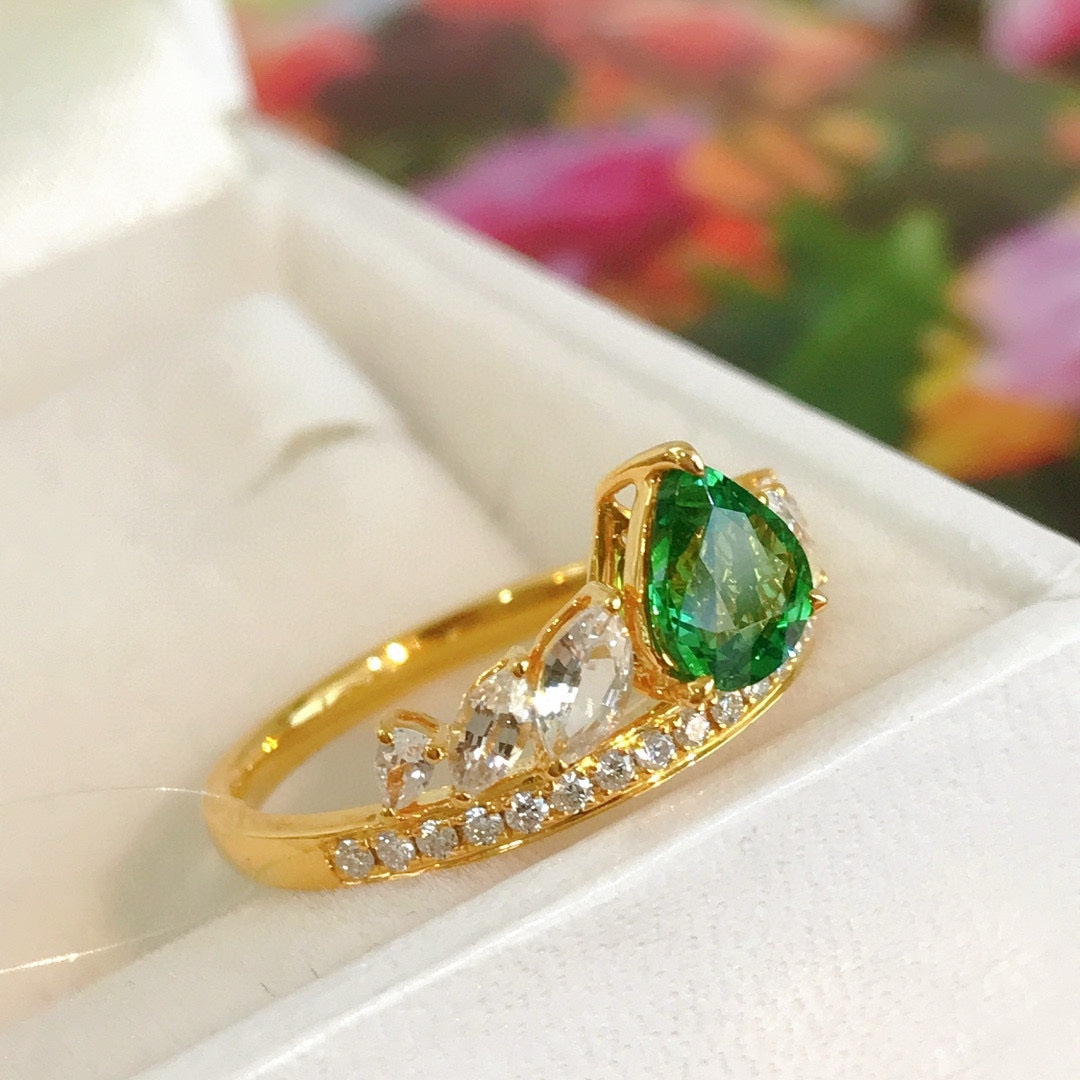 Ref:231023112 // Gold Content:14K Gold // Ring Size:7.25US // // Main Gemstone:Tsavorite // Shape:Pear // Carat Weight:0.85ct // Color:Green // Treatment:Natural // // Adjacent Gemstone 2 : Diamond // Shape:Round // Carat Weight:0.16ct // Clarity Grade:VS-SI // Color:H // Treatment:Natural // Cut Grade:G // // Adjacent Gemstone 3 : Sapphire // Shape:Marquise & Pear // Carat Weight:0.63ct // Color:White // Treatment:Natural //