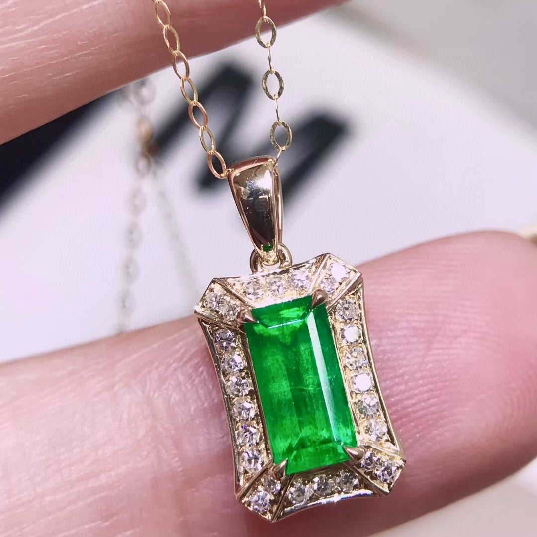 Ref:231023160 // Gold Content:14K Gold // Main Gemstone:Emerald // Shape:Rectangle // Carat Weight:0.8ct // Color:Green // Treatment:Natural // // Adjacent Gemstone 2 : Diamond // Shape:Round // Carat Weight:0.22ct // Clarity Grade:VS-SI // Color:H // Treatment:Natural // Cut Grade:G //