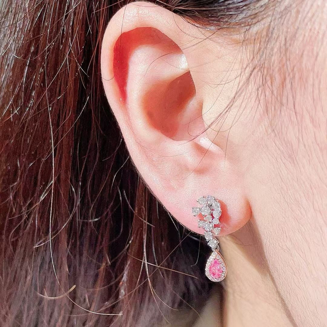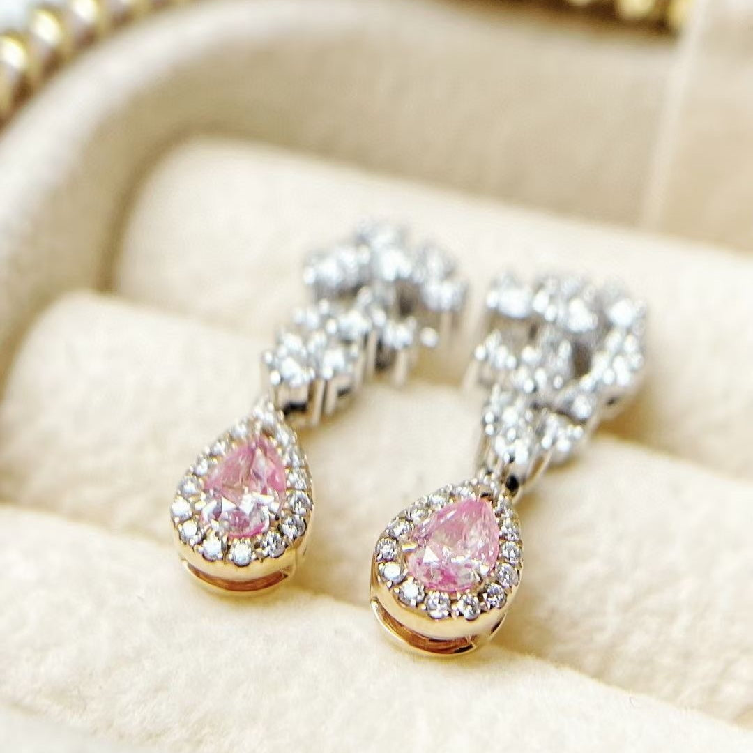 Ref:231021141 // Gold Content:14K Gold // Main Gemstone:Pink Diamond // Shape:Pear // Carat Weight:0.36ct // Color:Pink // Treatment:Natural // // Adjacent Gemstone 2 : Diamond // Shape:Round // Carat Weight:0.70ct // Clarity Grade:VS-SI // Color:H // Treatment:Natural // Cut Grade:G //