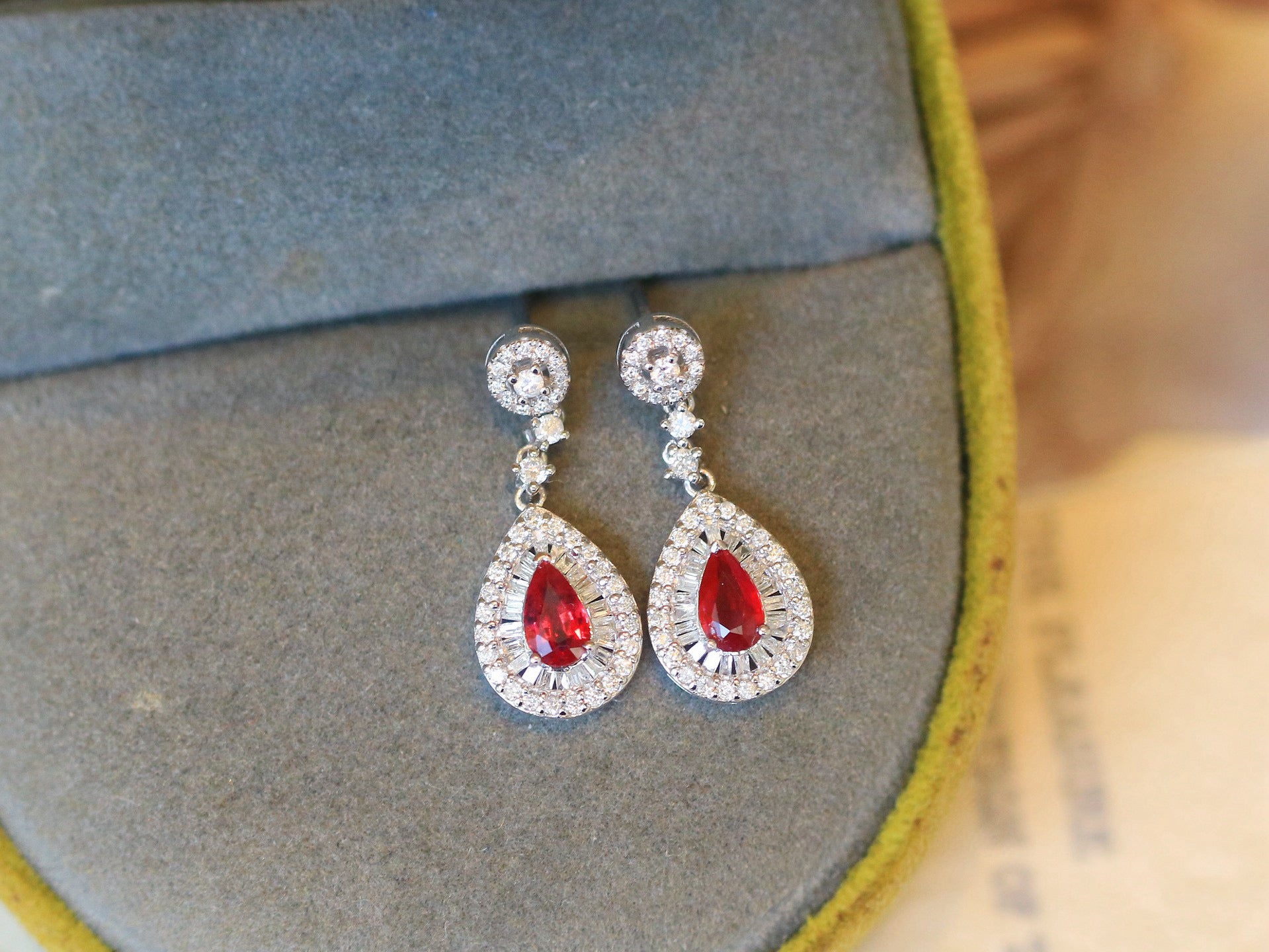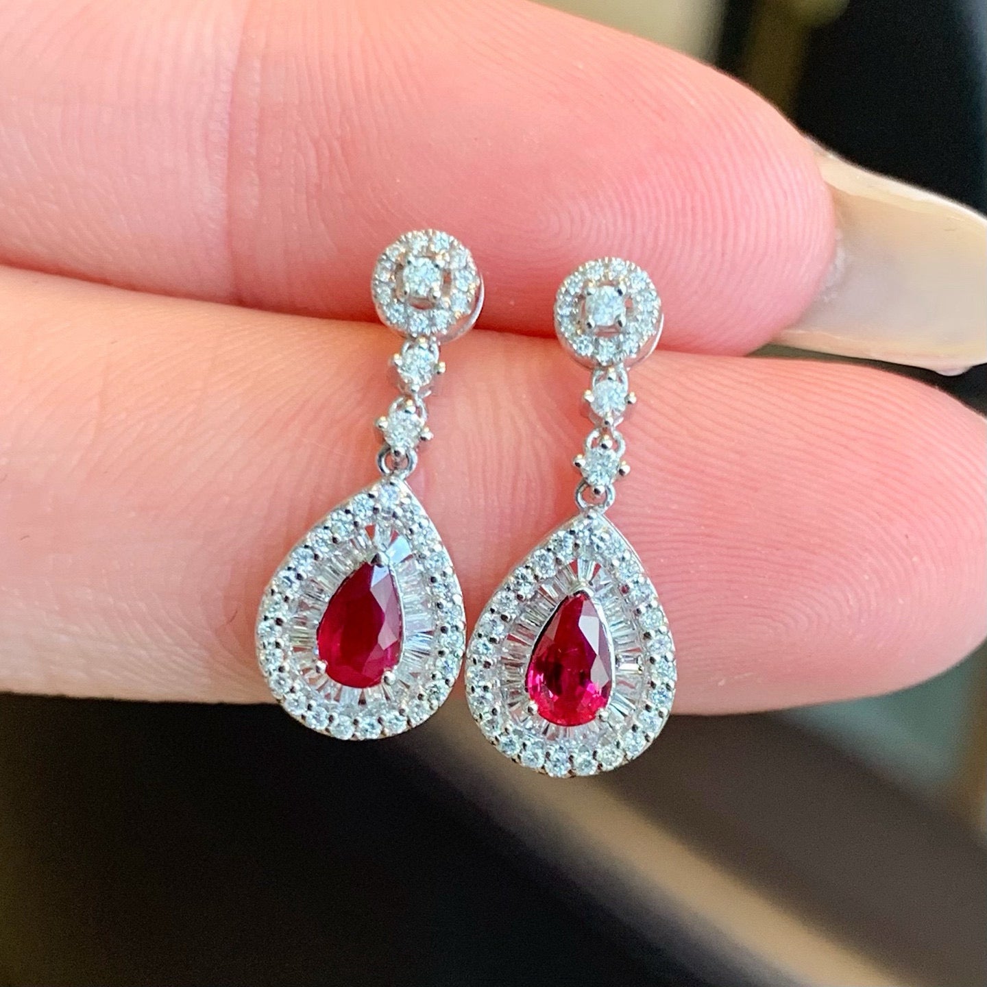 Ref:231025126 // Gold Content:14K Gold // Main Gemstone:Ruby // Shape:Pear // Carat Weight:0.5ct // Color:PigeonBlood Red // Treatment:Natural // // Adjacent Gemstone 2 : Diamond // Shape:Multiply // Carat Weight:0.56ct // Clarity Grade:VS-SI // Color:H // Treatment:Natural //