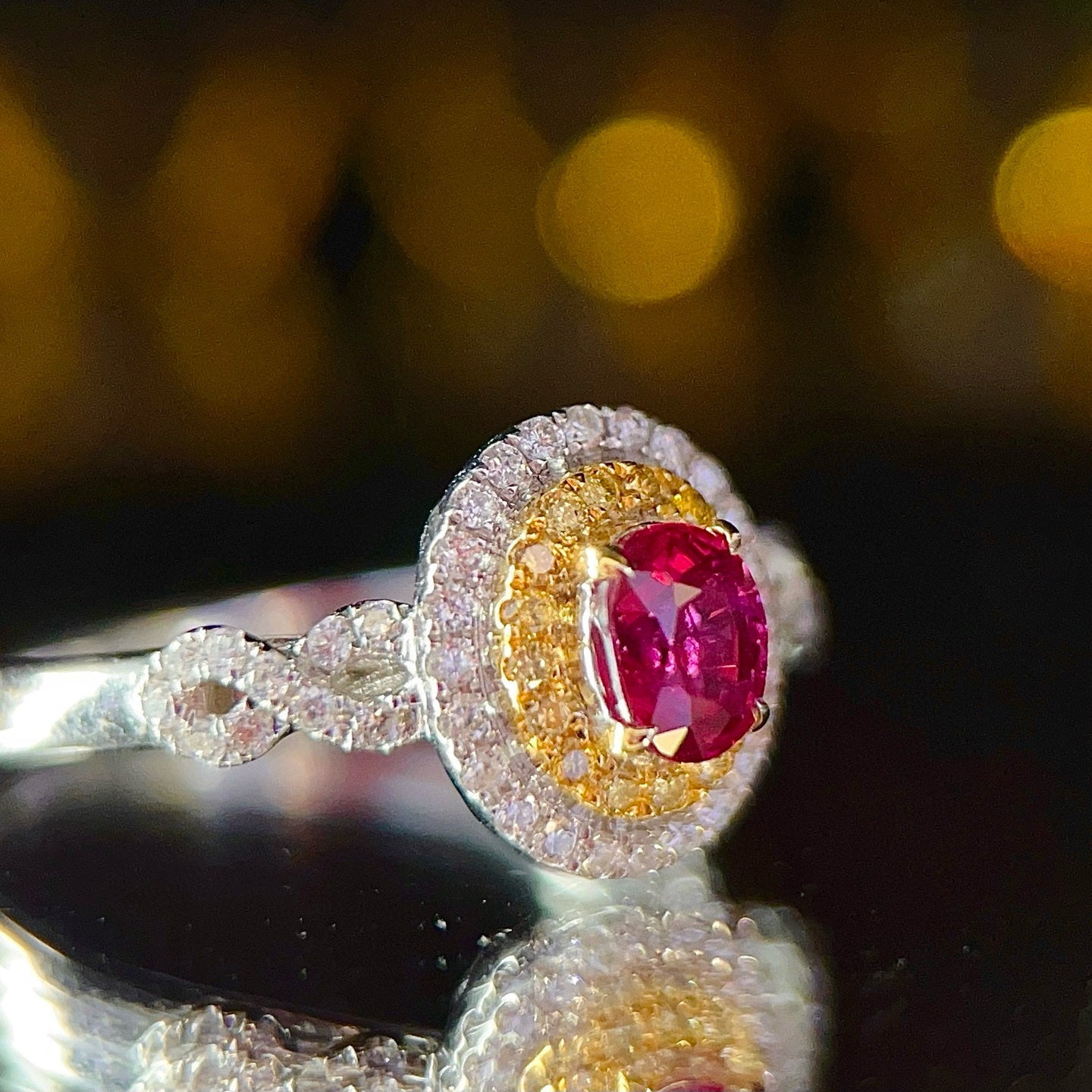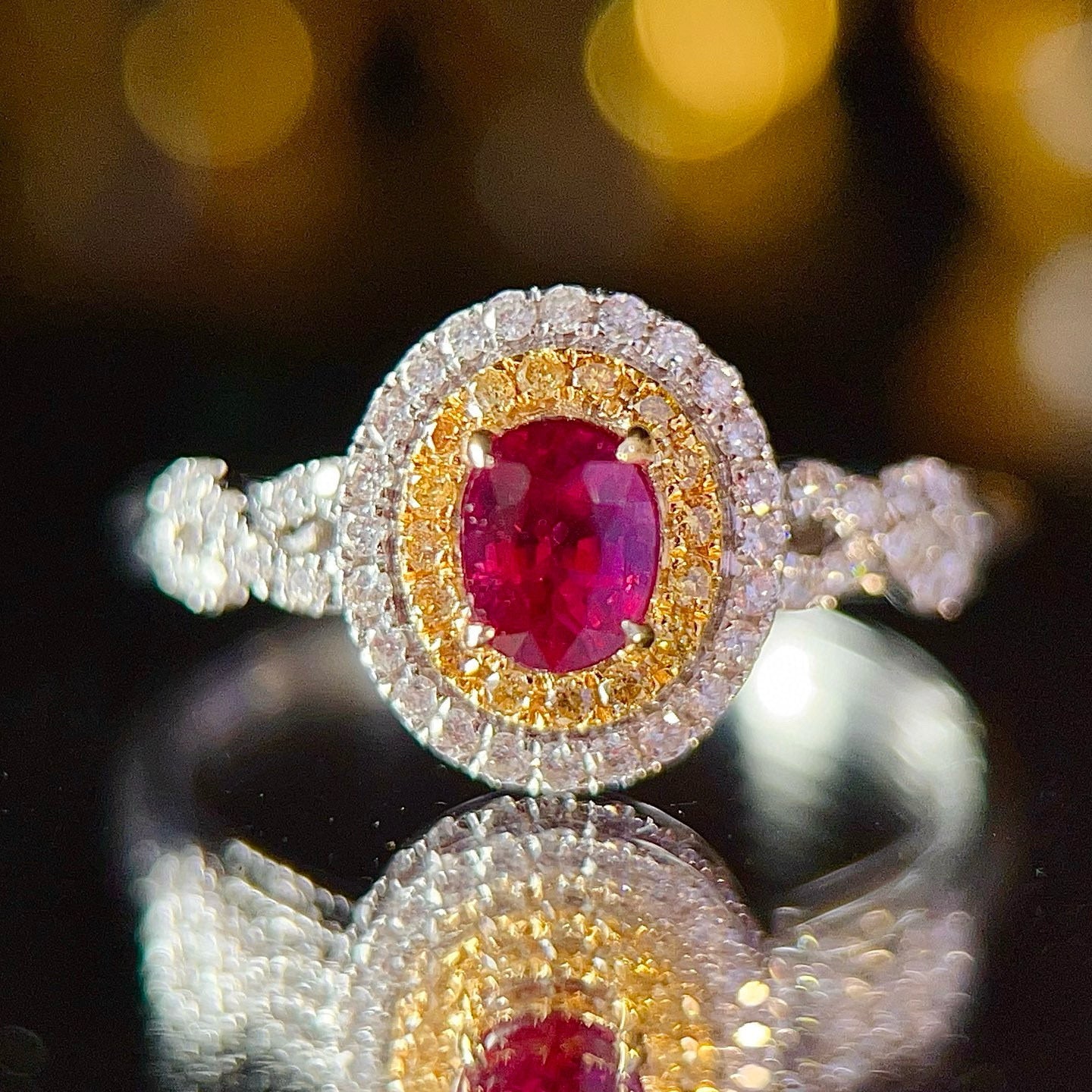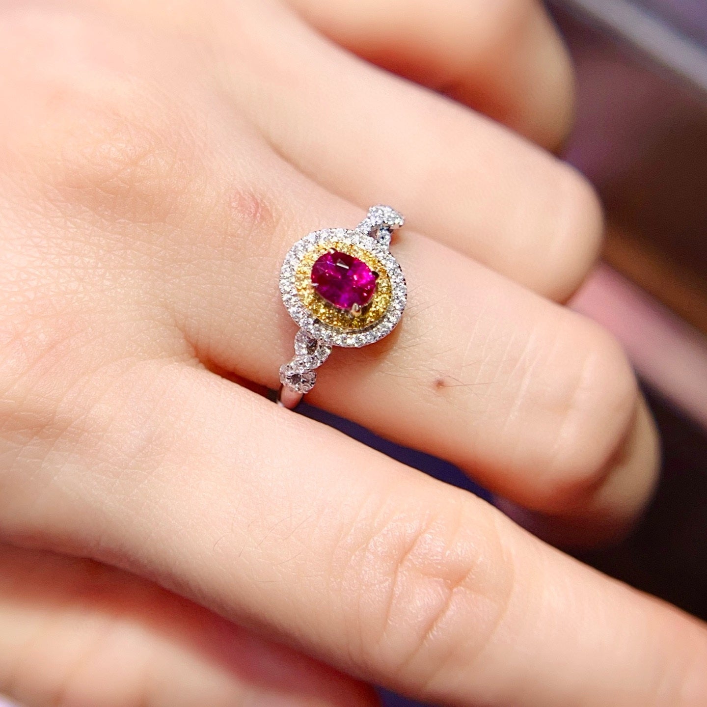 Ref:231021163 // Gold Content:14K Gold // Ring Size:7.25US // // Main Gemstone:Ruby // Shape:Oval // Carat Weight:0.73ct // Color:Red // Treatment:Natural // // Adjacent Gemstone 2 : Diamond // Shape:Round // Carat Weight:0.33ct // Clarity Grade:VS-SI // Color:H // Treatment:Natural // Cut Grade:G //
