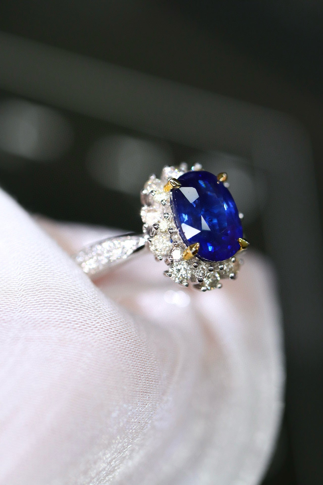 Ref:231019207 // Gold Content:14K Gold // Ring Size:7.25US // // Main Gemstone:Sapphire // Shape:Oval // Carat Weight:0.84ct // Color:Blue // Treatment:Natural // // Adjacent Gemstone 2 : Diamond // Shape:Round // Carat Weight:0.23ct // Clarity Grade:VS-SI // Color:H // Treatment:Natural // Cut Grade:G //