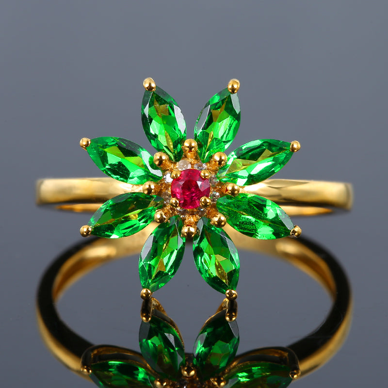 Ref:231021032 // Gold Content:14K Gold // Ring Size:7.25US // // Main Gemstone:Tsavorite // Shape:Marquise // Carat Weight:0.99ct // Color:Green // Treatment:Natural // // Adjacent Gemstone 2 : Ruby // Number of stones:1 // Shape:Round // Carat Weight:0.08ct // Color:Red // Treatment:Natural // Cut Grade:G // // Adjacent Gemstone 3 : Diamond // Number of stones:8 // Shape:Round // Carat Weight:0.02ct // Clarity Grade:VS-SI // Color:H // Treatment:Natural // Cut Grade:G //