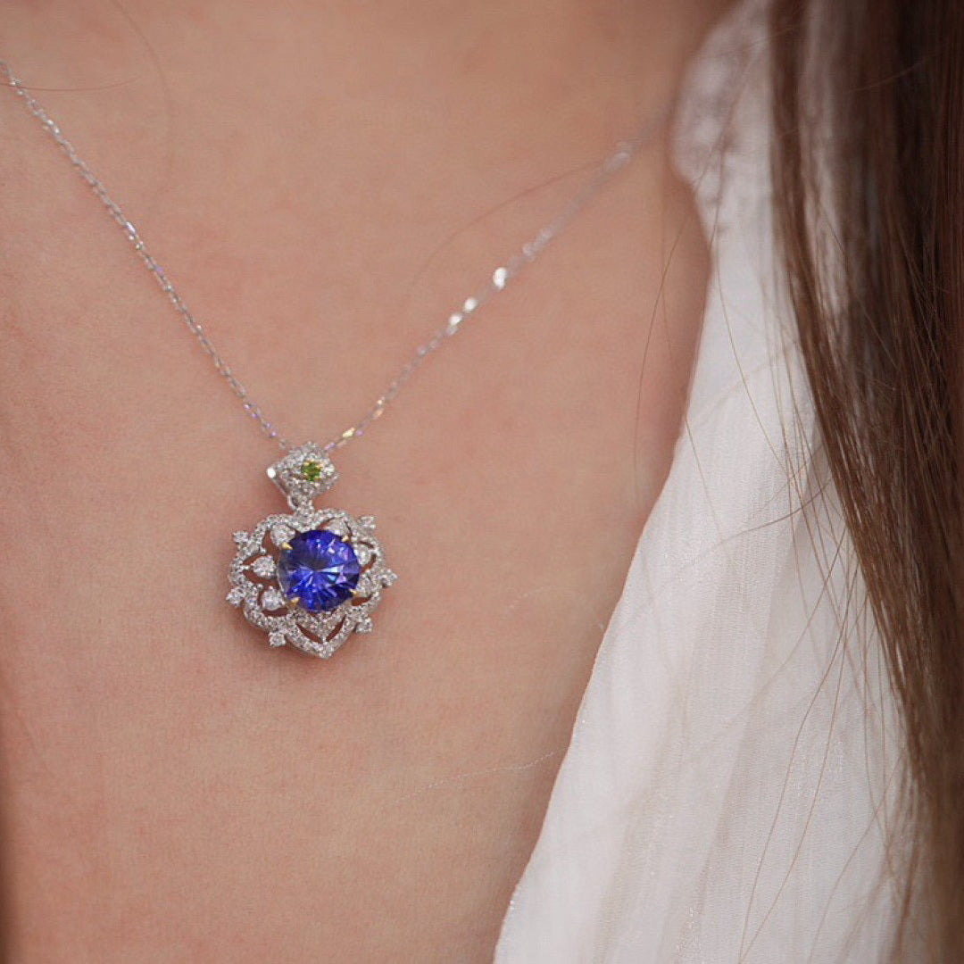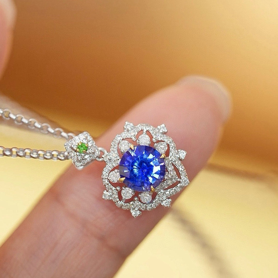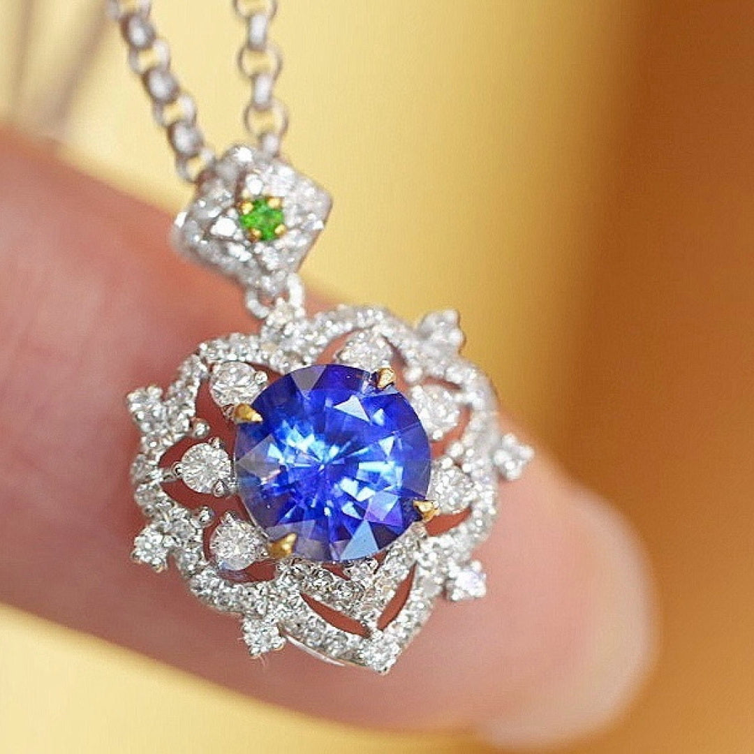 Ref:231023191 // Gold Content:14K Gold // Main Gemstone:Sapphire // Shape:Round // Carat Weight:1.08ct // Color:Blue // Treatment:Natural // Cut Grade:G // // Adjacent Gemstone 2 : Diamond // Shape:Round // Clarity Grade:VS-SI // Color:H // Treatment:Natural // Cut Grade:G //