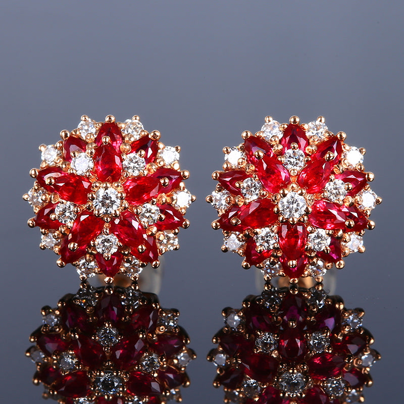 14K GOLD 1.1 CT NATURAL RUBY & DIAMOND EARRINGS