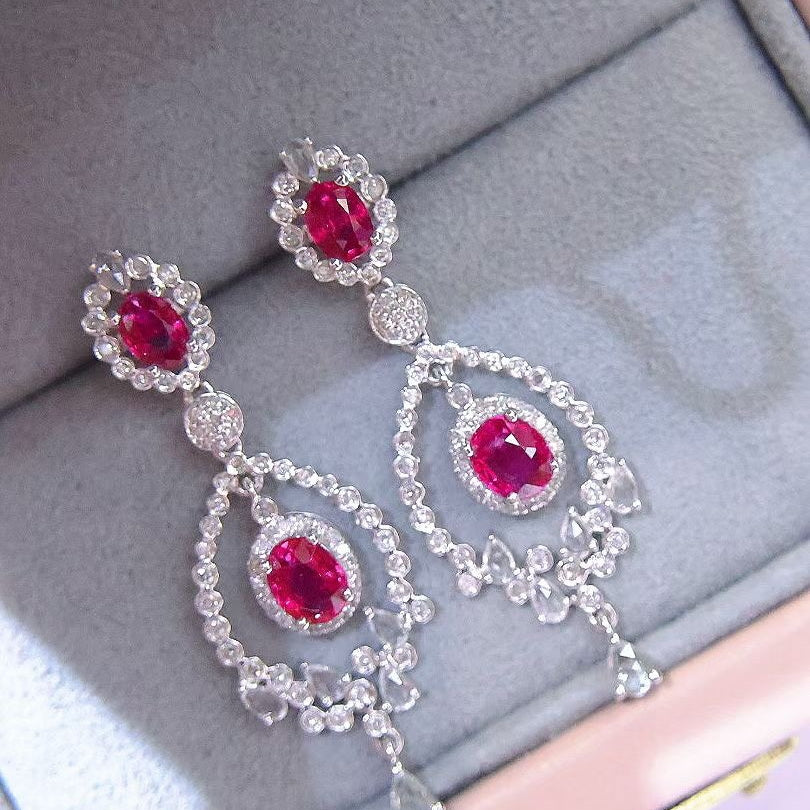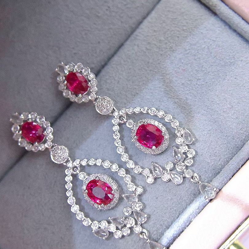 14K GOLD 1.1 CT NATURAL RUBY & DIAMOND & SAPPHIRE EARRINGS
