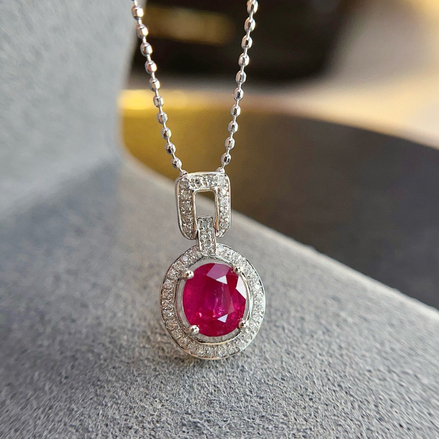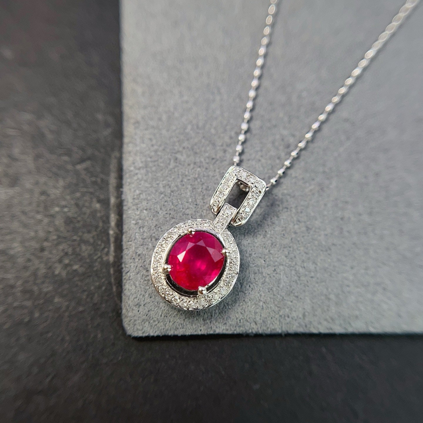 Ref:231021224 // Gold Content:14K Gold // Main Gemstone:Ruby // Shape:Oval // Carat Weight:1.10ct // Color:Red // Treatment:Natural // // Adjacent Gemstone 2 : Diamond // Number of stones:44 // Shape:Round // Clarity Grade:VS-SI // Color:H // Treatment:Natural // Cut Grade:G //