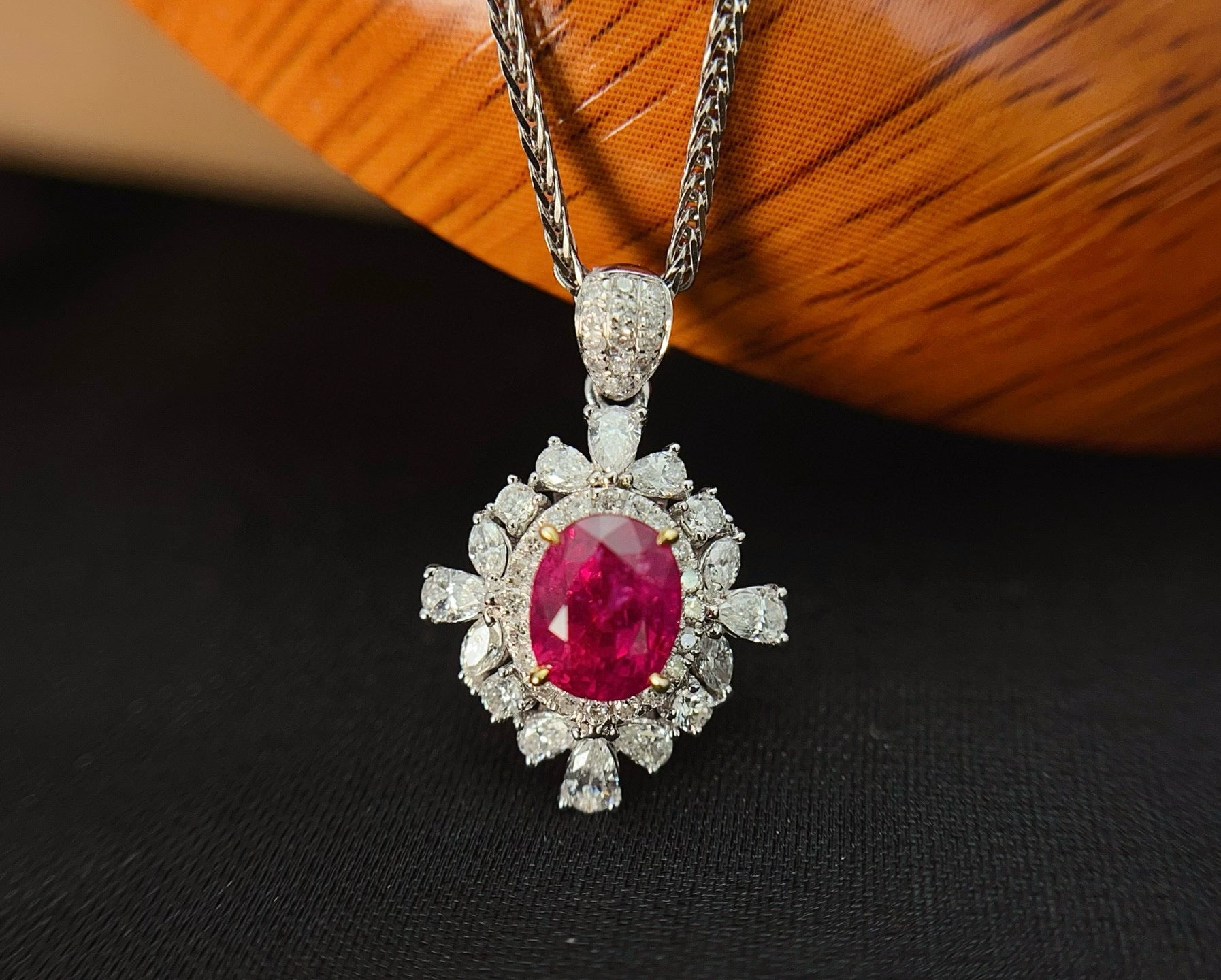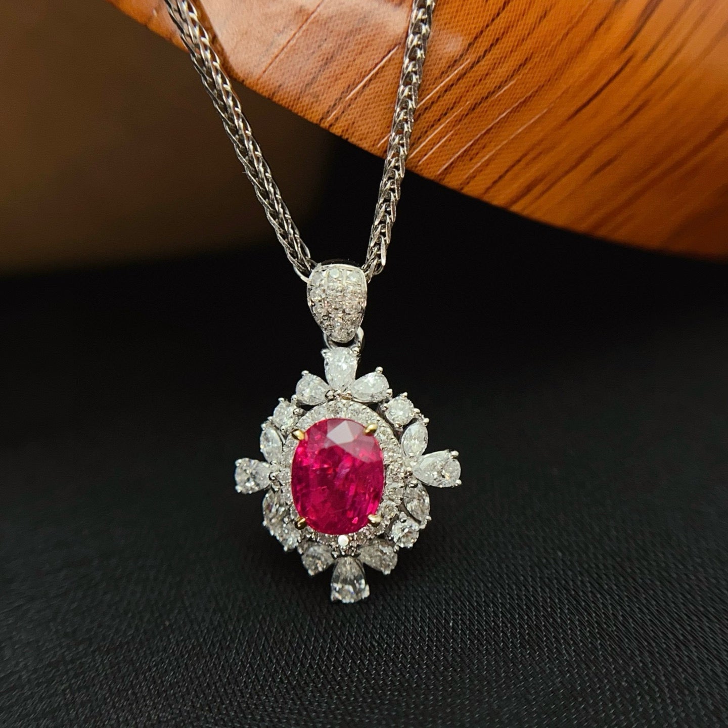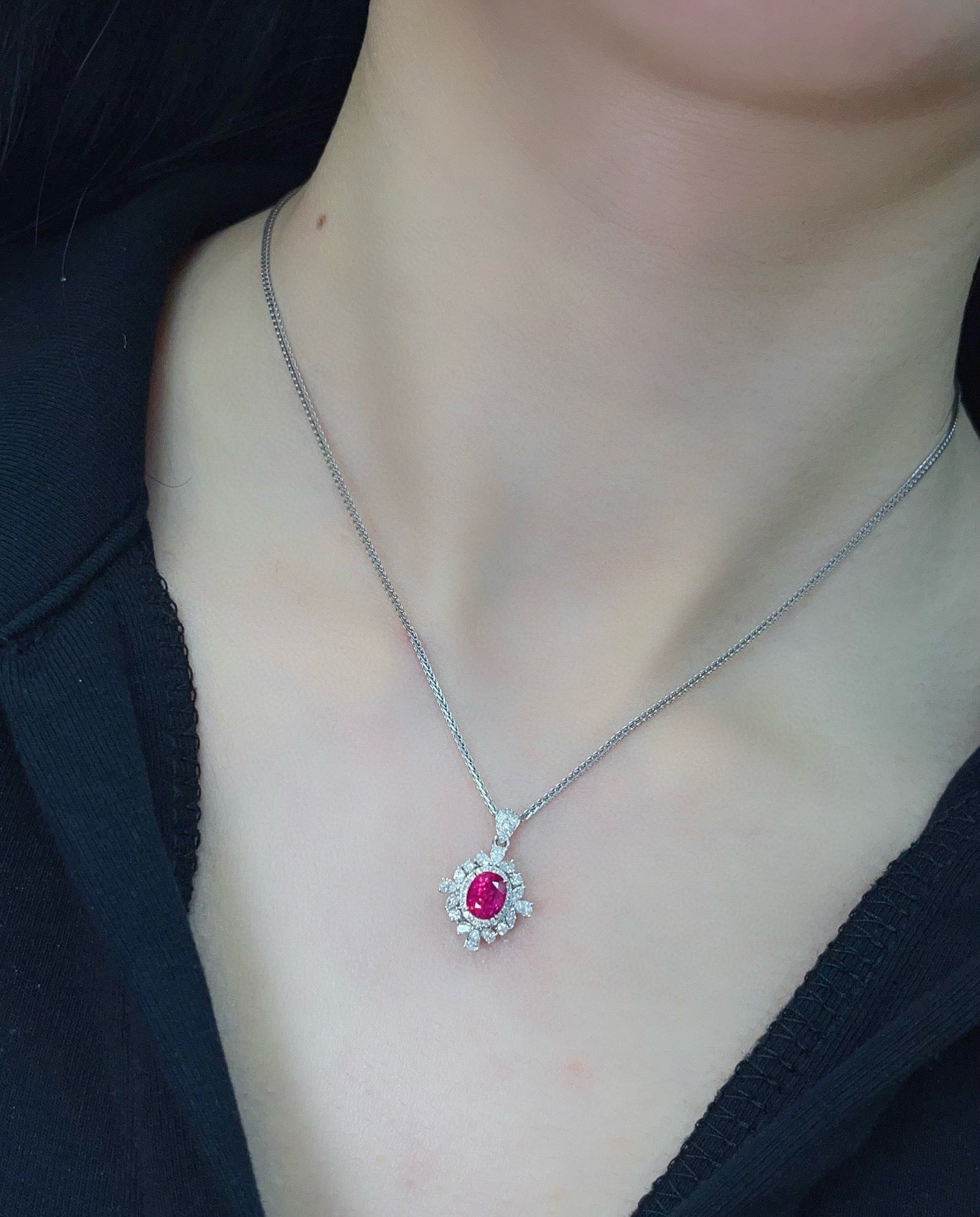 Ref:231027218 // Gold Content:14K Gold // Main Gemstone:Ruby // Shape:Oval // Carat Weight:1.10ct // Color:Red // Treatment:Natural // // Adjacent Gemstone 2 : Diamond // Number of stones:53 // Shape:Multiply // Clarity Grade:VS-SI // Color:H // Treatment:Natural //
