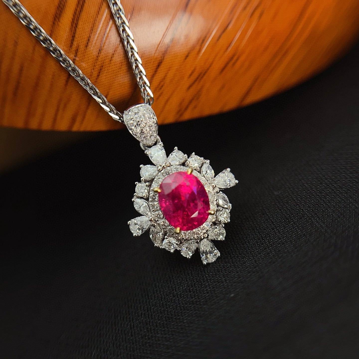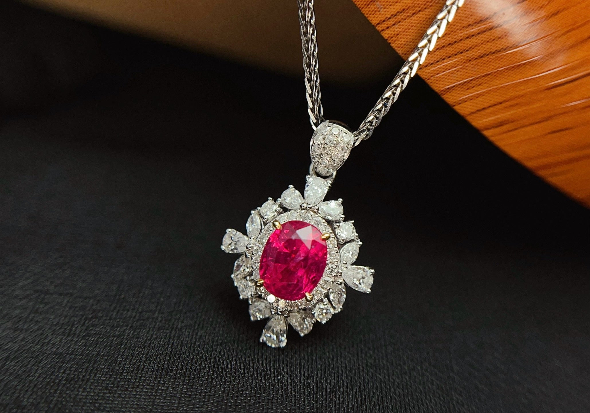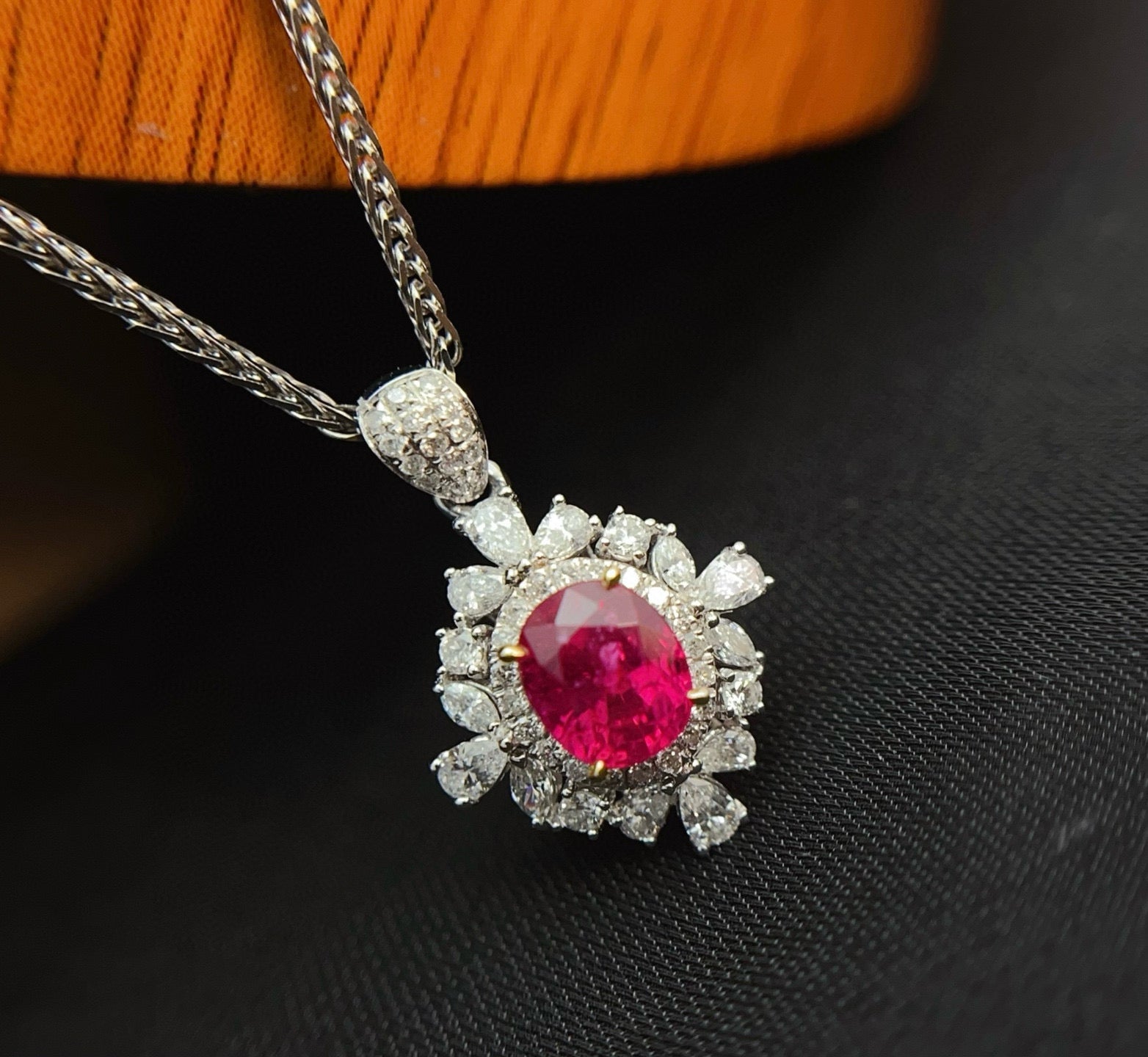 Ref:231027218 // Gold Content:14K Gold // Main Gemstone:Ruby // Shape:Oval // Carat Weight:1.10ct // Color:Red // Treatment:Natural // // Adjacent Gemstone 2 : Diamond // Number of stones:53 // Shape:Multiply // Clarity Grade:VS-SI // Color:H // Treatment:Natural //