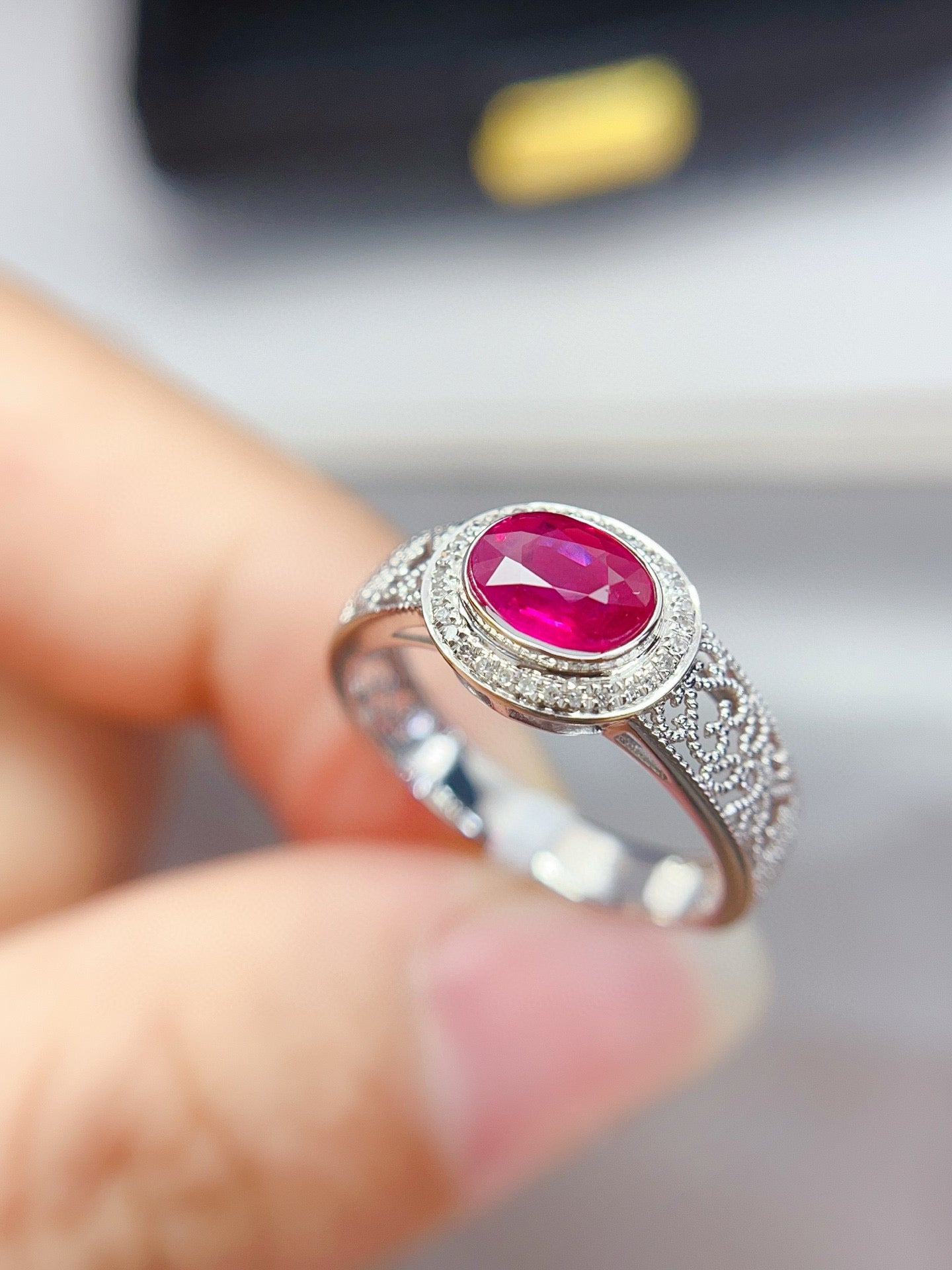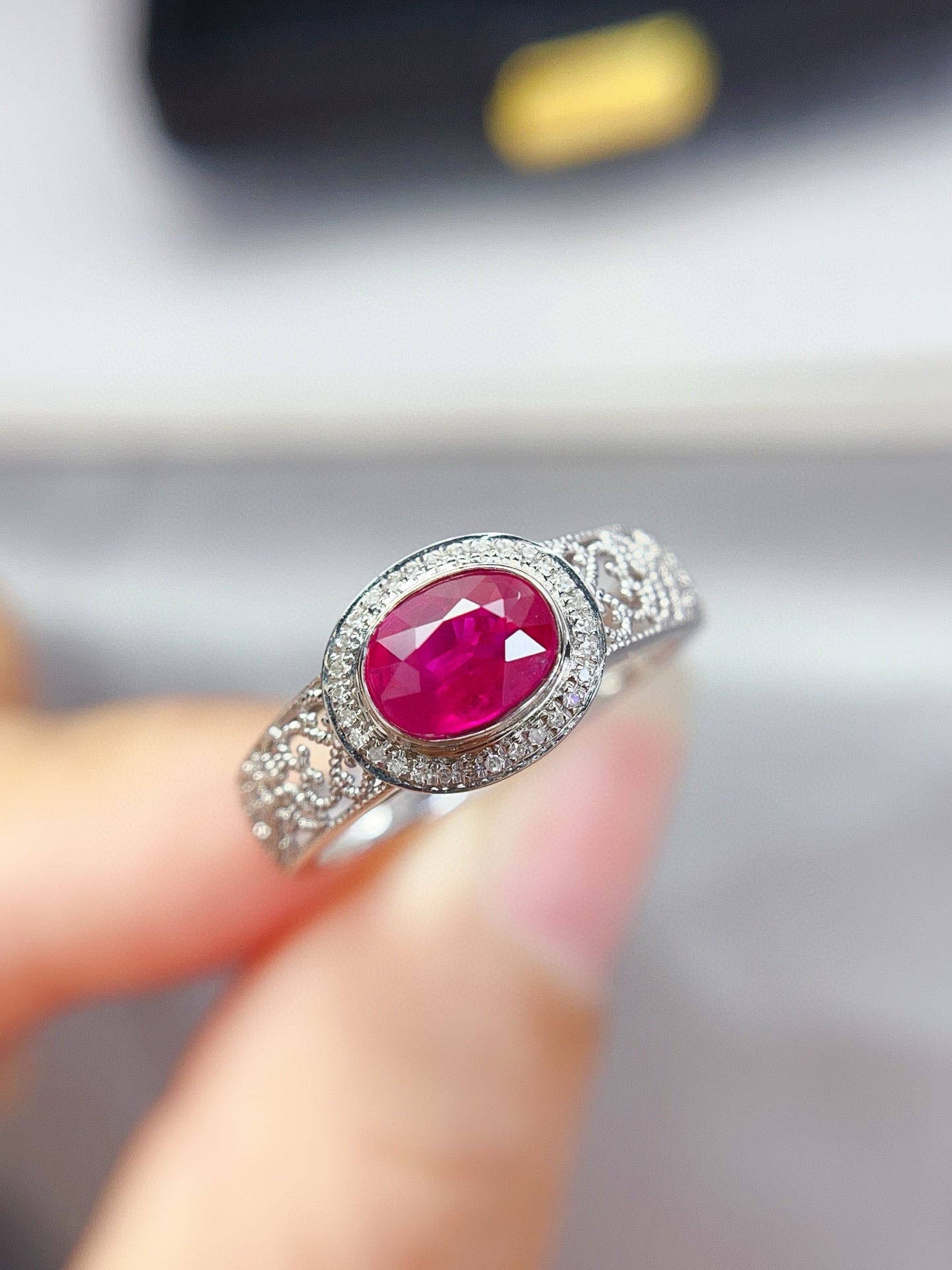 Ref:231027186 // Gold Content:14K Gold // Ring Size:7.25US // // Main Gemstone:Ruby // Shape:Oval // Carat Weight:1.10ct // Color:Red // Treatment:Natural // // Adjacent Gemstone 2 : Diamond // Number of stones:30 // Shape:Round // Clarity Grade:VS-SI // Color:H // Treatment:Natural // Cut Grade:G //