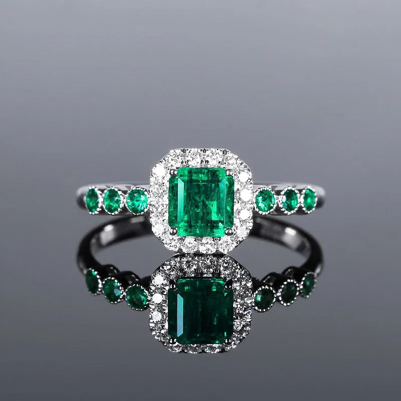 Ref:230939145 // gold content:14k gold // ring size:7. 25us // // main gemstone:emerald // shape:multiply // carat weight:0. 95ct // color:green // treatment:natural // // adjacent gemstone 2 : diamond // number of stones:16 // shape:round // carat weight:0. 16ct // clarity grade:vs-si // color:h // treatment:natural // cut grade:g //