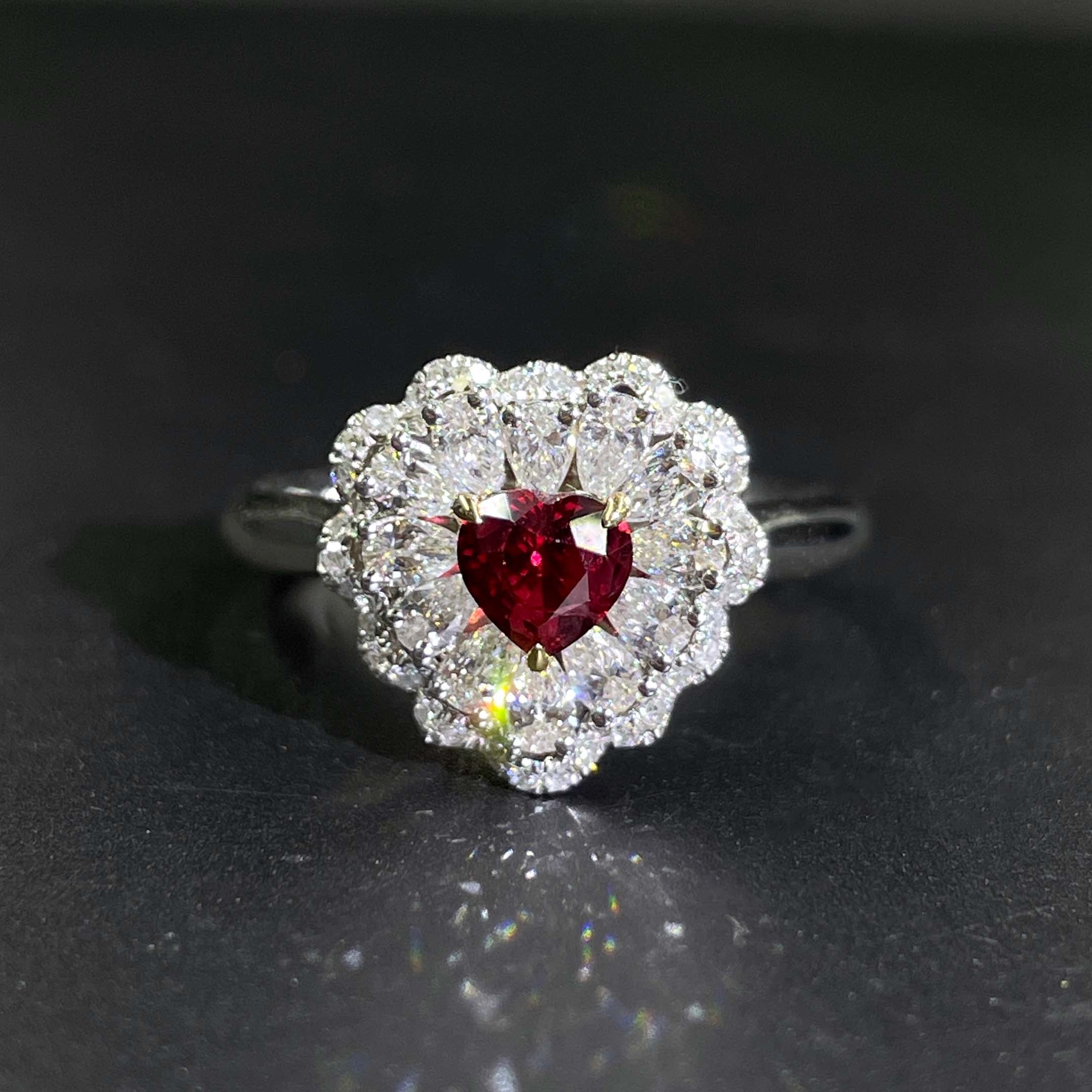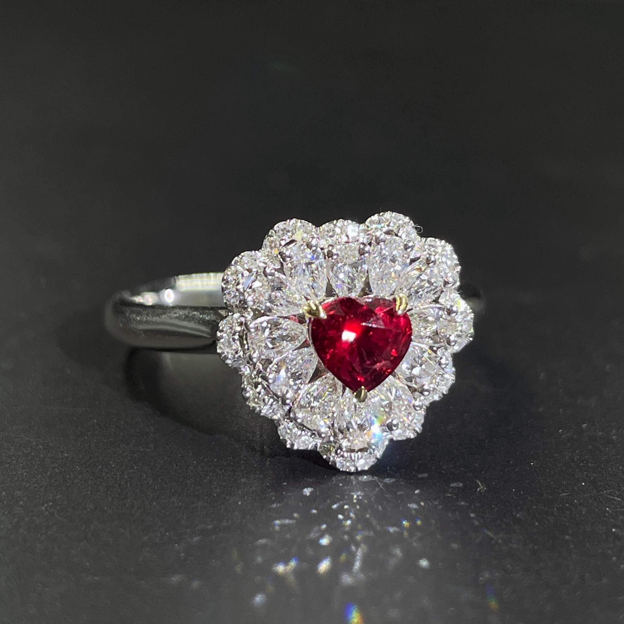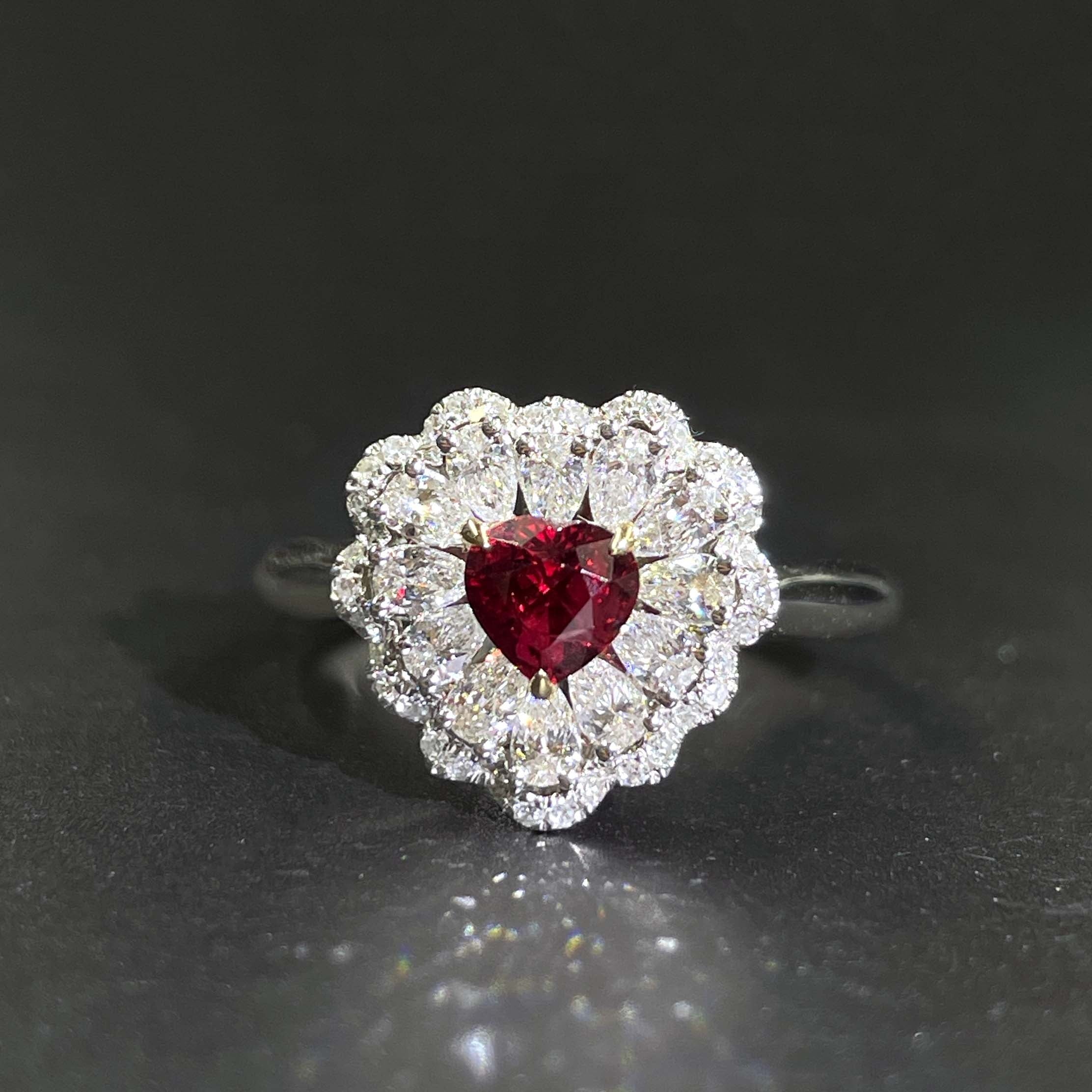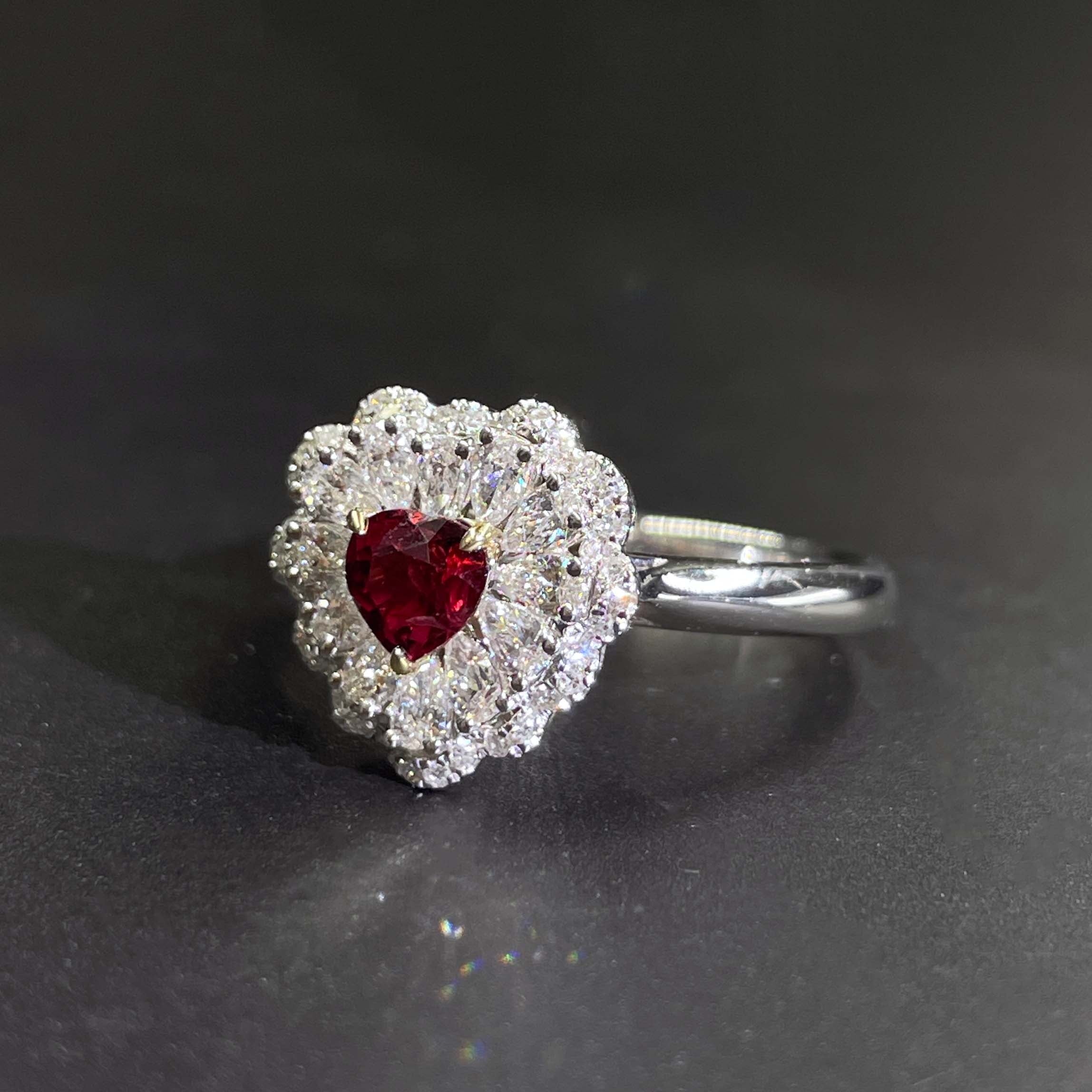 Ref:231027037 // Gold Content:14K Gold // Ring Size:7.25US // // Main Gemstone:Ruby // Shape:Heart // Carat Weight:0.49ct // Color:PigeonBlood Red // Treatment:Natural // // Adjacent Gemstone 2 : Diamond // Number of stones:58 // Shape:Multiply // Carat Weight:0.62ct // Clarity Grade:VS-SI // Color:H // Treatment:Natural //