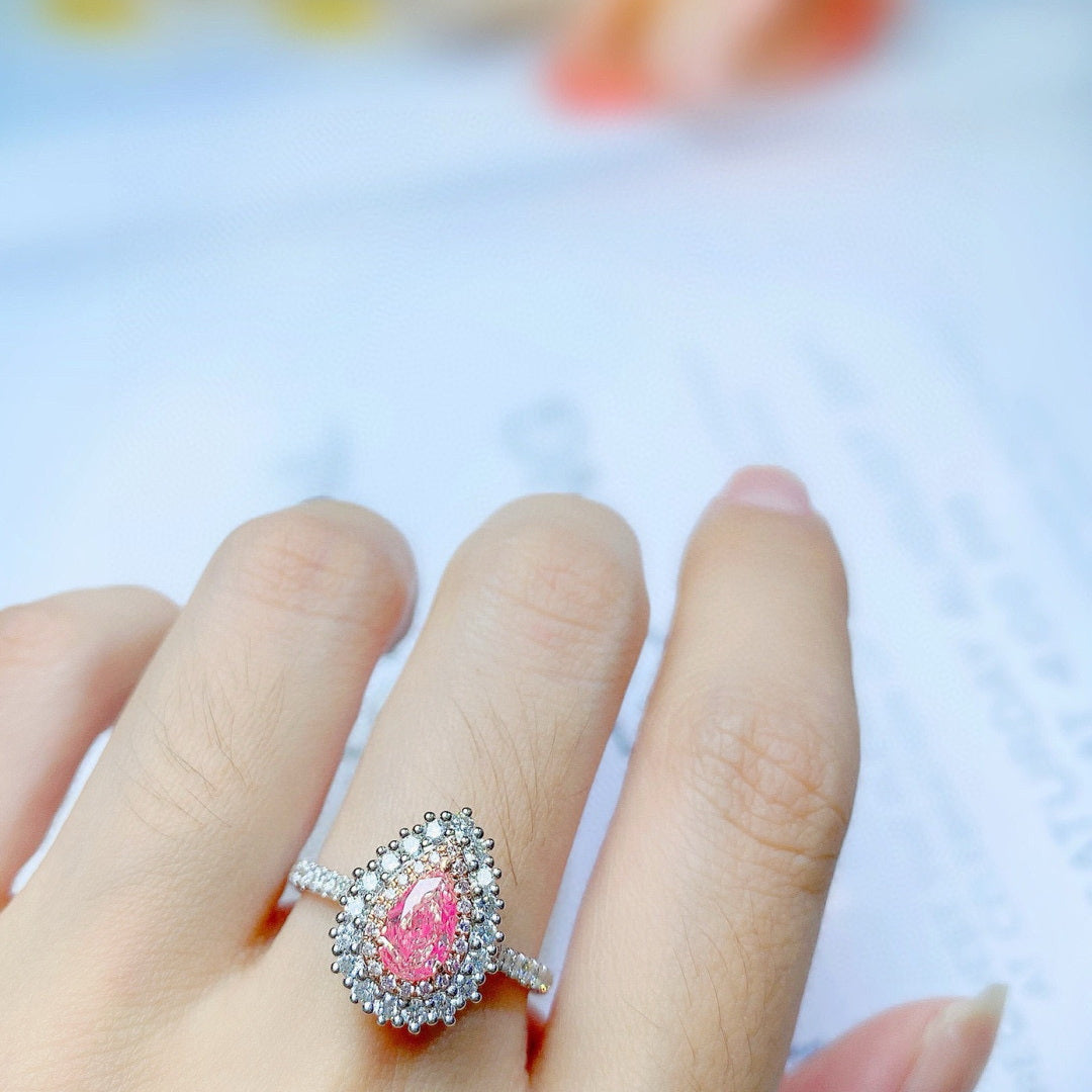 Ref:231021259 // Gold Content:14K Gold // Ring Size:7.25US // // Main Gemstone:Pink Diamond // Shape:Pear // Carat Weight:0.60ct // Color:Pink // Treatment:Natural // // Adjacent Gemstone 2 : Diamond // Shape:Round // Carat Weight:0.52ct // Clarity Grade:VS-SI // Color:H // Treatment:Natural // Cut Grade:G //