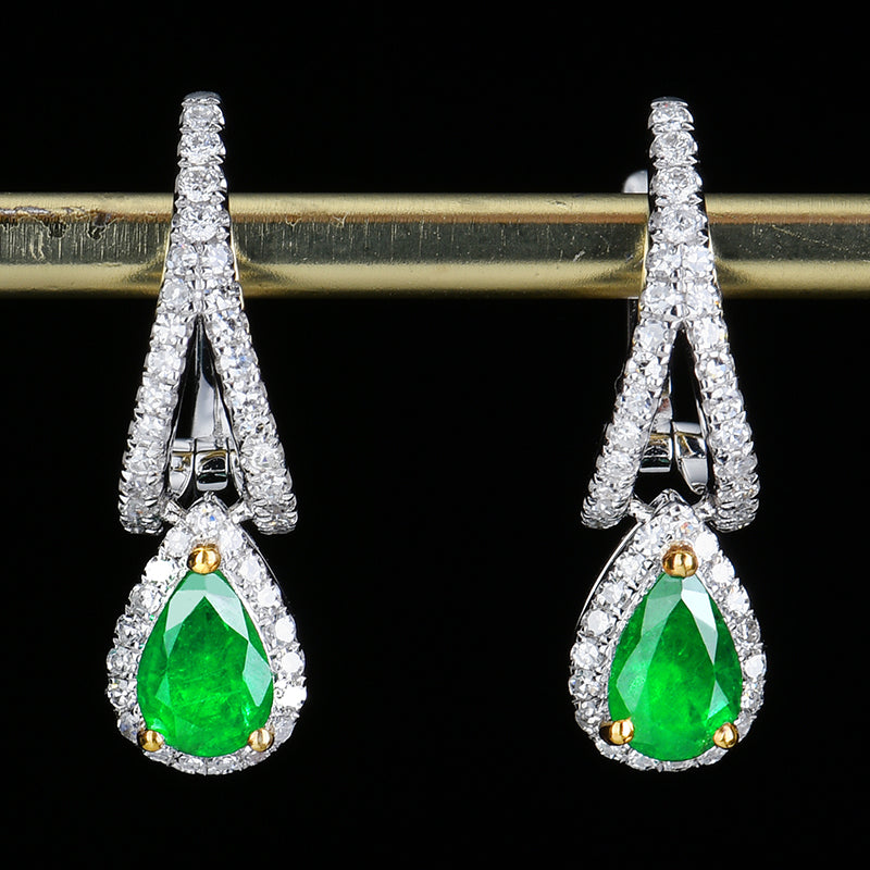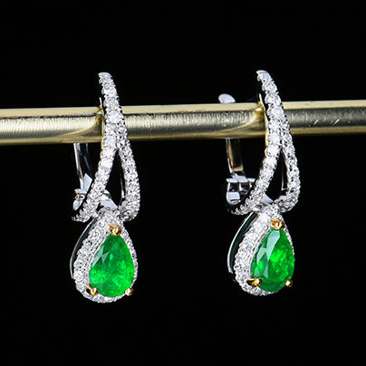 Ref:231021022 // Gold Content:14K Gold // Main Gemstone:Emerald // Shape:Pear // Carat Weight:0.7ct // Color:Vivid Green // Treatment:Natural // // Adjacent Gemstone 2 : Diamond // Number of stones:98 // Shape:Round // Carat Weight:0.42ct // Clarity Grade:VS-SI // Color:H // Treatment:Natural // Cut Grade:G //
