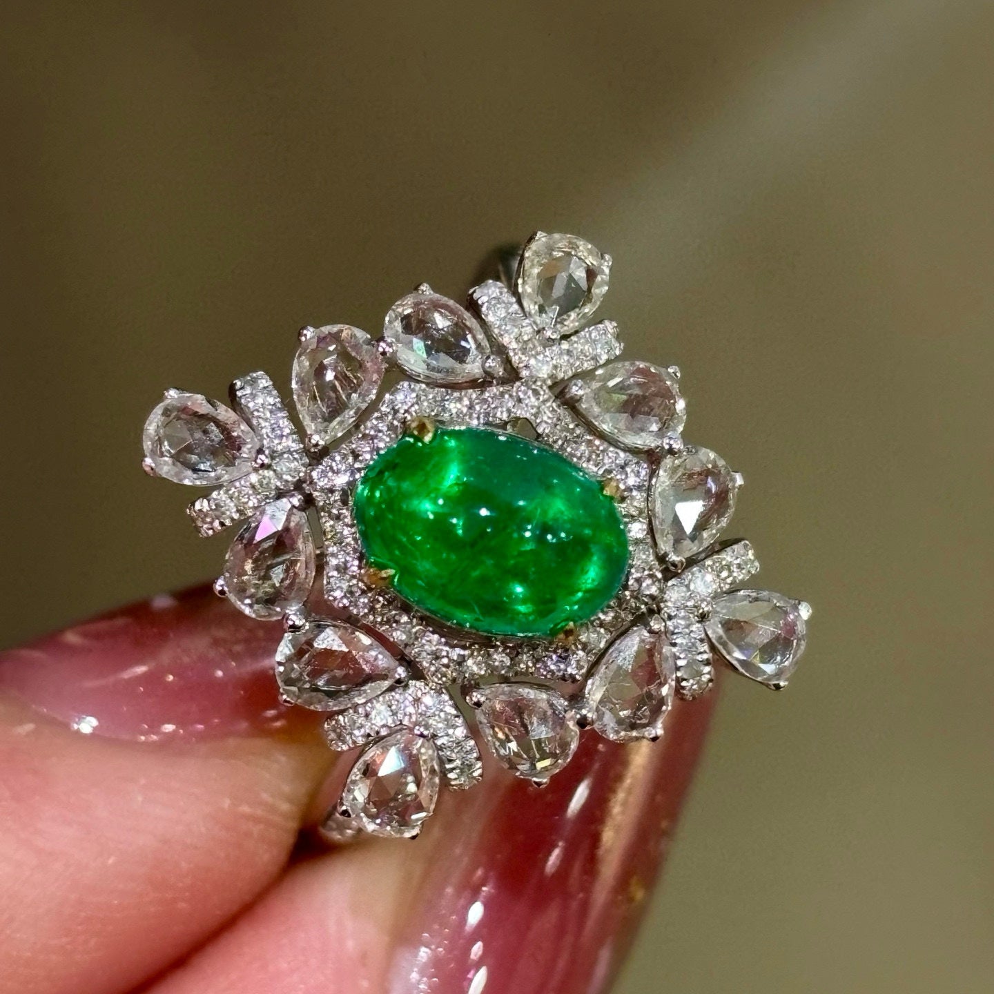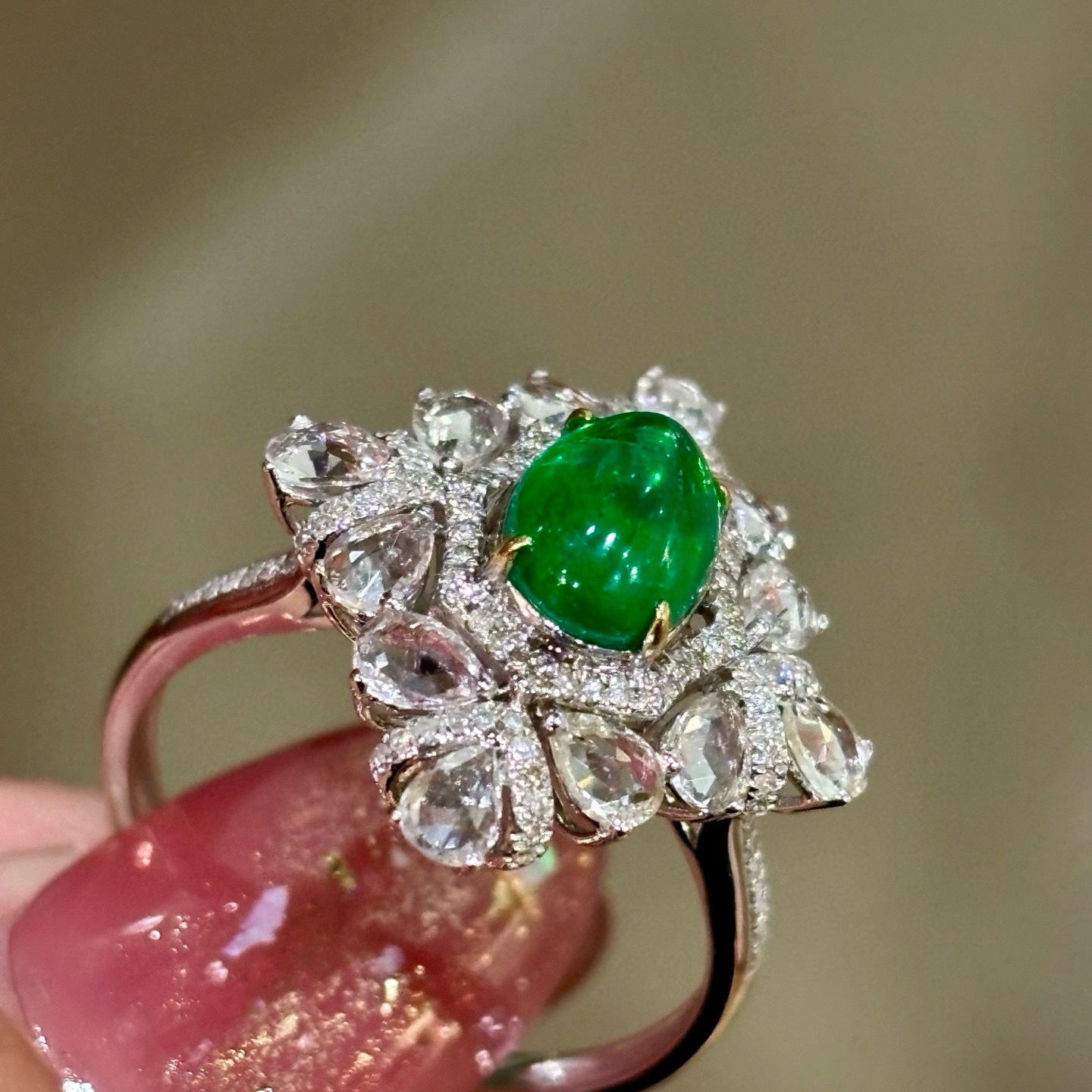 Ref:231025248 // Gold Content:14K Gold // Ring Size:7.25US // // Main Gemstone:Emerald // Shape:Oval // Carat Weight:1.16ct // Color:Vivid Green // Treatment:Natural // // Adjacent Gemstone 2 : Diamond // Shape:Round // Clarity Grade:VS-SI // Color:H // Treatment:Natural // Cut Grade:G // // Adjacent Gemstone 3 : Sapphire // Shape:Pear // Color:White // Treatment:Natural //