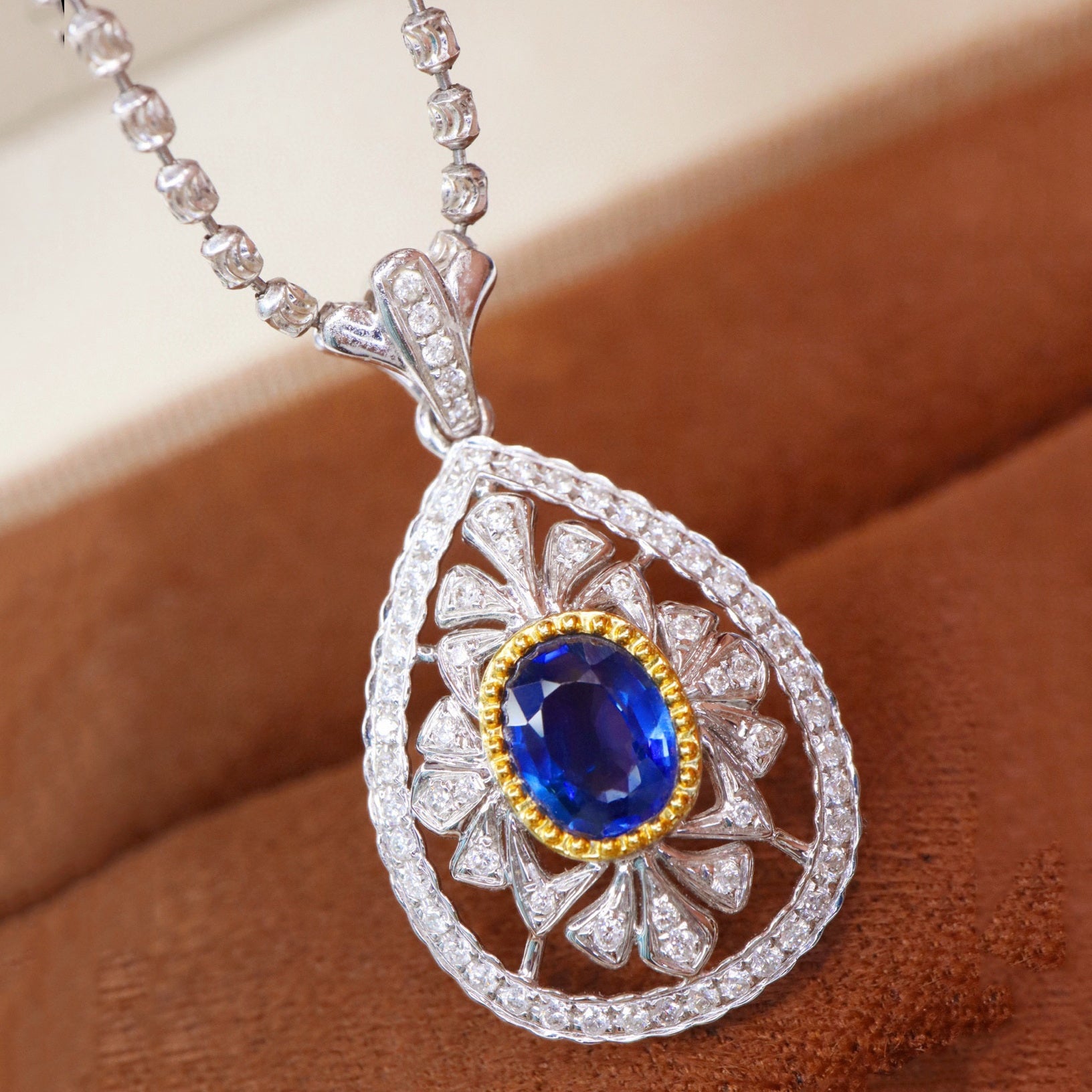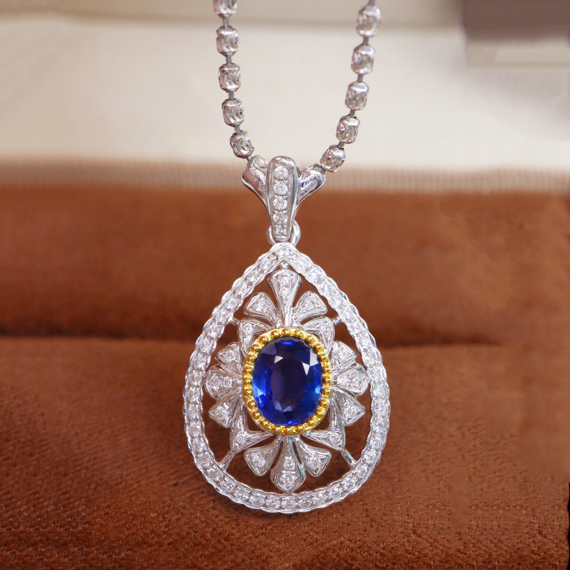 Ref:231021113 // Gold Content:14K Gold // Main Gemstone:Sapphire // Shape:Oval // Carat Weight:0.86ct // Color:Royal blue // Treatment:Natural // // Adjacent Gemstone 2 : Diamond // Shape:Round // Carat Weight:0.31ct // Clarity Grade:VS-SI // Color:H // Treatment:Natural // Cut Grade:G //