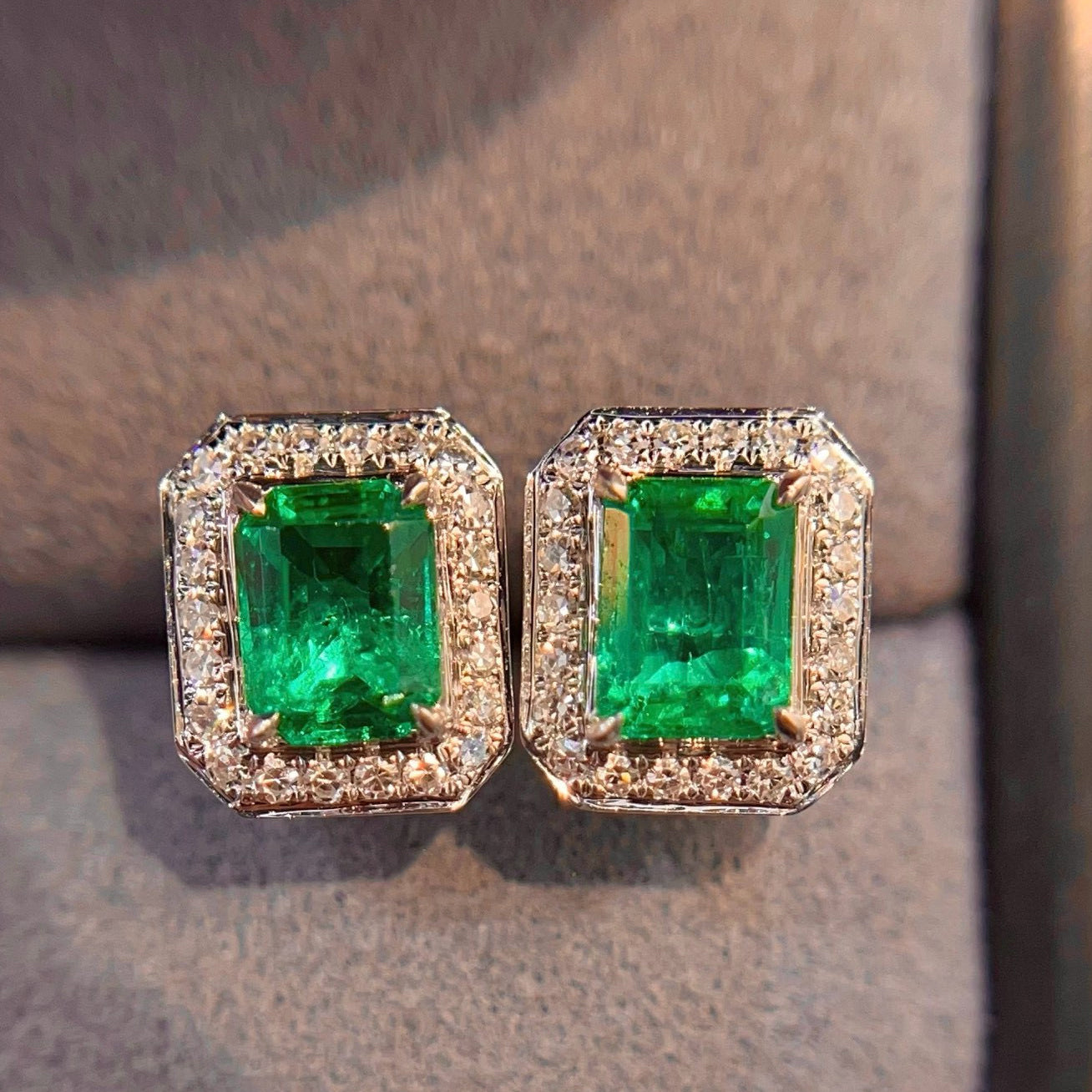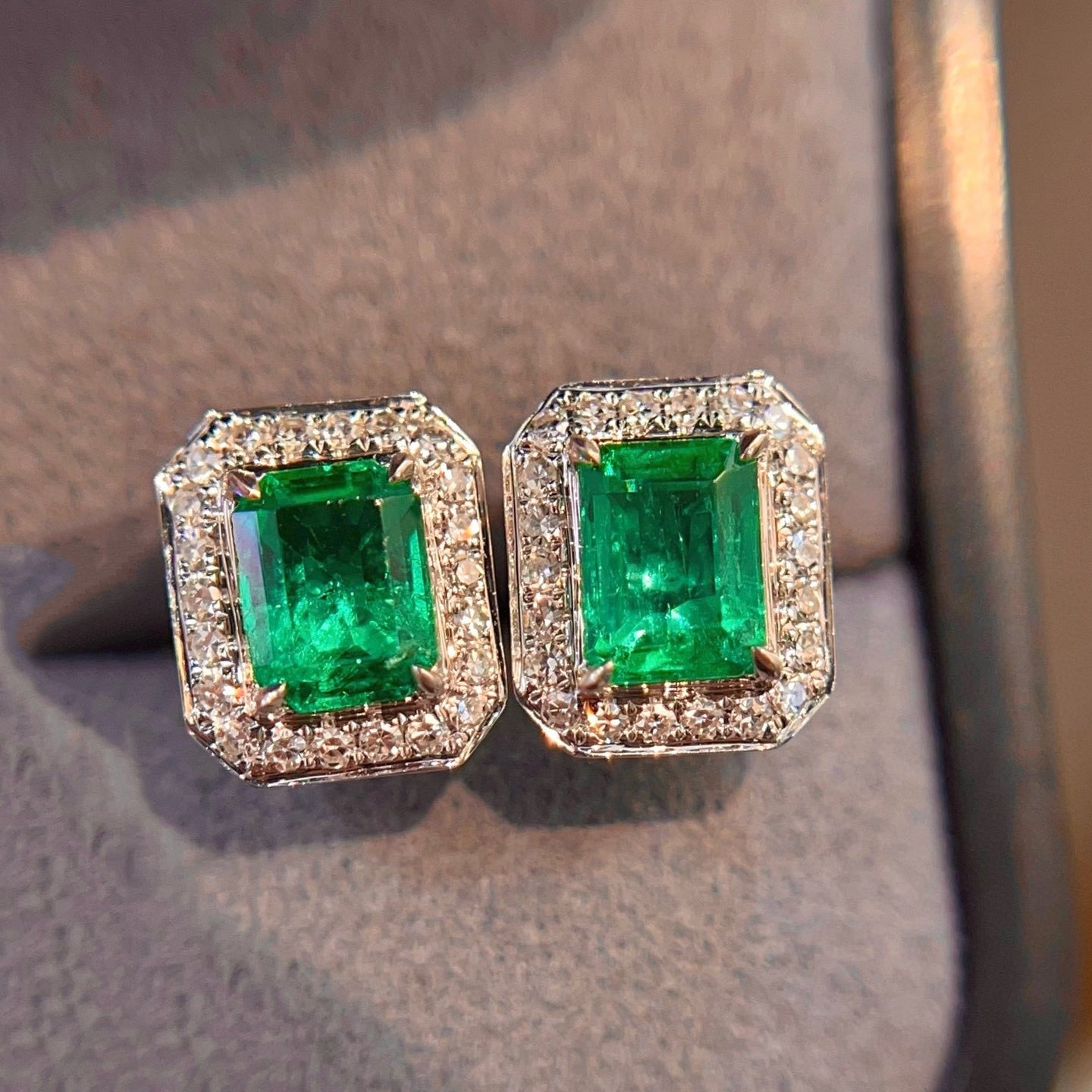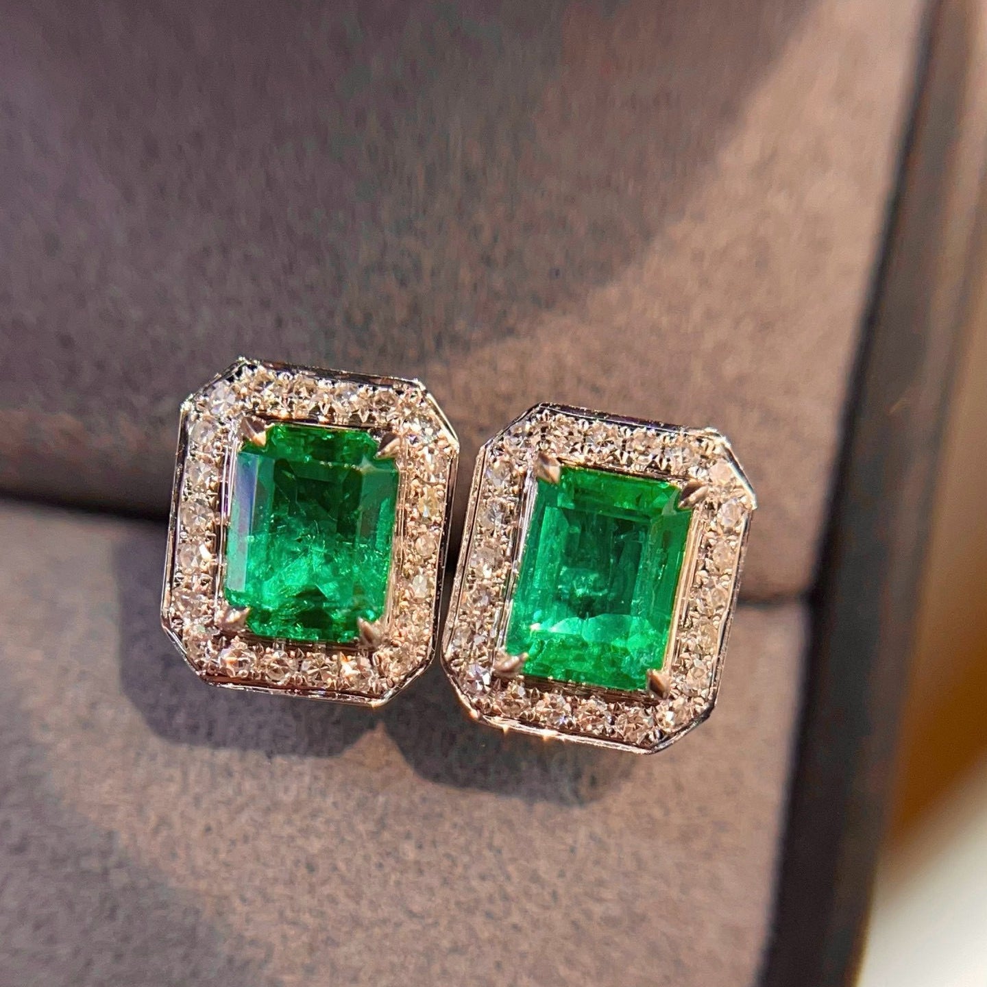 14K GOLD 1.17 CTW VIVID GREEN NATURAL EMERALD & DIAMOND EARRINGS