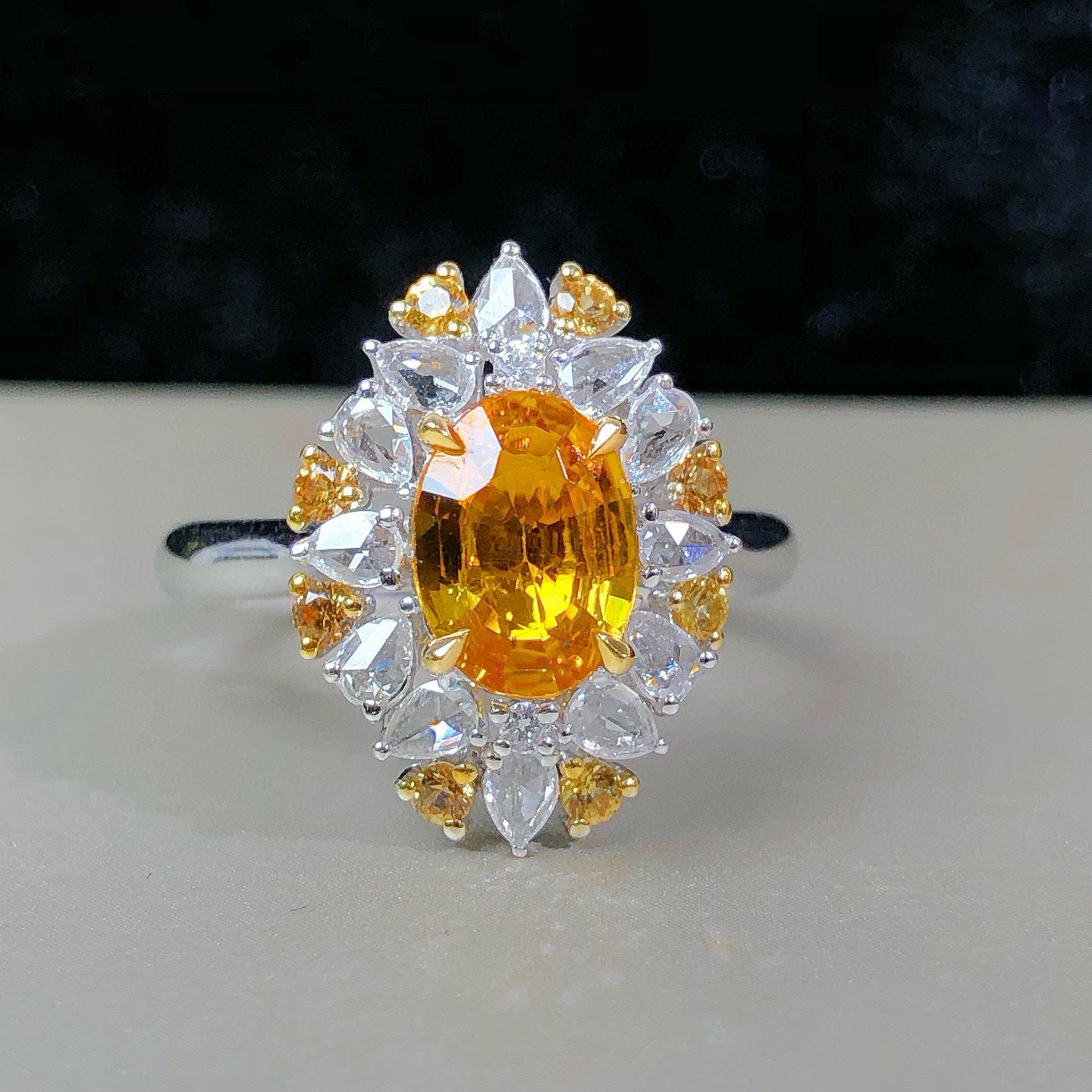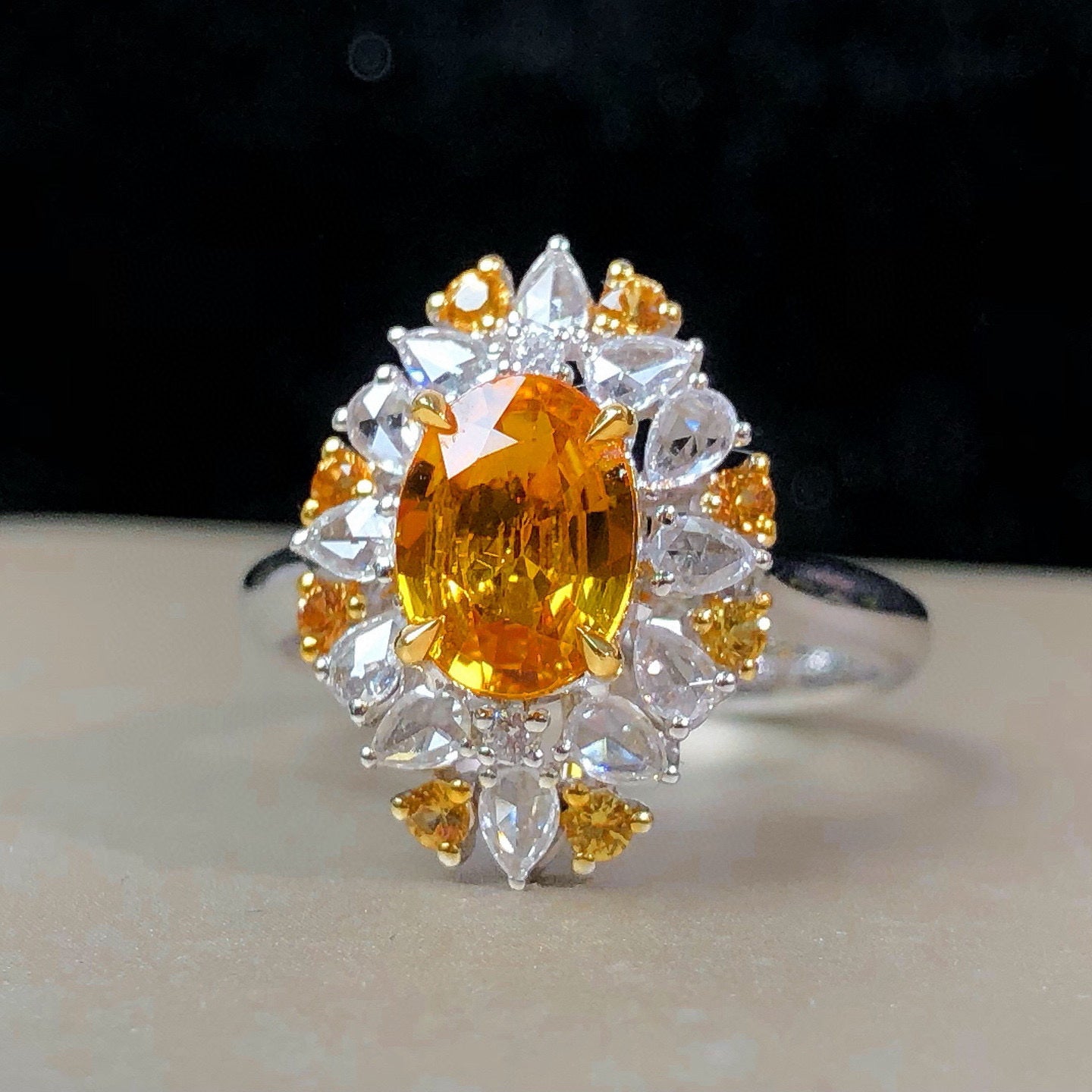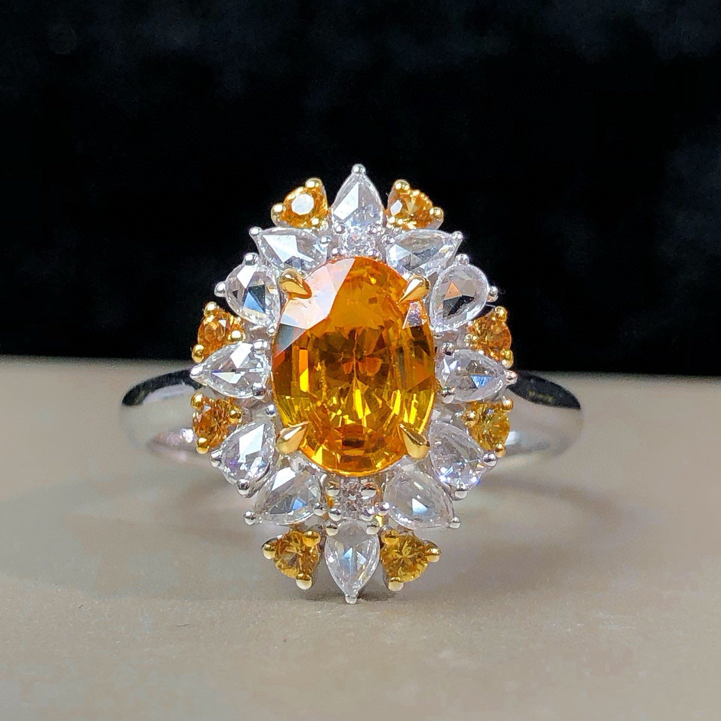Ref:231021087 // Gold Content:14K Gold // Ring Size:7.25US // // Main Gemstone:Sapphire // Shape:Oval // Carat Weight:1.19ct // Color:Yellow // Treatment:Natural // // Adjacent Gemstone 2 : Sapphire // Shape:Pear // Color:White // Treatment:Natural //