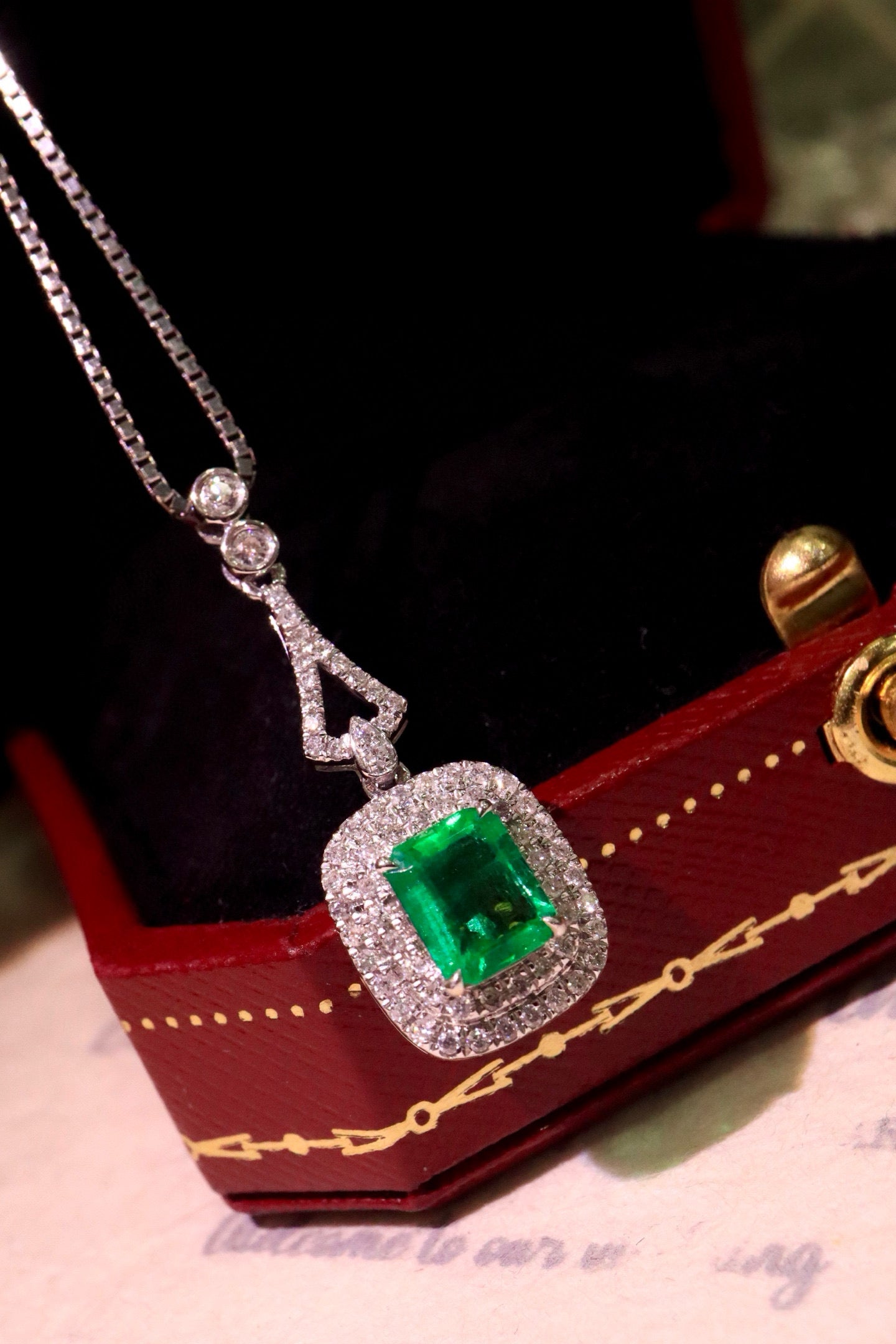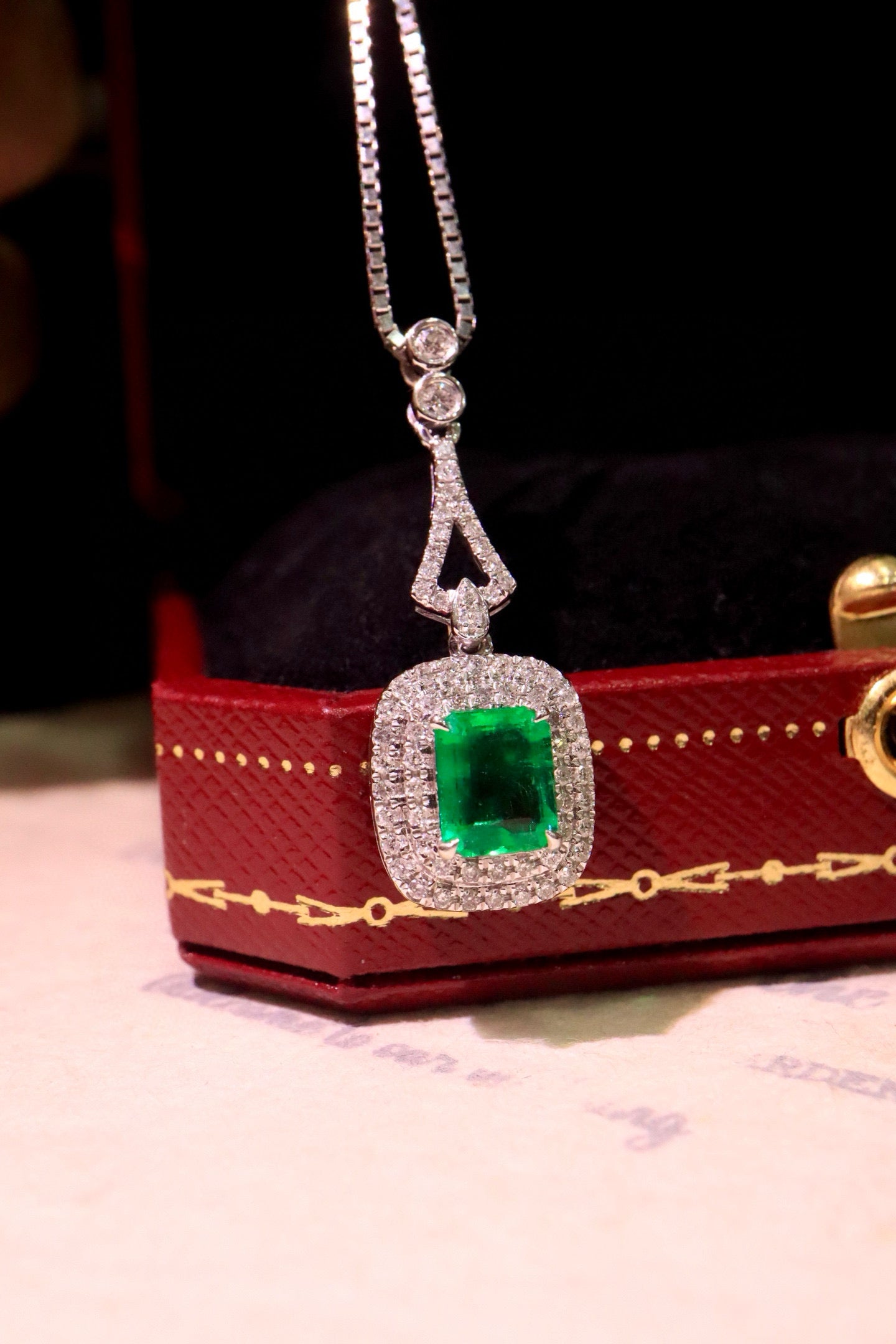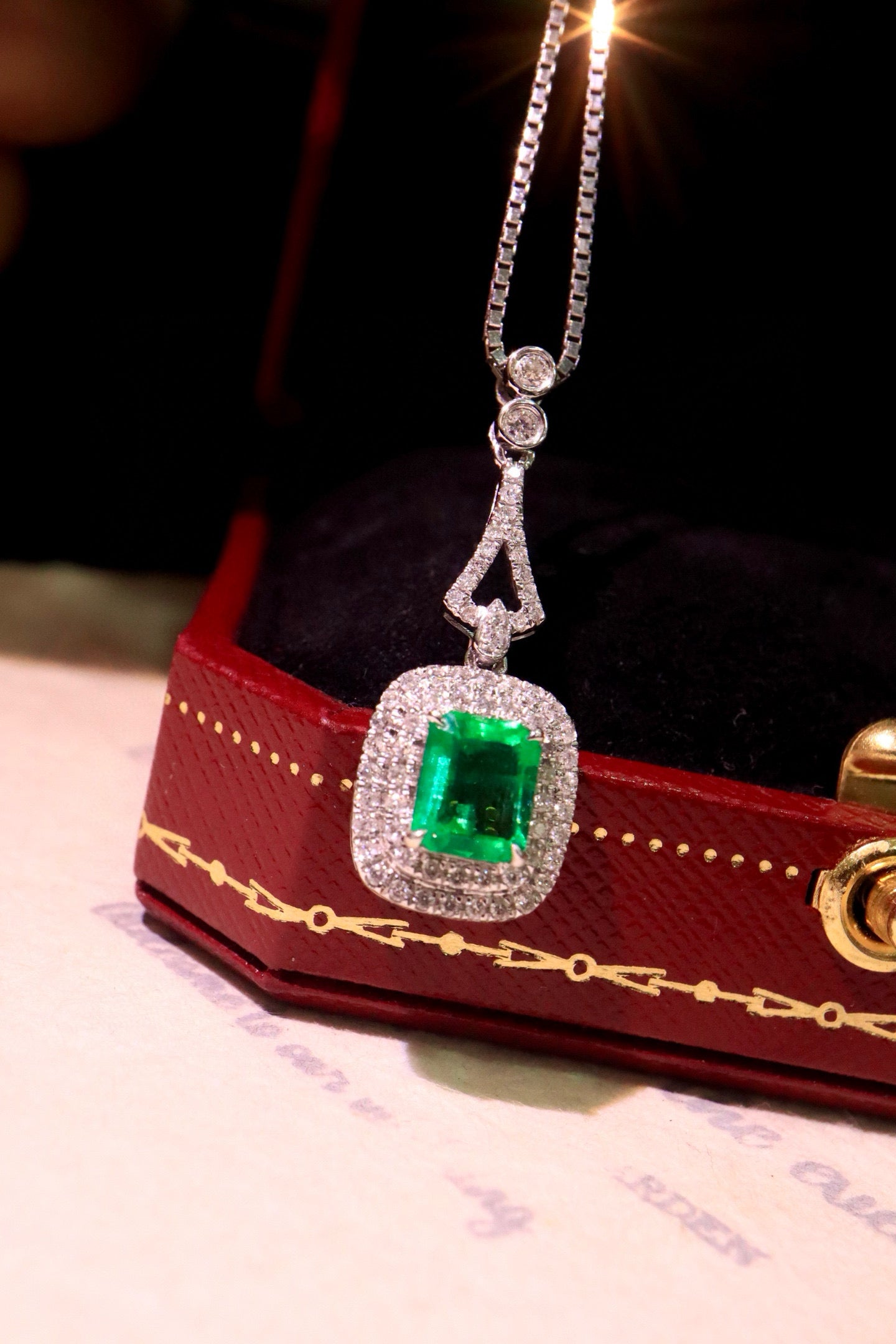 14K GOLD 1.19 CTW NATURAL EMERALD & DIAMOND PENDANT( WITHOUT CHAIN )