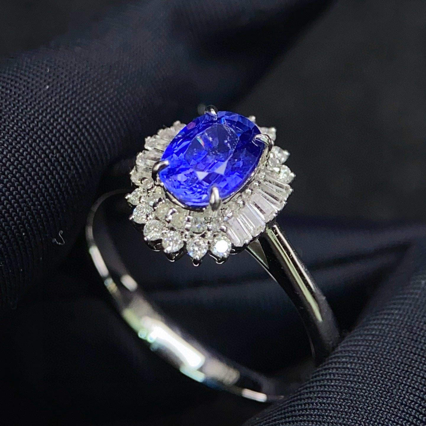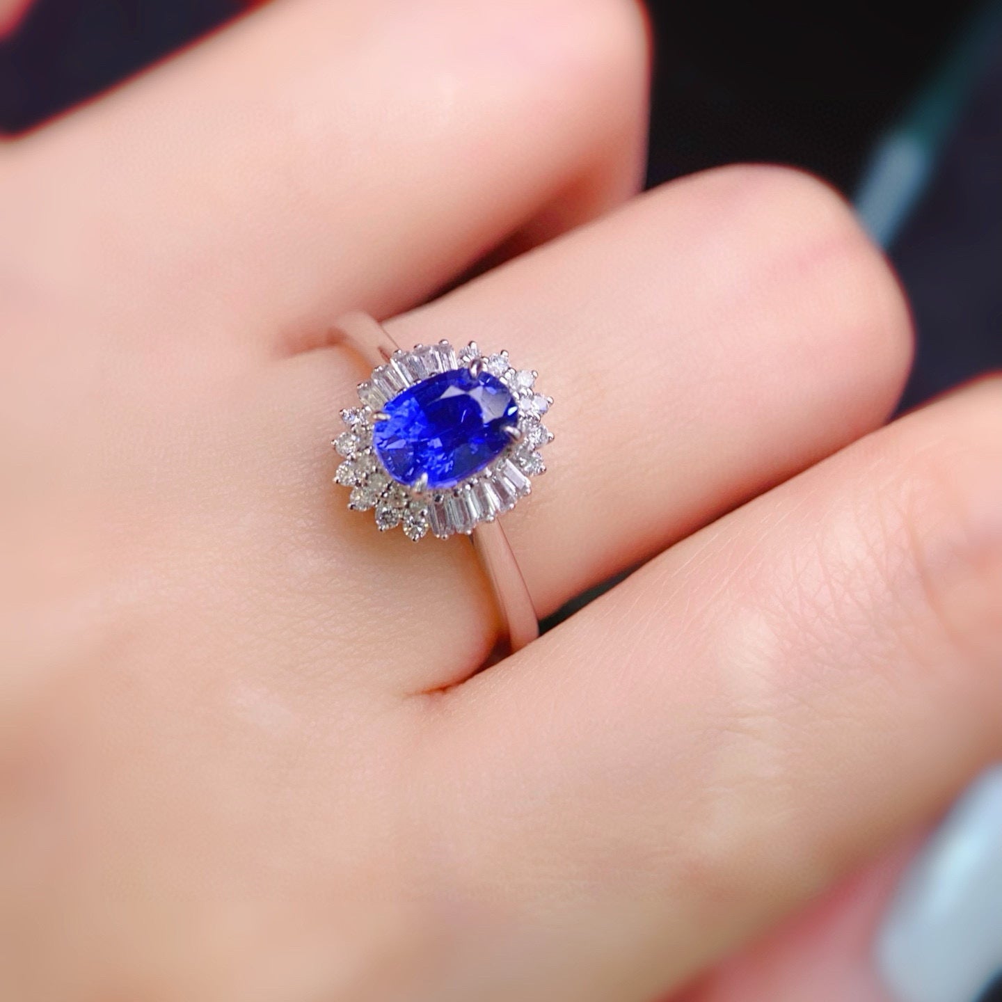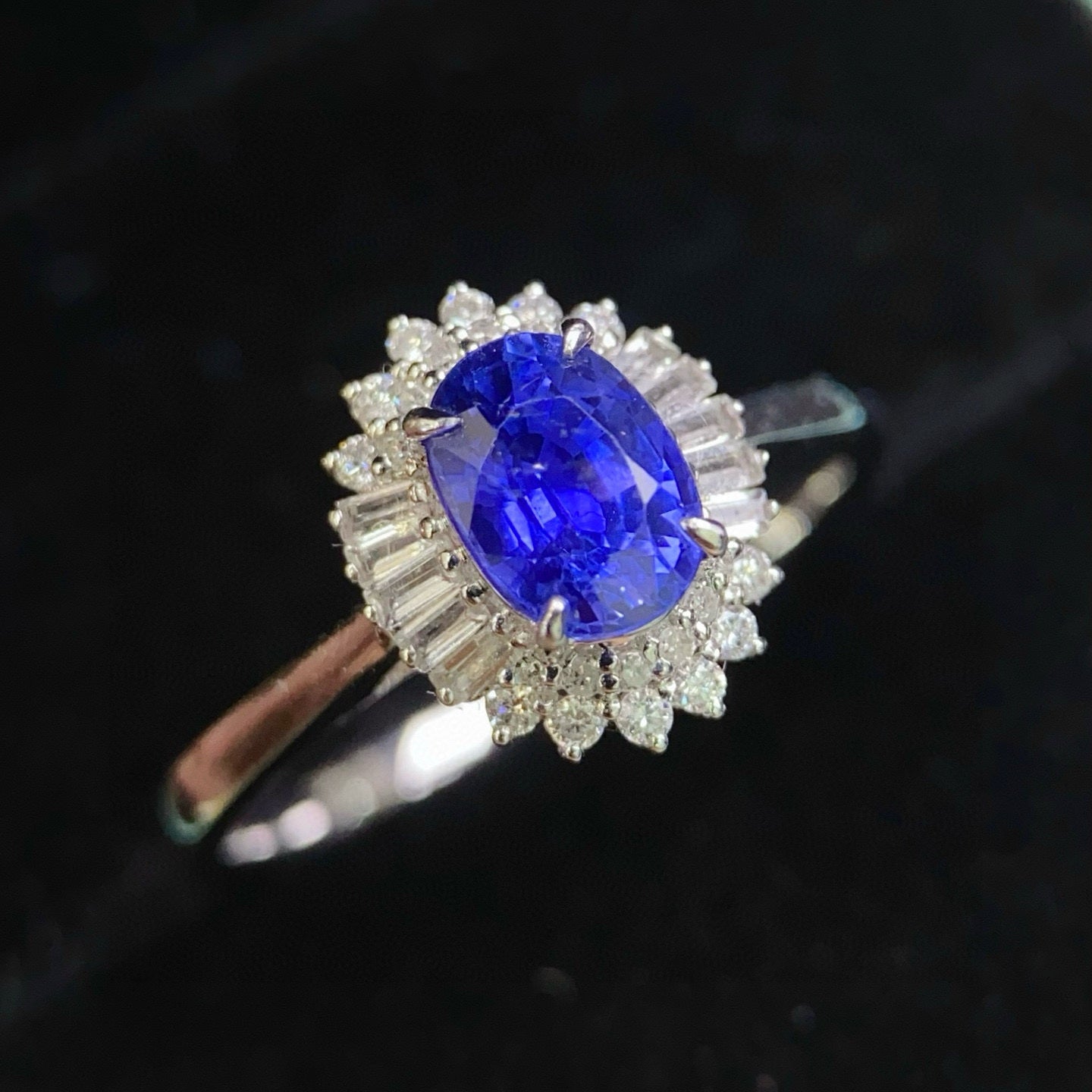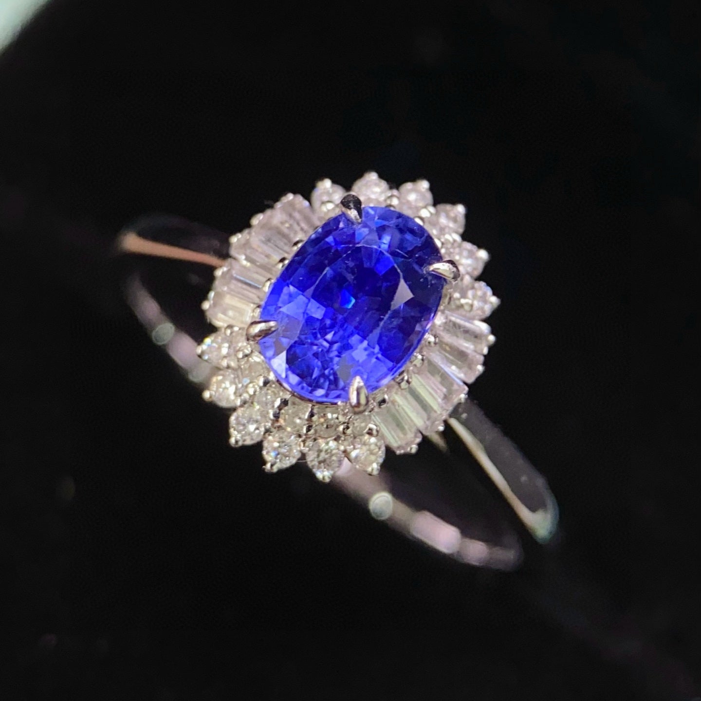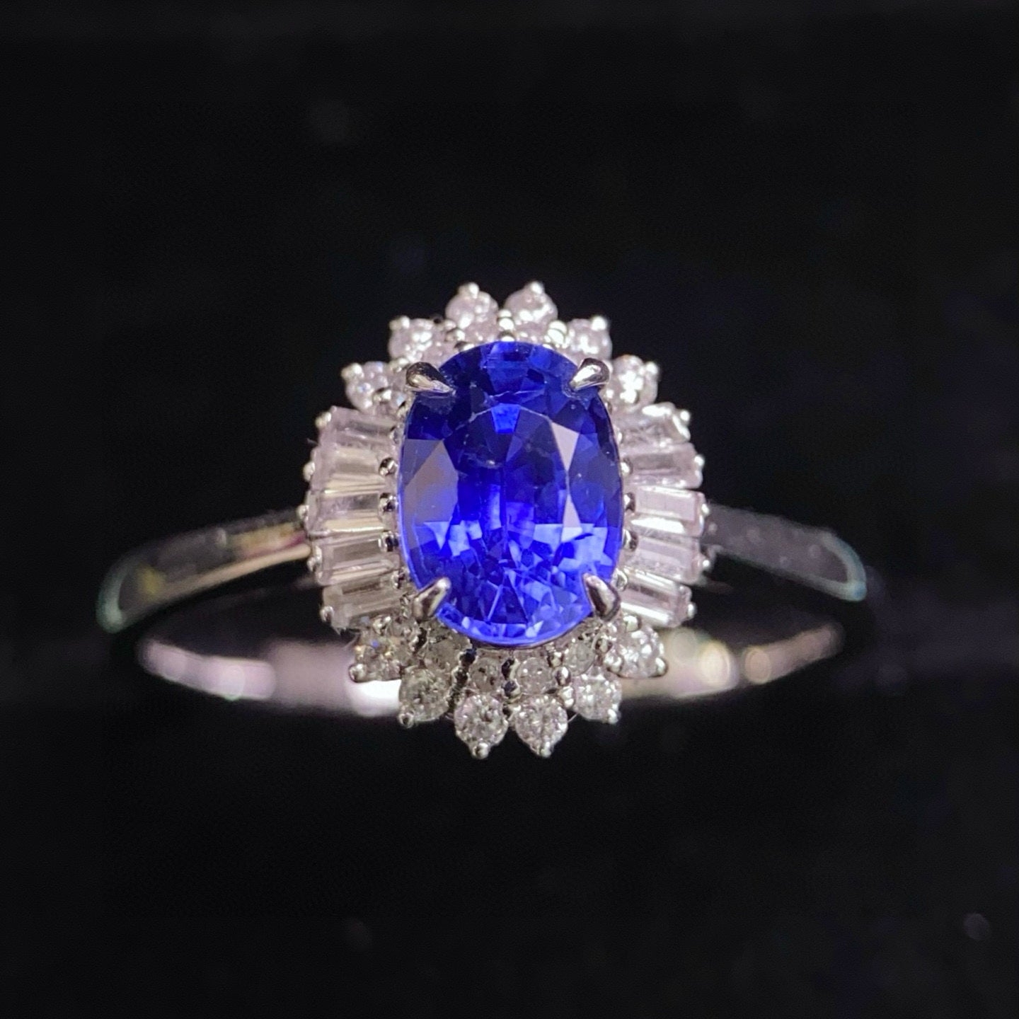 Ref:231021158 // Gold Content:14K Gold // Ring Size:7.25US // // Main Gemstone:Sapphire // Shape:Oval // Carat Weight:1.2ct // Color:Royal blue // Treatment:Natural // // Adjacent Gemstone 2 : Diamond // Number of stones:24 // Shape:Round // Clarity Grade:VS-SI // Color:H // Treatment:Natural // Cut Grade:G // // Adjacent Gemstone 3 : Sapphire // Shape:Baguette // Color:White // Treatment:Natural //
