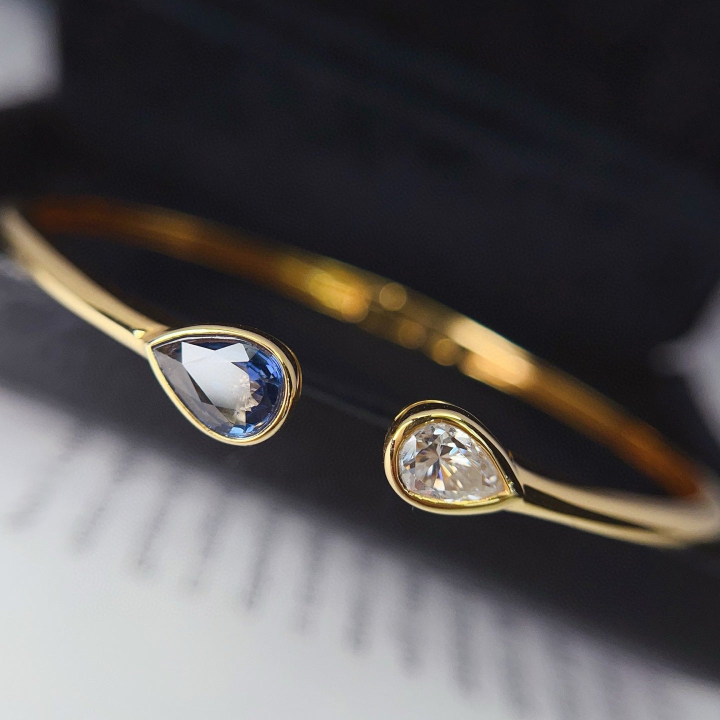 14K GOLD 1.2 CT NATURAL SAPPHIRE & SAPPHIRE BANGLE