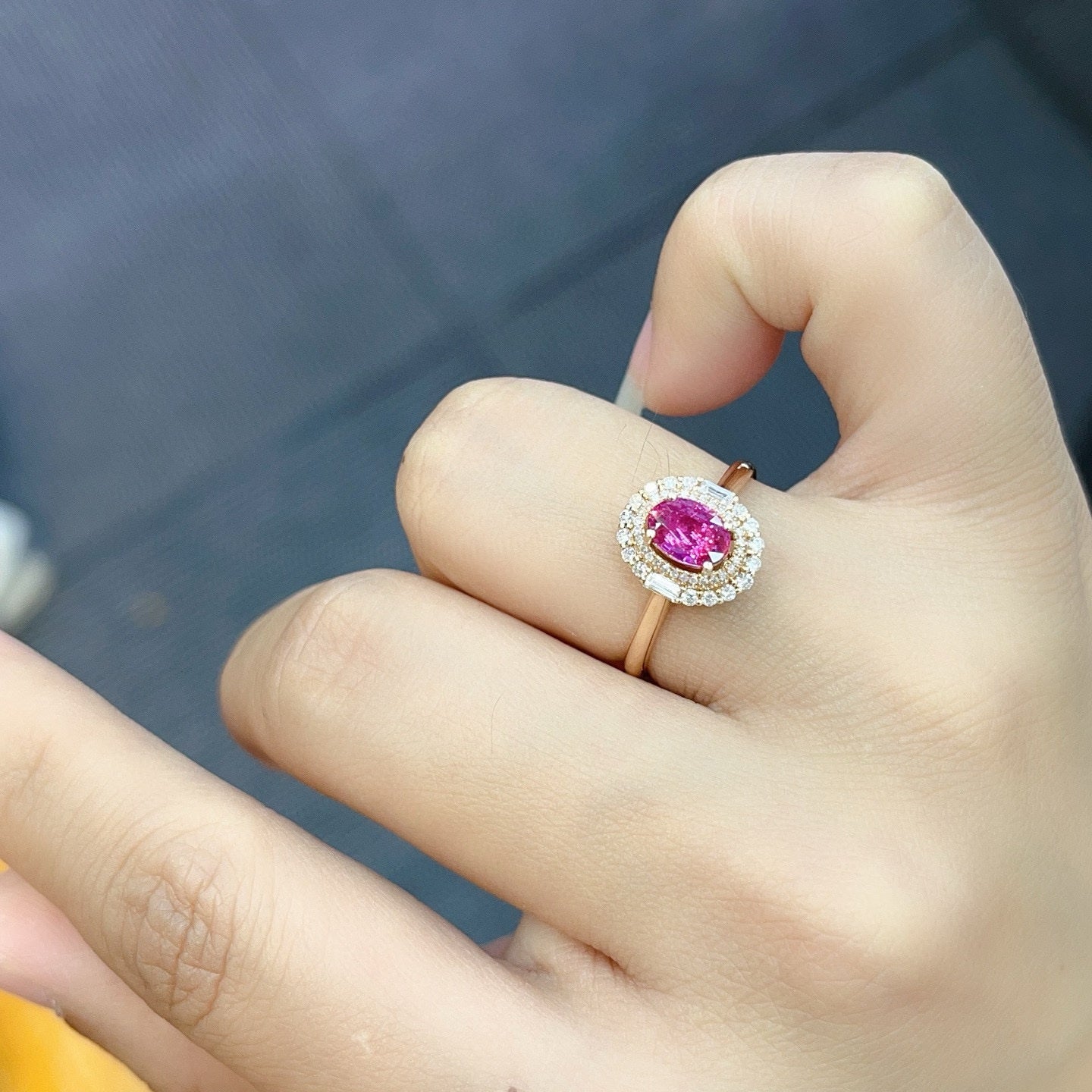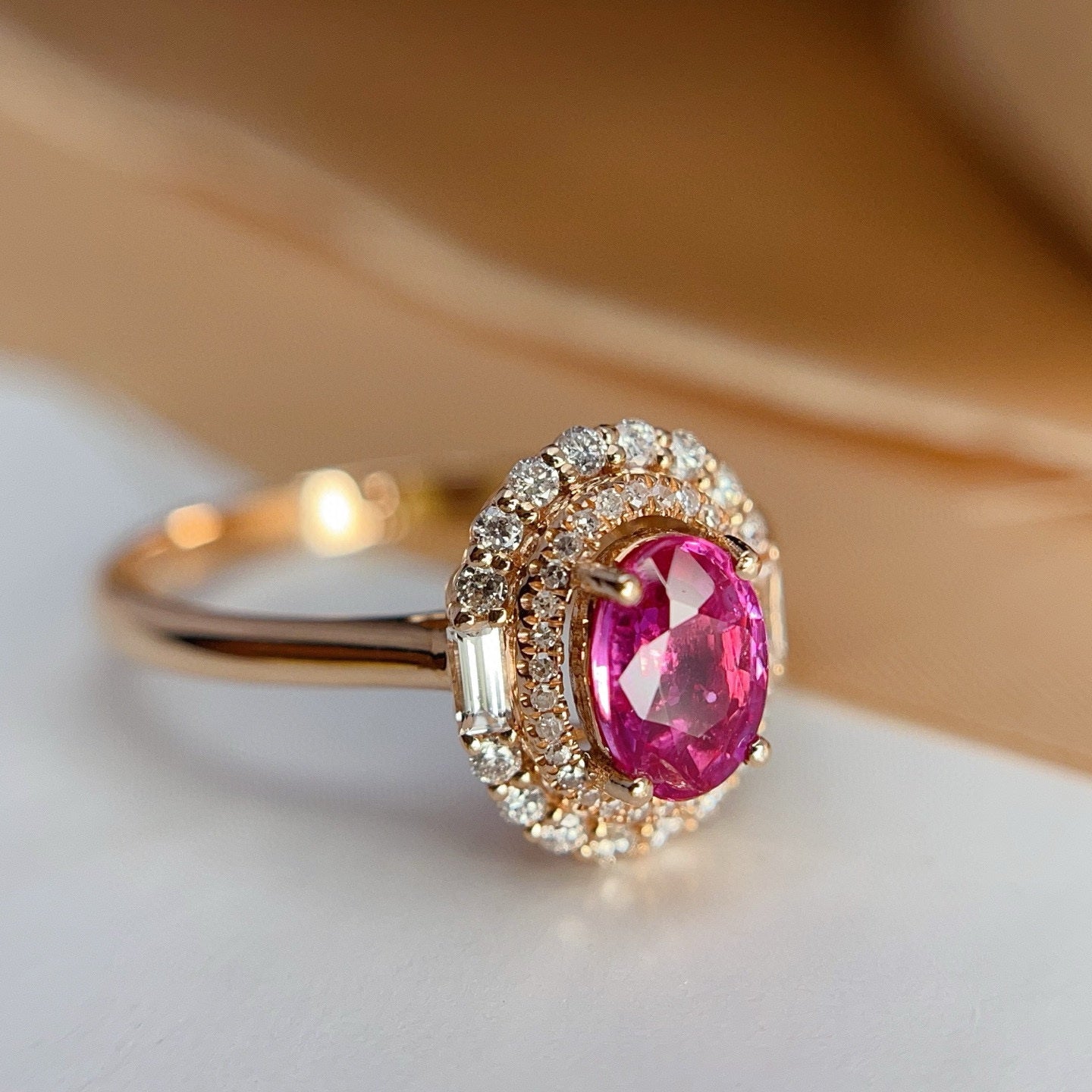 Ref:231021194 // Gold Content:14K Gold // Ring Size:7.25US // // Main Gemstone:Ruby // Shape:Oval // Carat Weight:1.20ct // Color:Red // Treatment:Natural // // Adjacent Gemstone 2 : Diamond // Number of stones:31 // Shape:Round // Clarity Grade:VS-SI // Color:H // Treatment:Natural // Cut Grade:G // // Adjacent Gemstone 3 : Sapphire // Number of stones:2 // Shape:Baguette // Color:White // Treatment:Natural //
