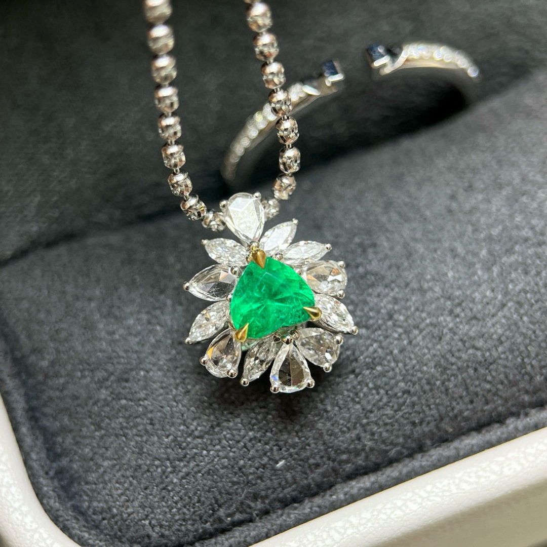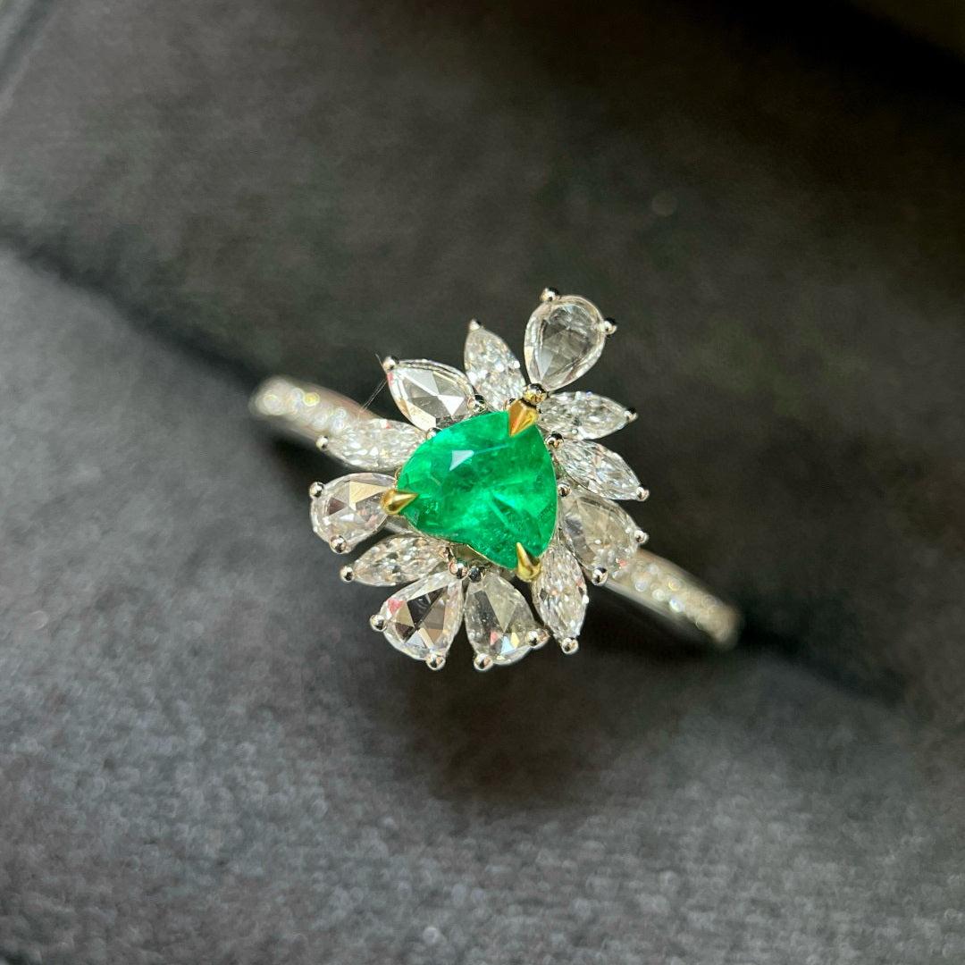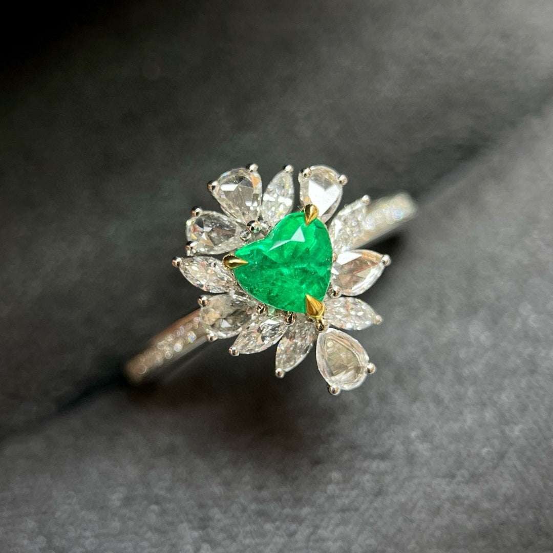 Ref:231021110 // Gold Content:14K Gold // Ring Size:7.25US // // Main Gemstone:Emerald // Shape:Heart // Carat Weight:0.58ct // Color:Vivid Green // Treatment:Natural // // Adjacent Gemstone 2 : Diamond // Shape:Multiply // Carat Weight:0.63ct // Clarity Grade:VS-SI // Color:H // Treatment:Natural //