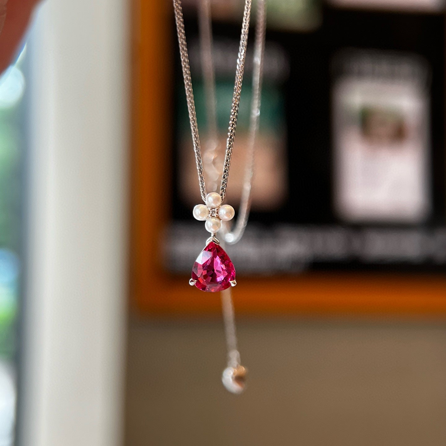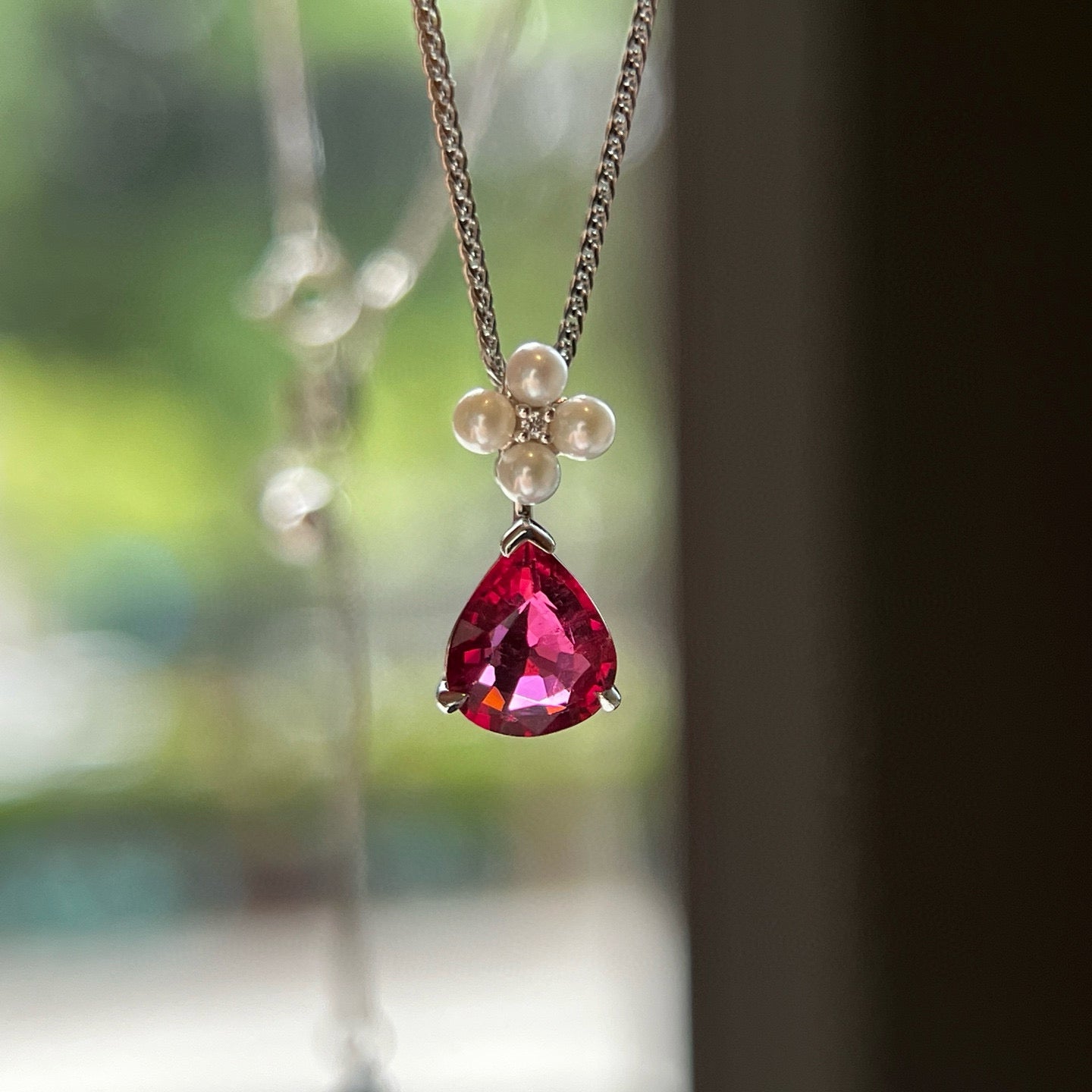 Ref:231027210 // Gold Content:14K Gold // Main Gemstone:Tourmaline // Shape:Pear // Carat Weight:1.21ct // Color:Red // Treatment:Natural // // Adjacent Gemstone 2 : Diamond // Shape:Round // Carat Weight:0.005ct // Clarity Grade:VS-SI // Color:H // Treatment:Natural // Cut Grade:G // // Adjacent Gemstone 3 : Pearl // Shape:Round // Color:White // Treatment:Natural // Cut Grade:G //
