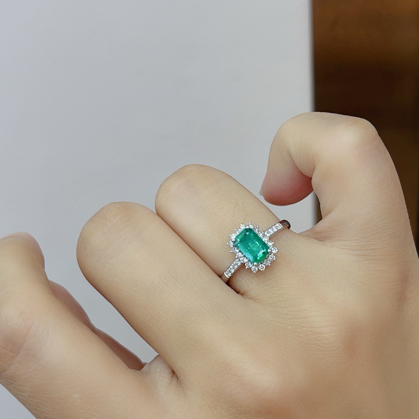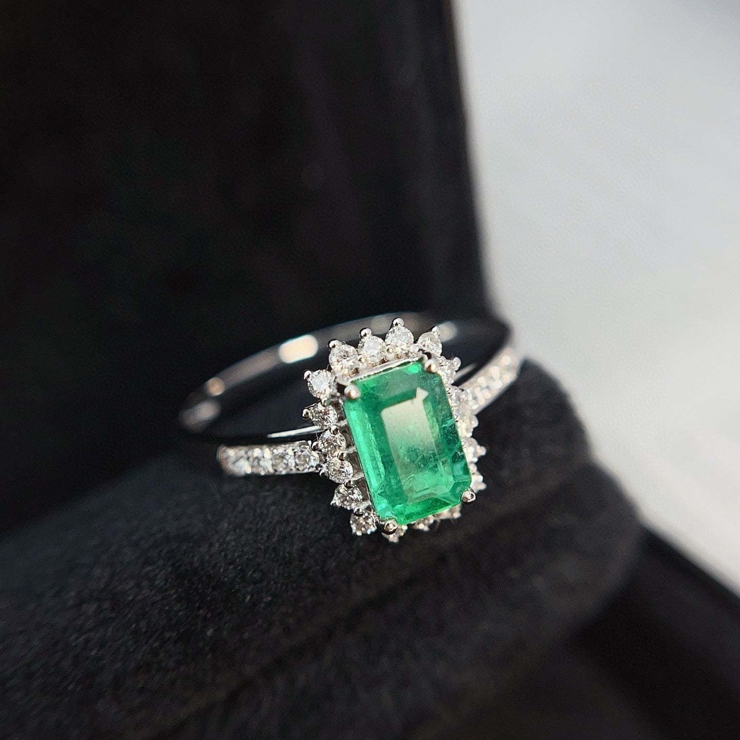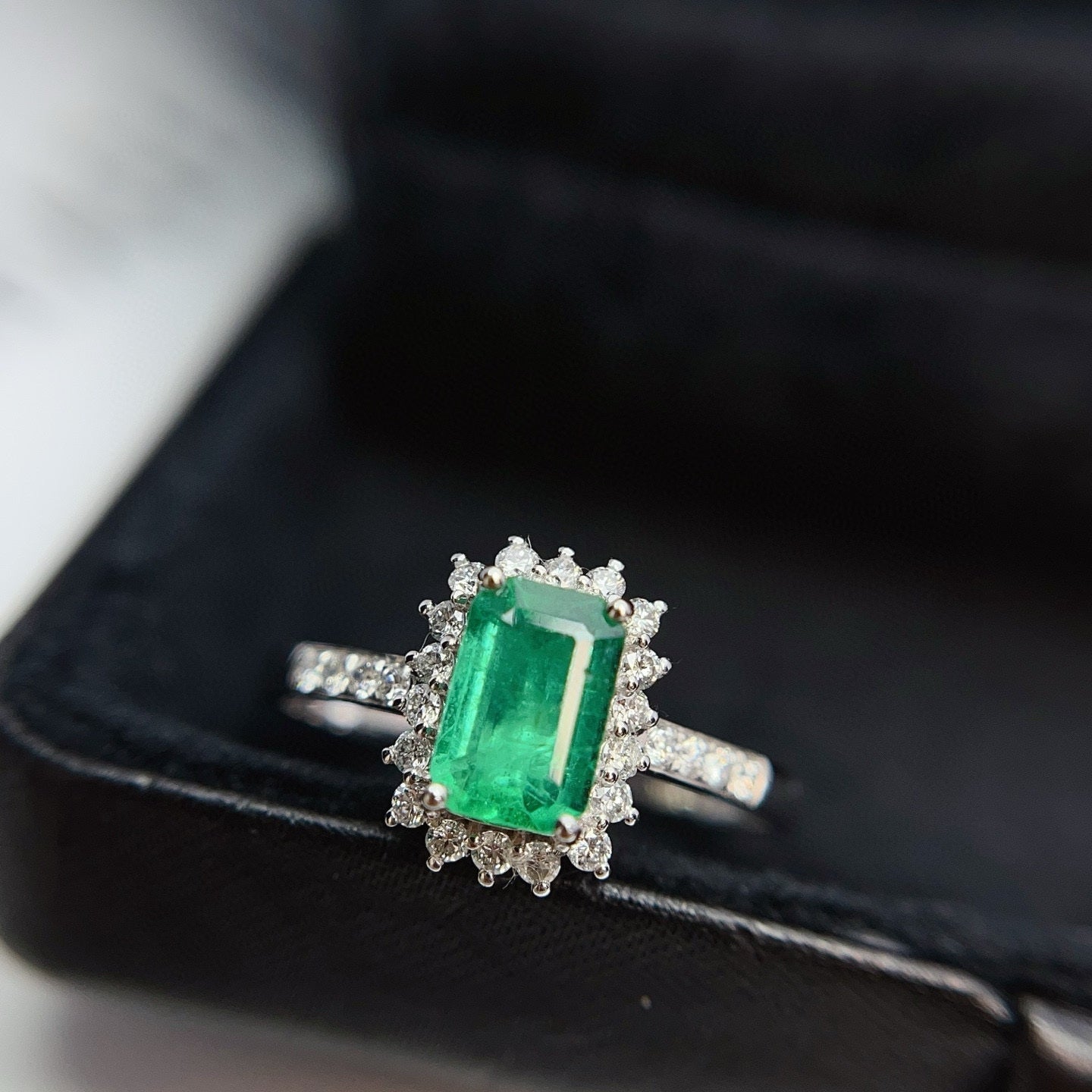 Ref:231021179 // Gold Content:14K Gold // Ring Size:7.25US // // Main Gemstone:Emerald // Shape:Octagonal // Carat Weight:1.25ct // Color:Green // Treatment:Natural // // Adjacent Gemstone 2 : Diamond // Number of stones:28 // Shape:Round // Clarity Grade:VS-SI // Color:H // Treatment:Natural // Cut Grade:G //